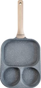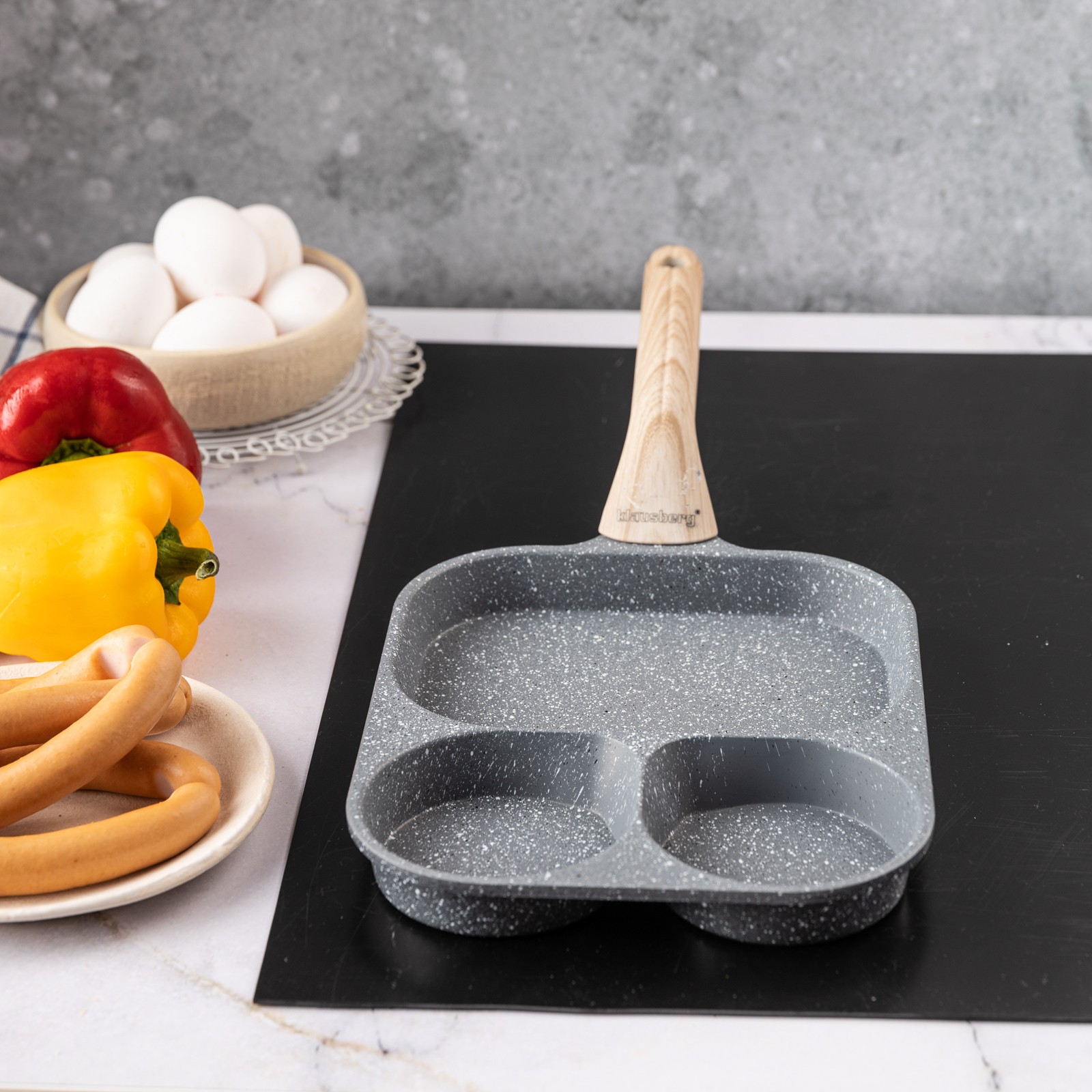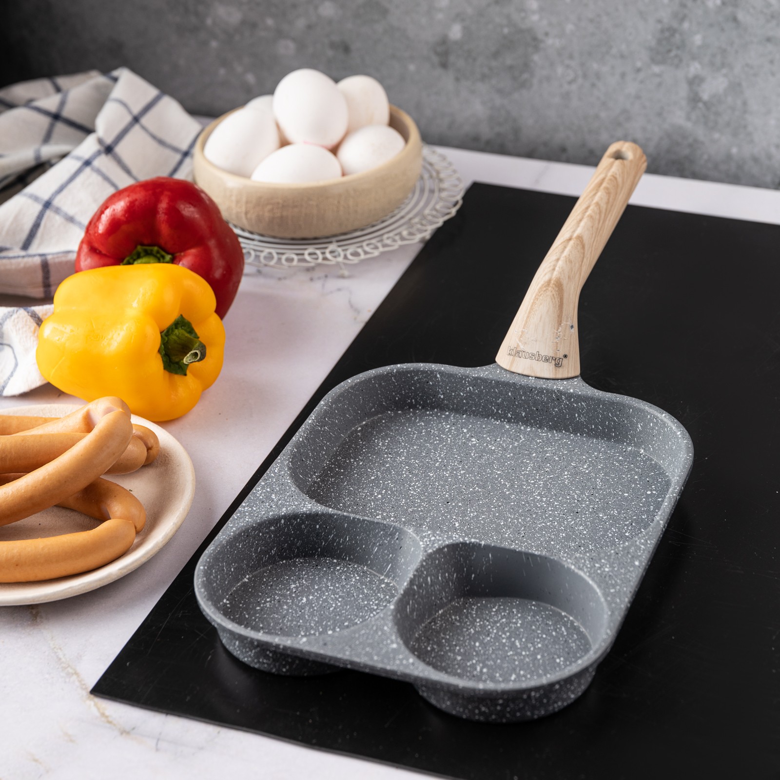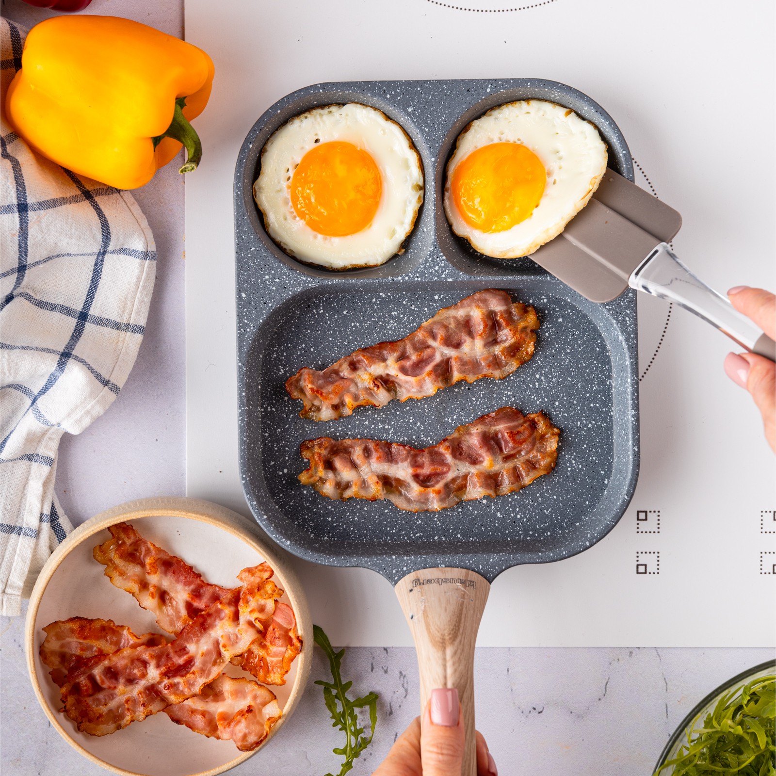 3. Zaprojektowany kształt z 3 formami: 2 do przyrządzania jajek, 1 podłużna do bekonu lub warzyw, mini naleśników, burgerów lub dowolnego innego przepisu, który lubisz podawać na codzienne śniadanie.