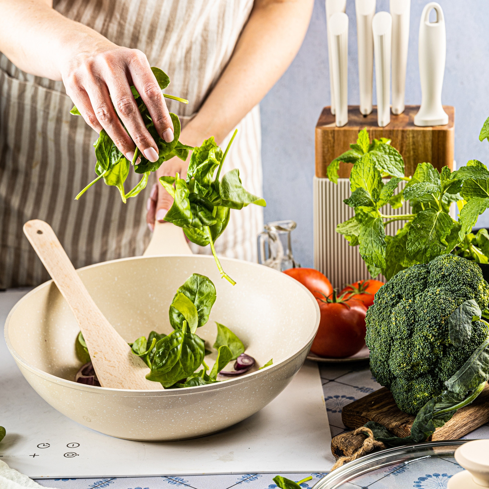 Tak. Dzięki dużej średnicy i wysokim ściankom WOK świetnie nadaje się do szybkiego smażenia, mieszania składników oraz klasycznych dań stir-fry.