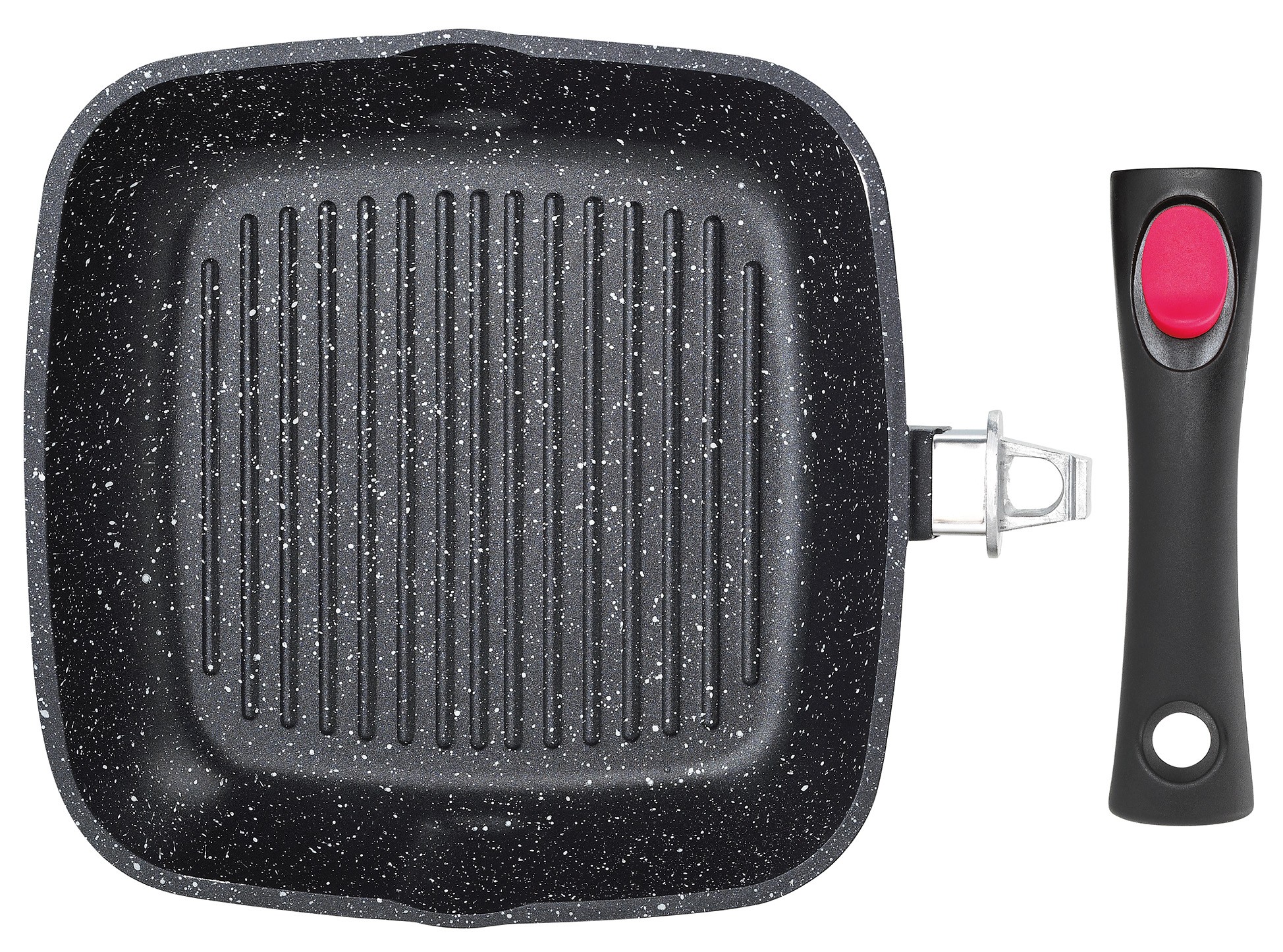 Indukcyjna patelnia z powłoką granitową, grillowa, kwadratowa, z pokrywką