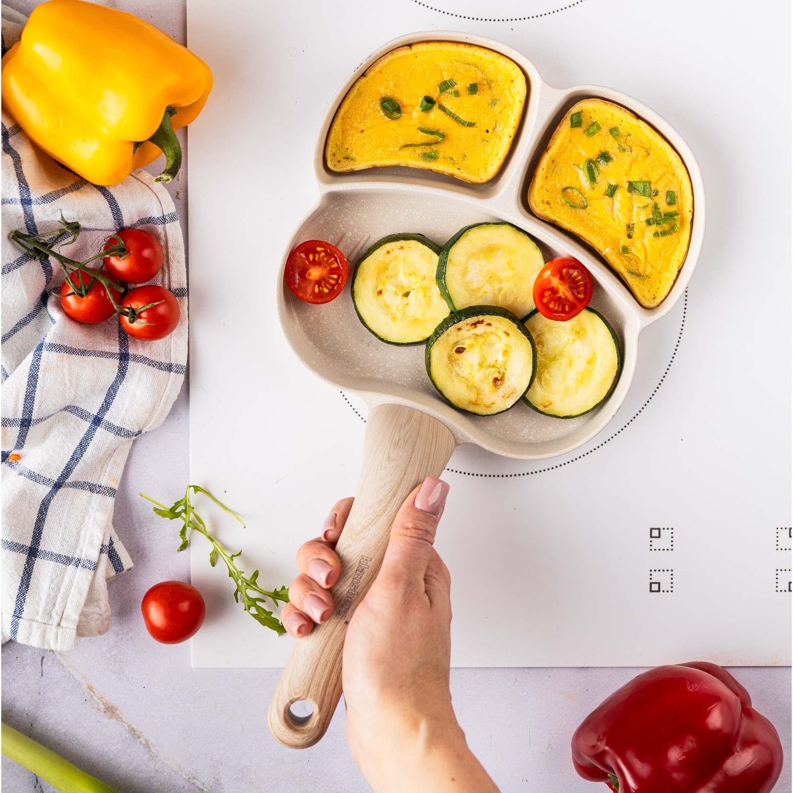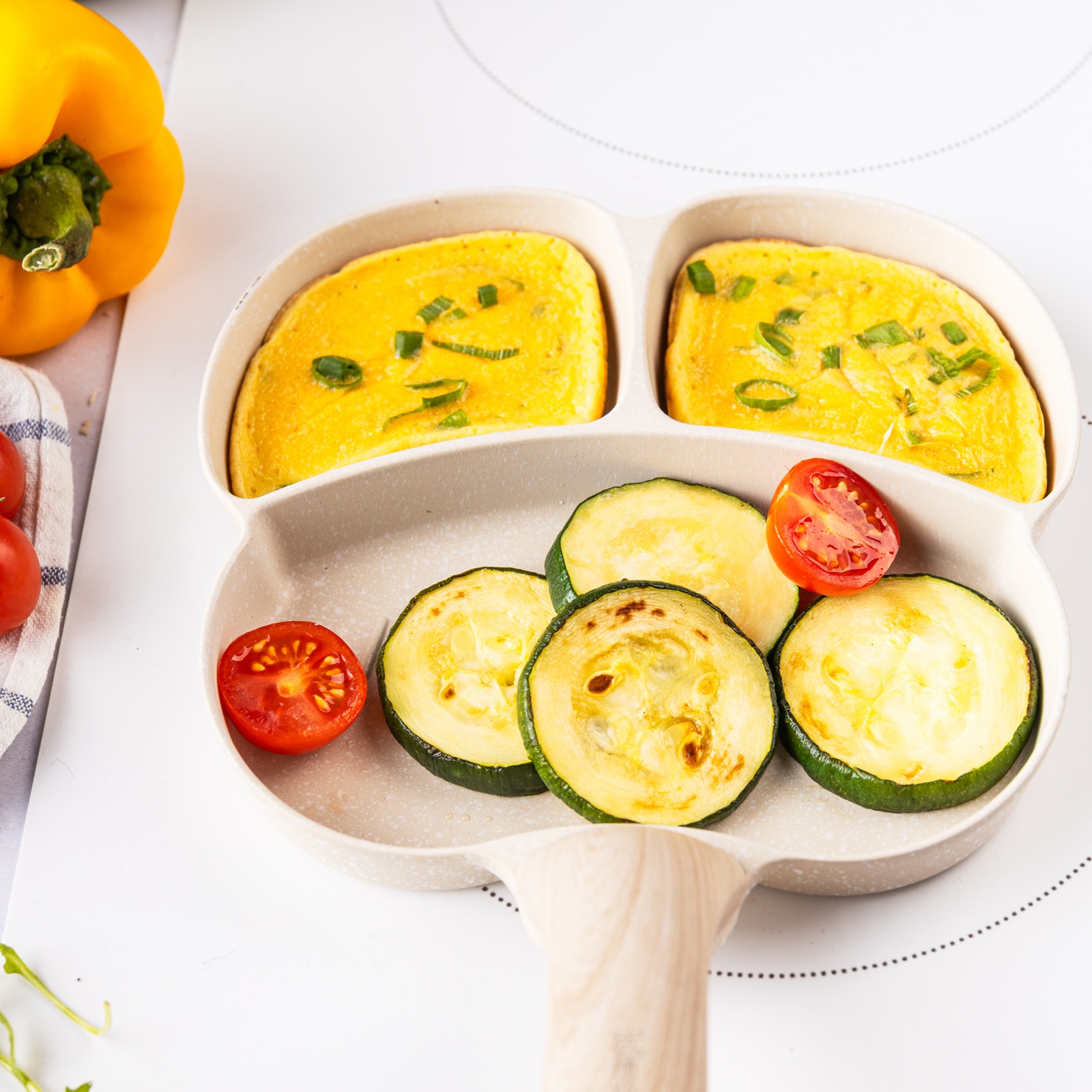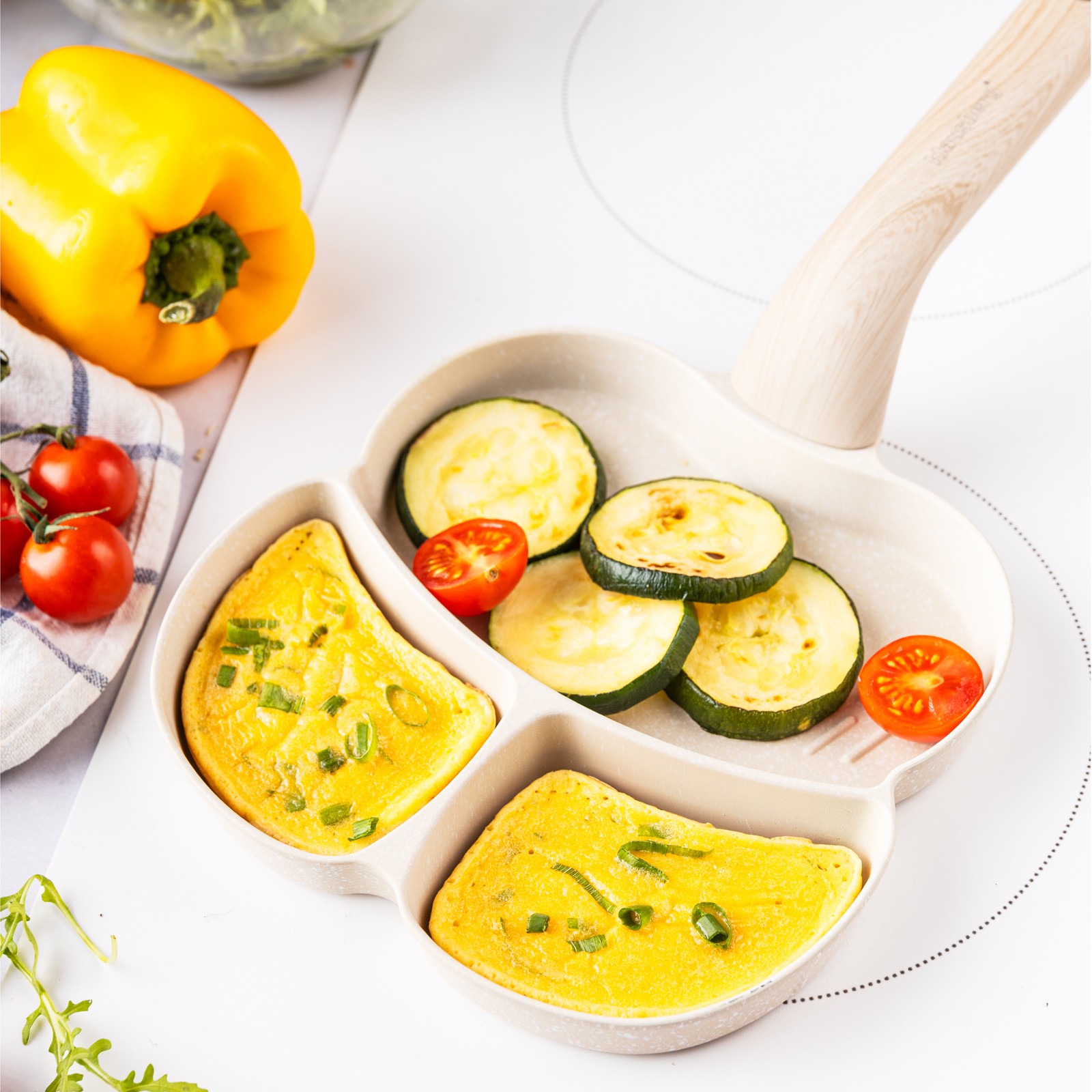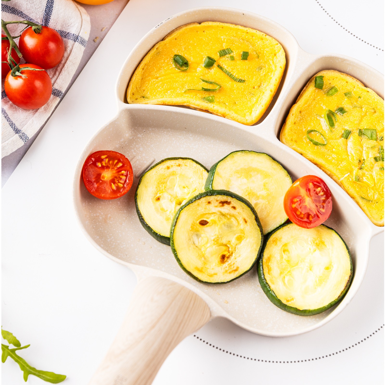 3. Zaprojektowany kształt z 3 formami do przyrządzania jajek, bekonu, warzyw, mini naleśników, burgerów lub dowolnego innego przepisu, który lubisz podawać na codzienne śniadanie.