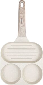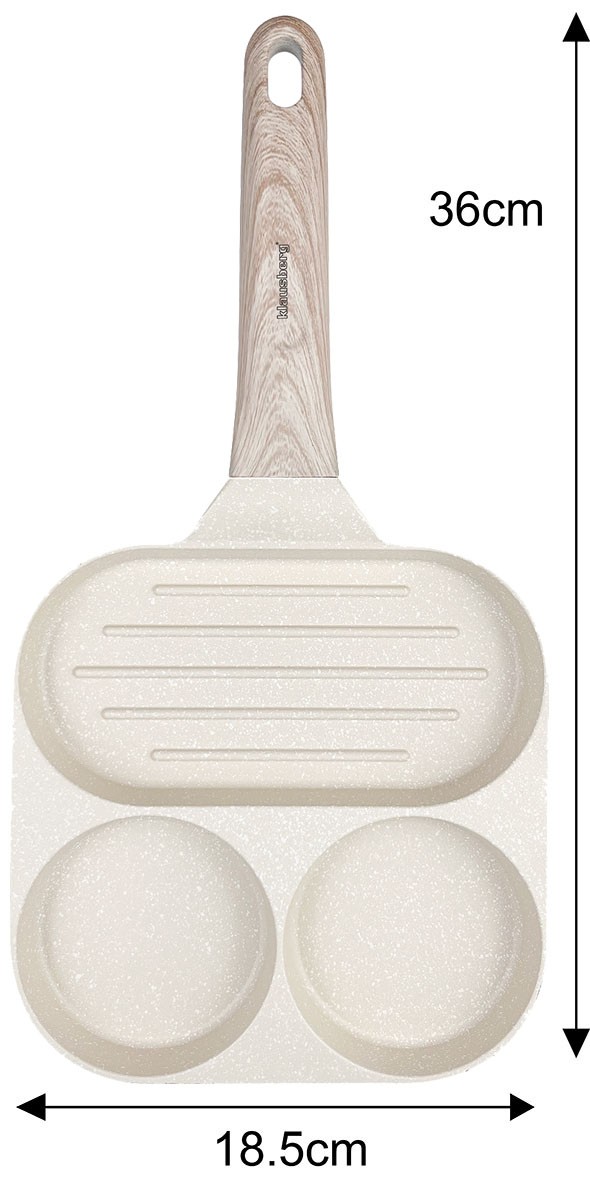 3. Zaprojektowany kształt z 3 formami: 2 do przyrządzania jajek, 1 podłużna do bekonu lub warzyw, mini naleśników, burgerów lub dowolnego innego przepisu, który lubisz podawać na codzienne śniadanie.