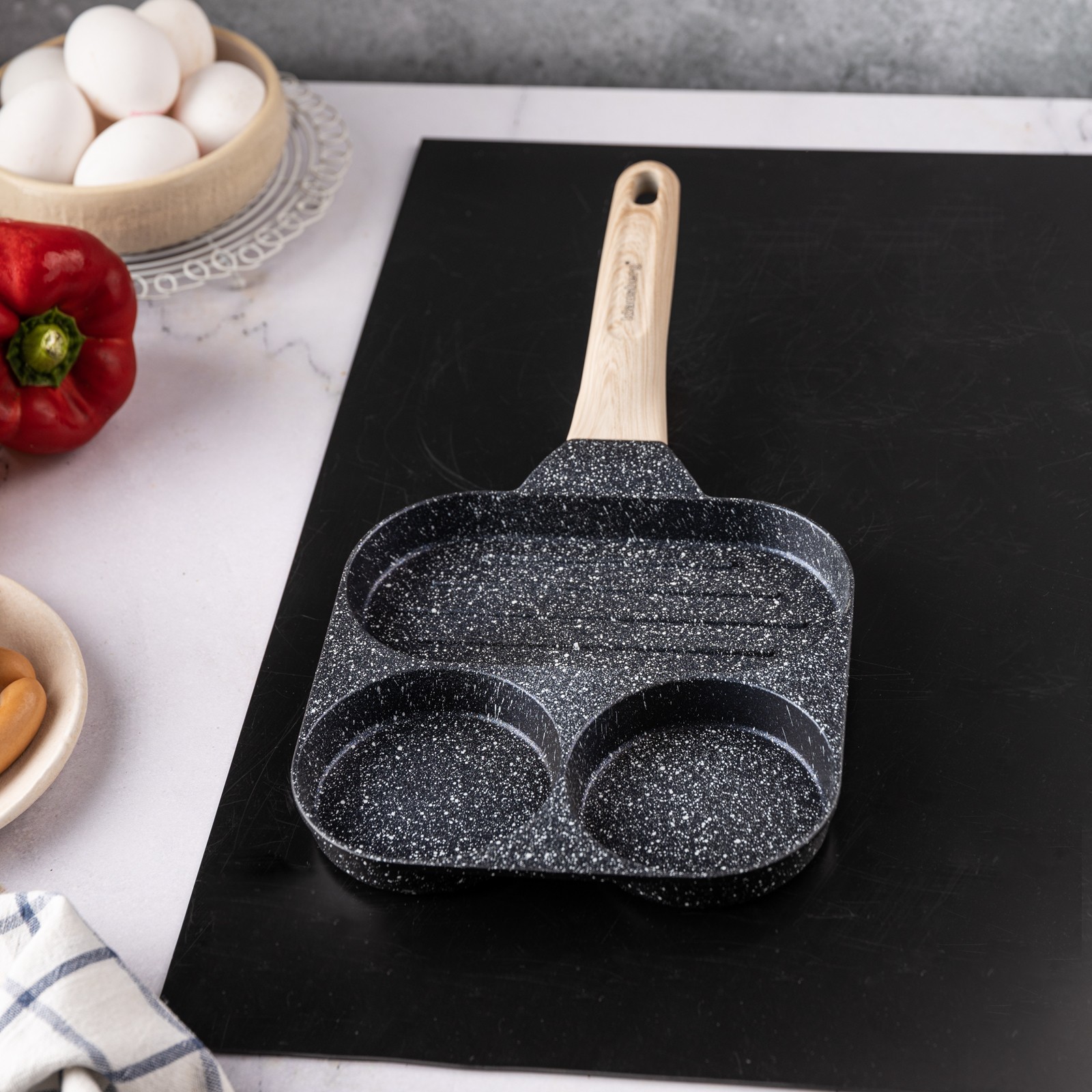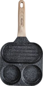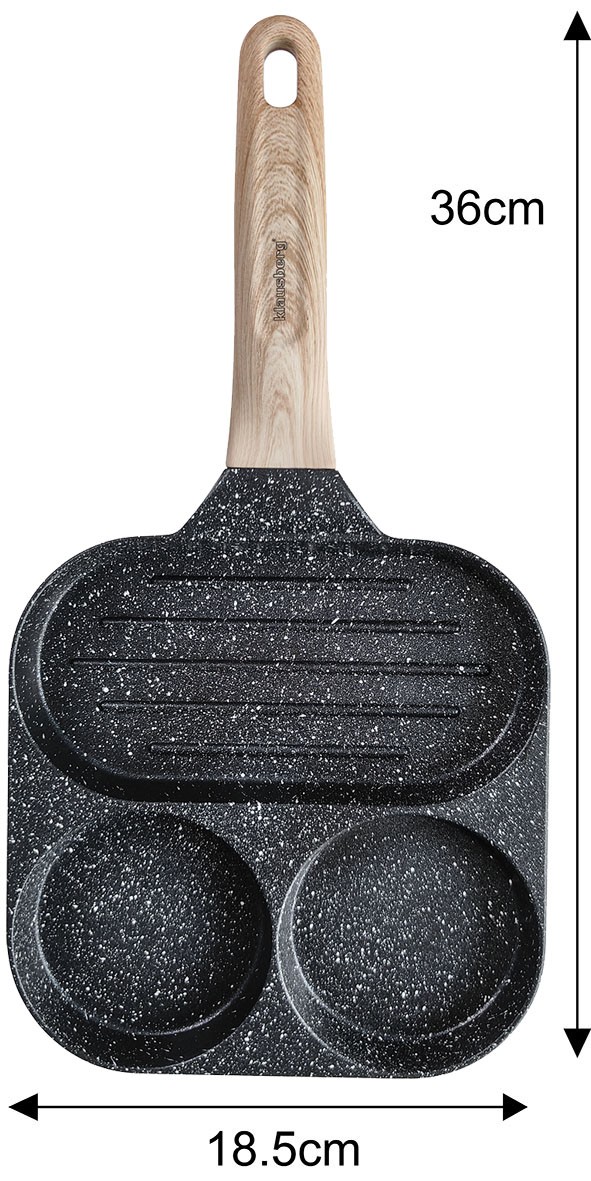 3. Zaprojektowany kształt z 3 formami: 2 do przyrządzania jajek, 1 podłużna do bekonu lub warzyw, mini naleśników, burgerów lub dowolnego innego przepisu, który lubisz podawać na codzienne śniadanie.