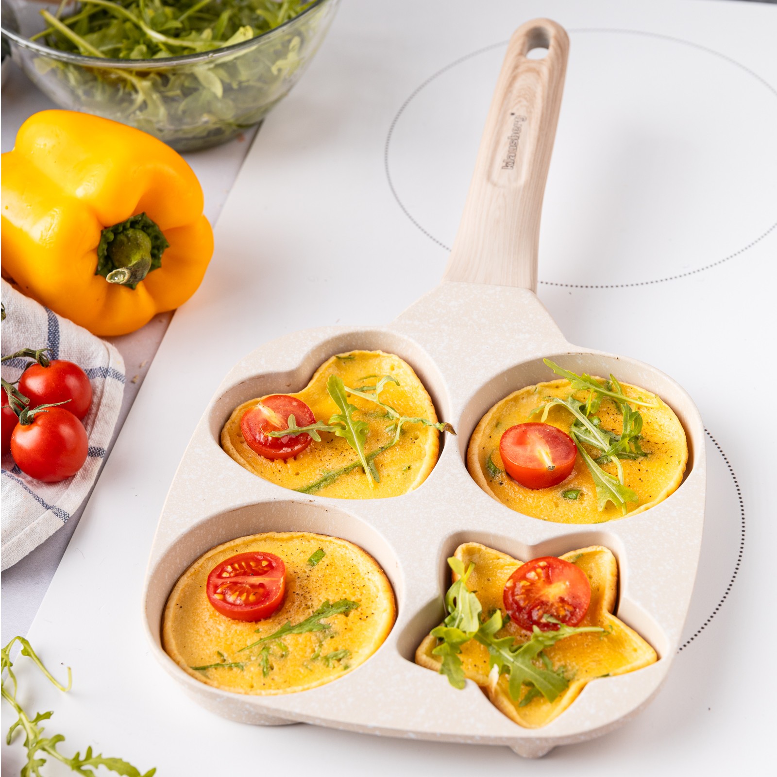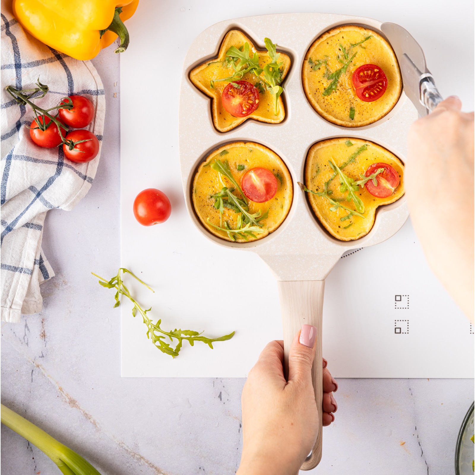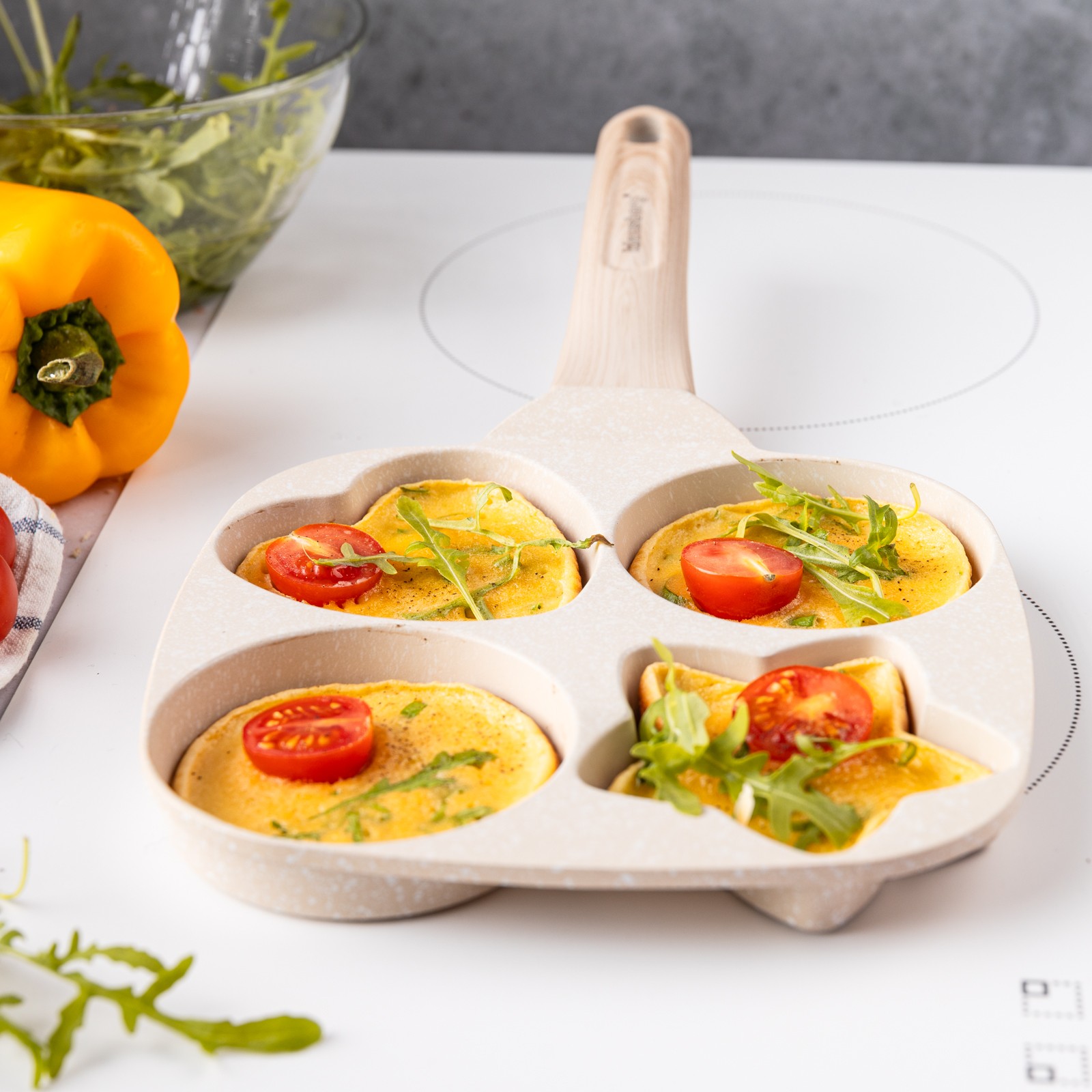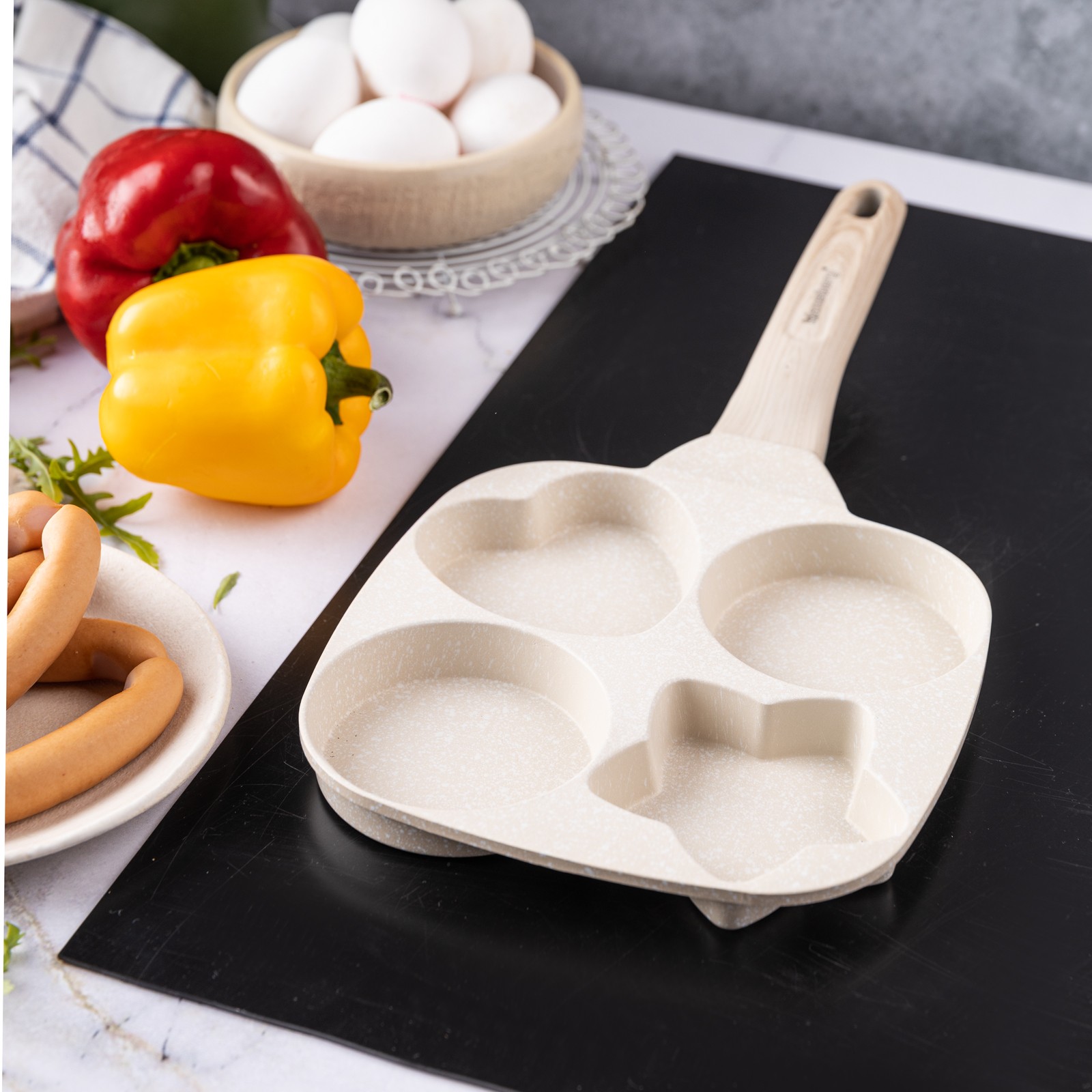 3. Zaprojektowany kształt z 4 formami do przyrządzania jajek, bekonu, warzyw, mini naleśników, burgerów lub dowolnego innego przepisu, który lubisz podawać na codzienne śniadanie.