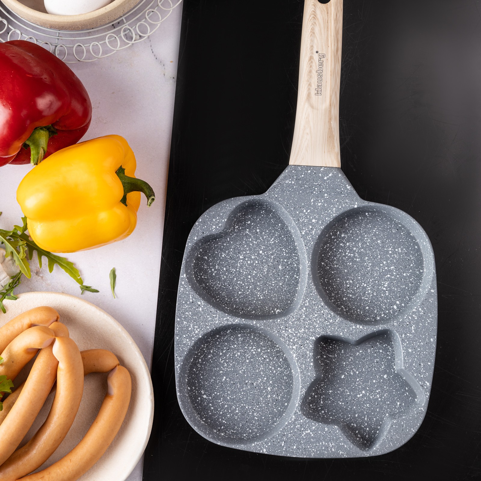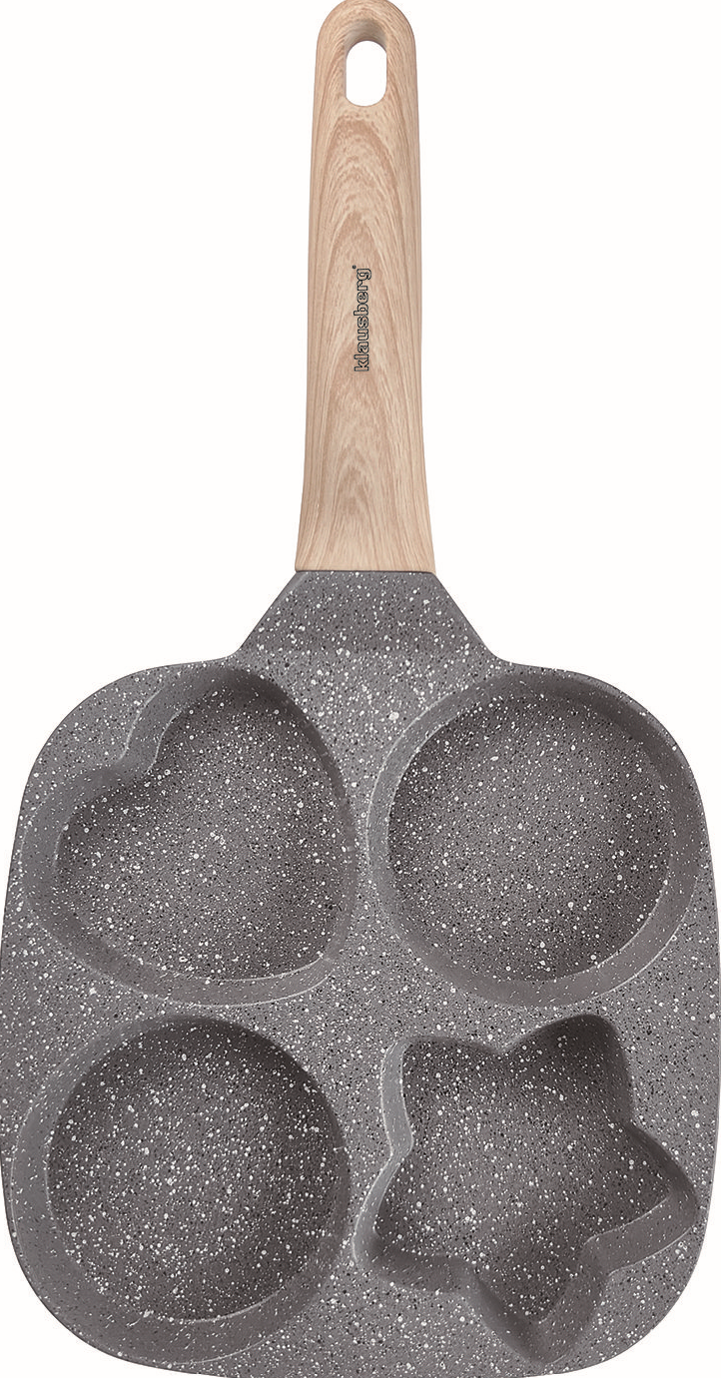 Patelnia z powłoką nieprzywieralną, szara z drewnianą rączką, 4 sekcje w różnych kształtach, 36x19x2,3cm, Klausberg
