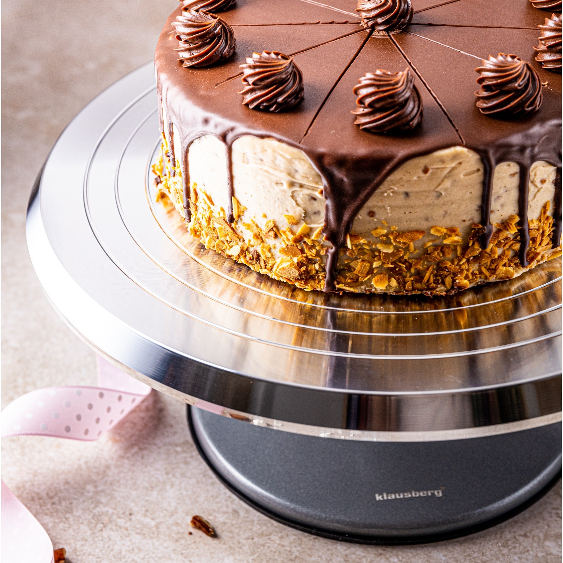 Solidna konstrukcja i praktyczne detale sprawiają, że patera KLAUSBERG to niezawodne narzędzie w każdej domowej cukierni.