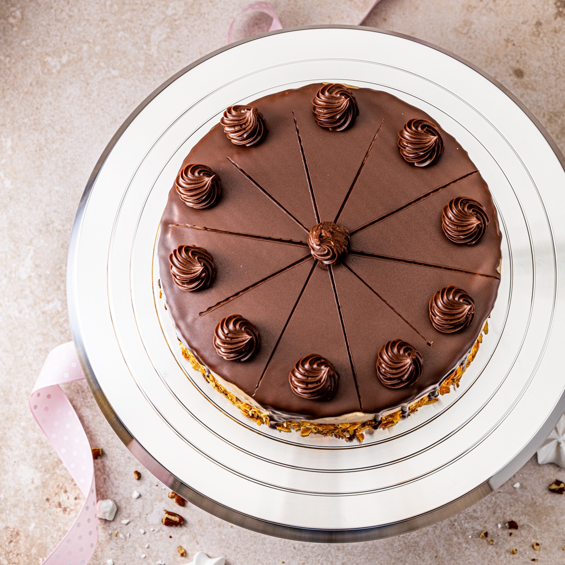 Wyprofilowana powierzchnia ułatwiająca ustawienie i dekorowanie ciasta