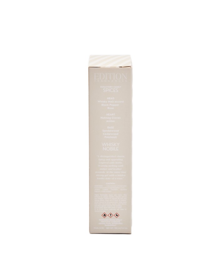 Edycja Whisky Nobile to zapach z mocnym charakterem słodowej whisky i pikantnych przypraw w otoczeniu eleganckiej skóry i drewna sandałowego. Nie mogą być stosowane jako perfumy do ciała.