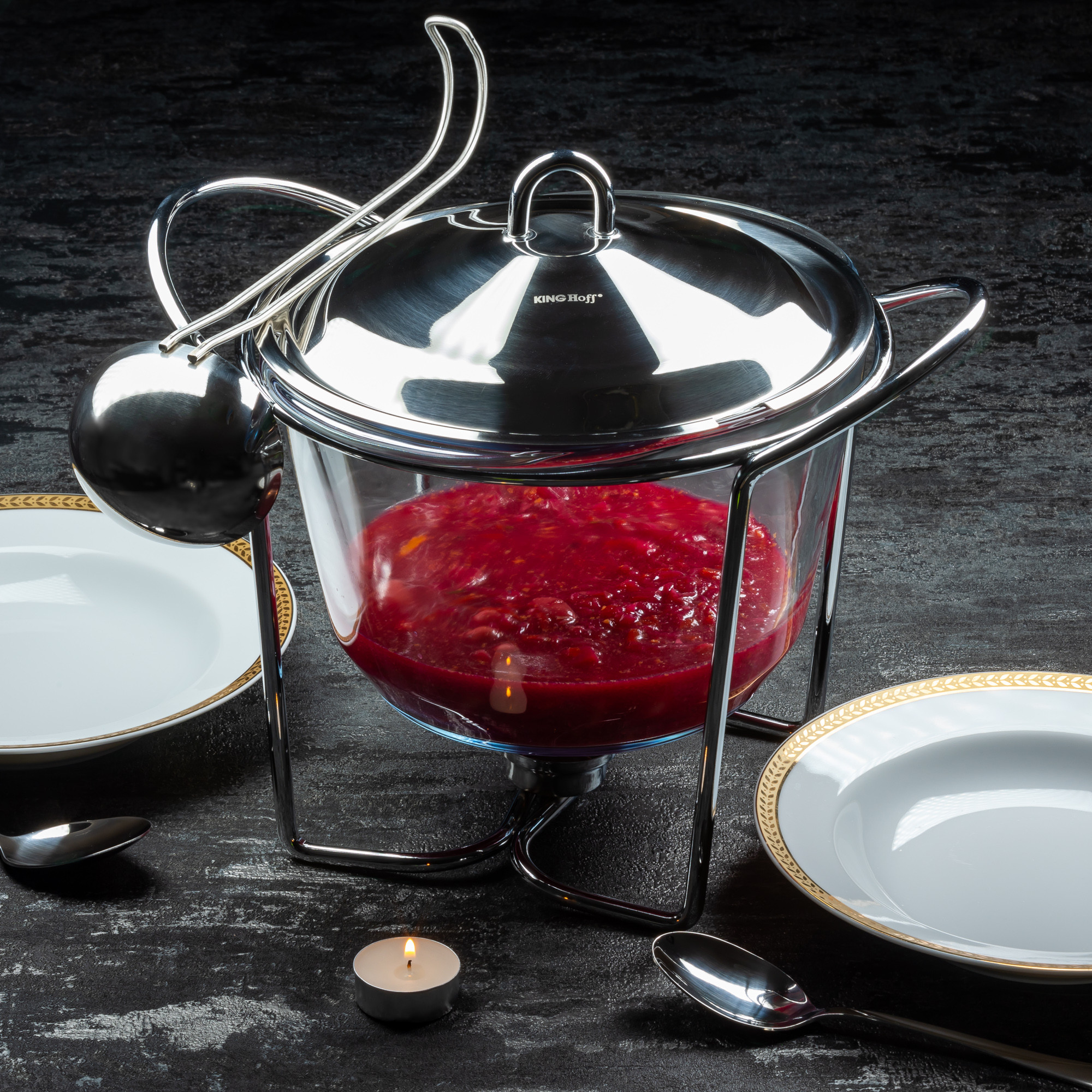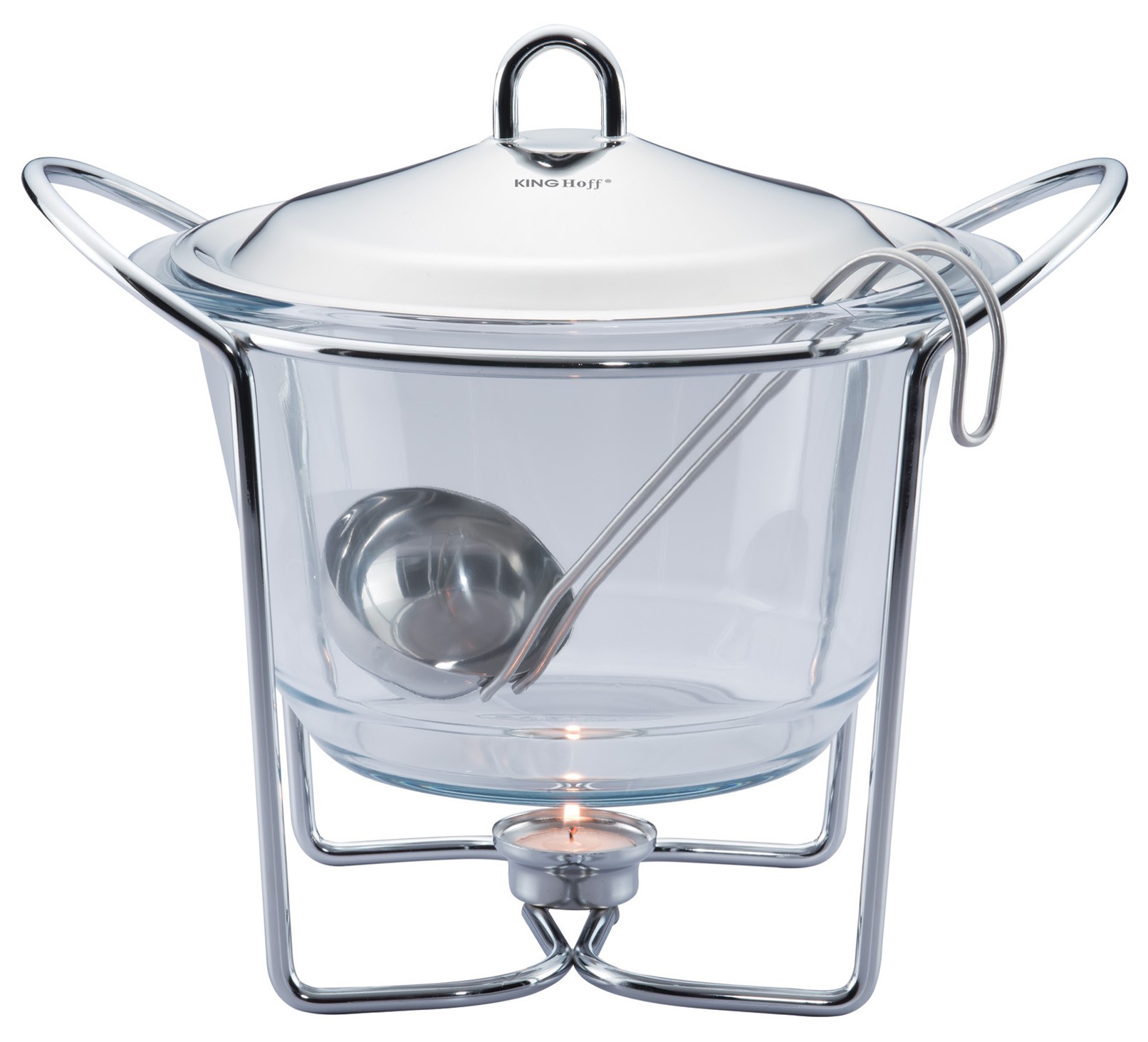 Podgrzewacz stołowy Kinghoff KH-1413 to połączenie elegancji, funkcjonalności i trwałości – stworzony z myślą o efektownym serwowaniu gorących dań. Duże, żaroodporne naczynie o pojemności 4 litrów pozwala wygodnie podać potrawę prosto z kuchenki na stół, gdzie dzięki świeczkom tealight będzie ona utrzymywać idealną temperaturę przez długi czas. Francuskie szkło hartowane Sabinex oraz stal nierdzewna 18/8 gwarantują wytrzymałość i stylowy wygląd.