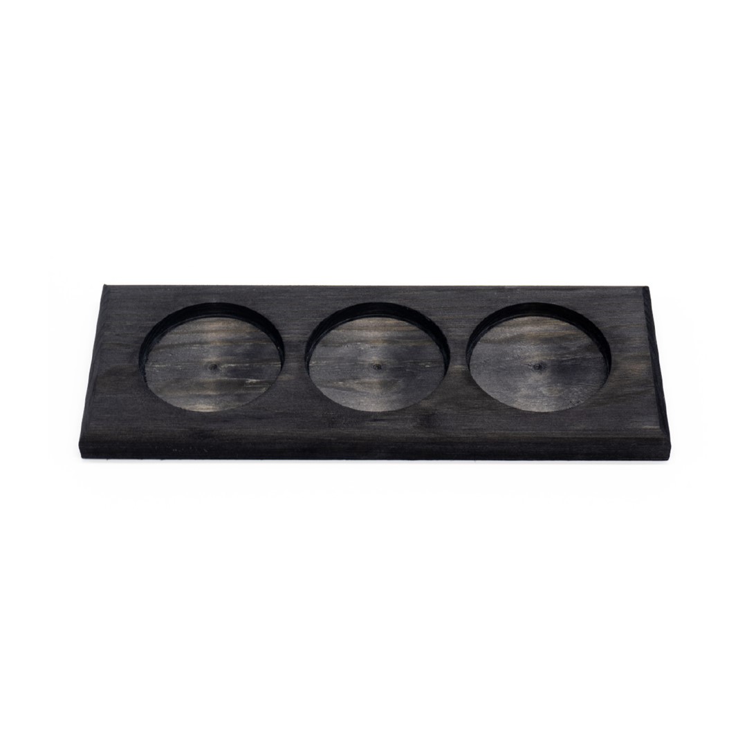 – drewniana podstawka z miejscem na 3 butelki mydła w płynie Cereria Molla.