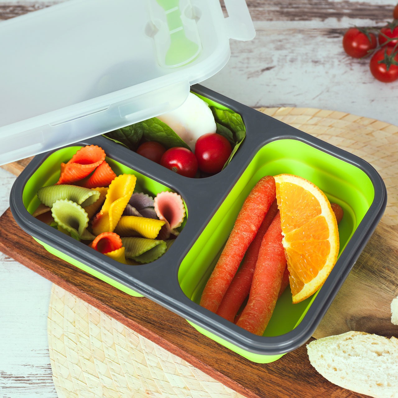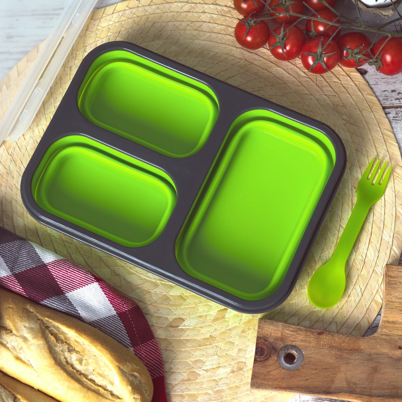 Trzykomorowy pojemnik składany z elastycznego silikonu LFGB