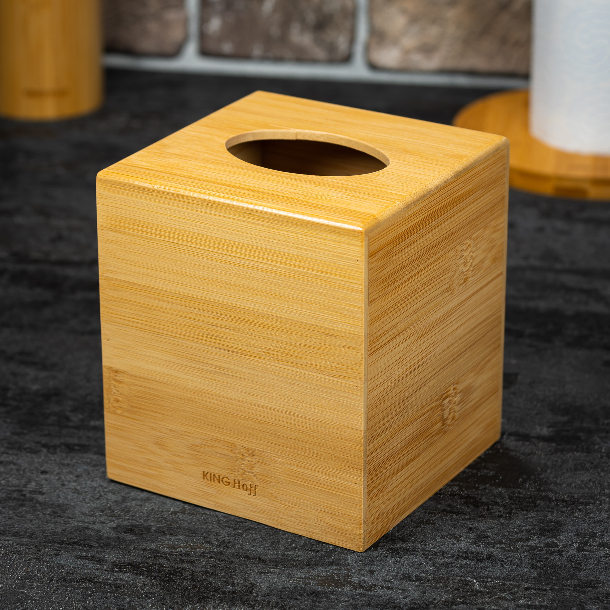 Stylowy pojemnik na chusteczki Kinghoff wykonany z naturalnego bambusa to elegancki i praktyczny dodatek do każdego wnętrza. Jego kompaktowa forma i pionowa konstrukcja sprawiają, że zajmuje niewiele miejsca, a jednocześnie przyciąga uwagę swoim minimalistycznym wyglądem. Niezależnie od tego, czy umieścisz go w łazience, kuchni czy salonie, świetnie spełni swoją funkcję, zapewniając łatwy dostęp do chusteczek oraz porządek w otoczeniu.