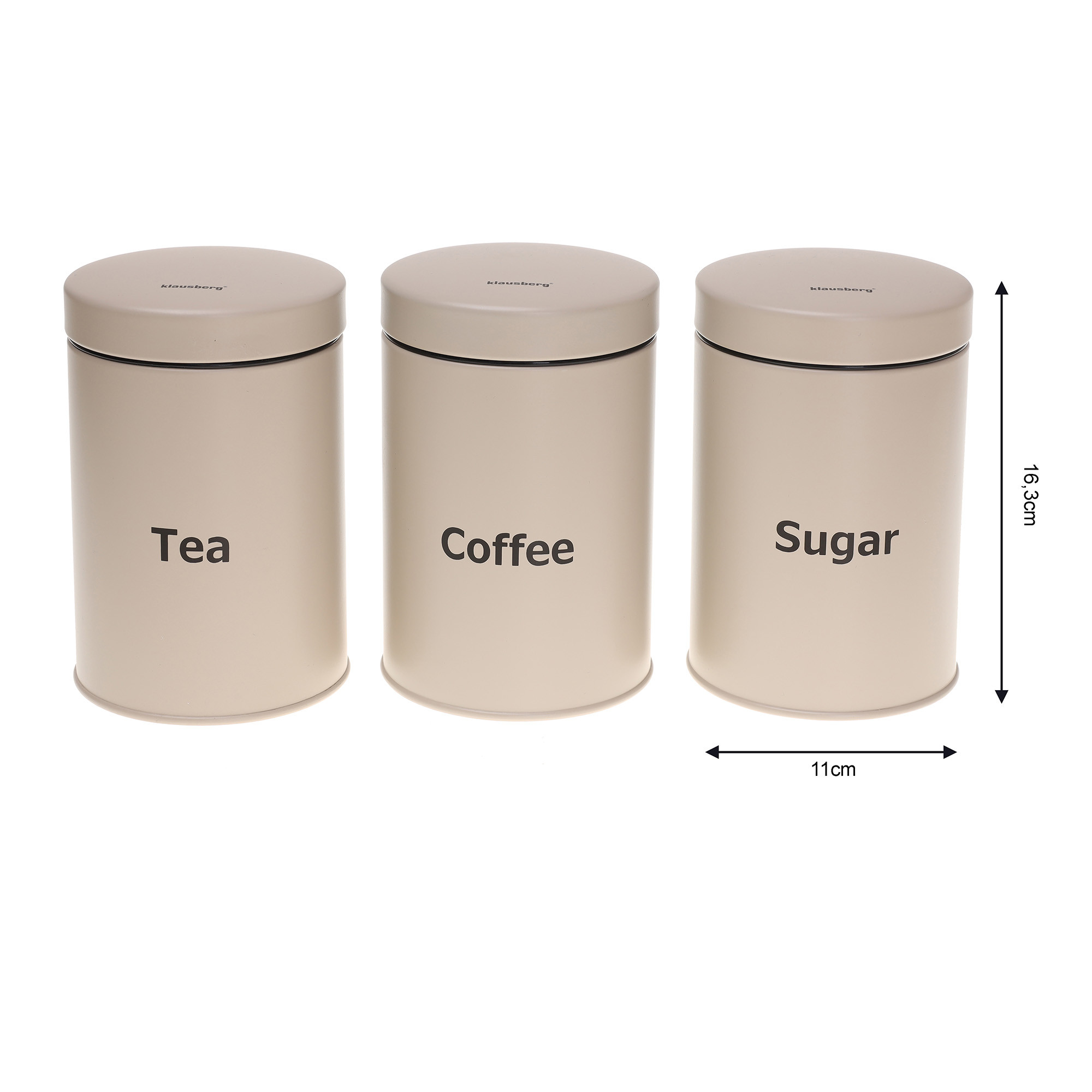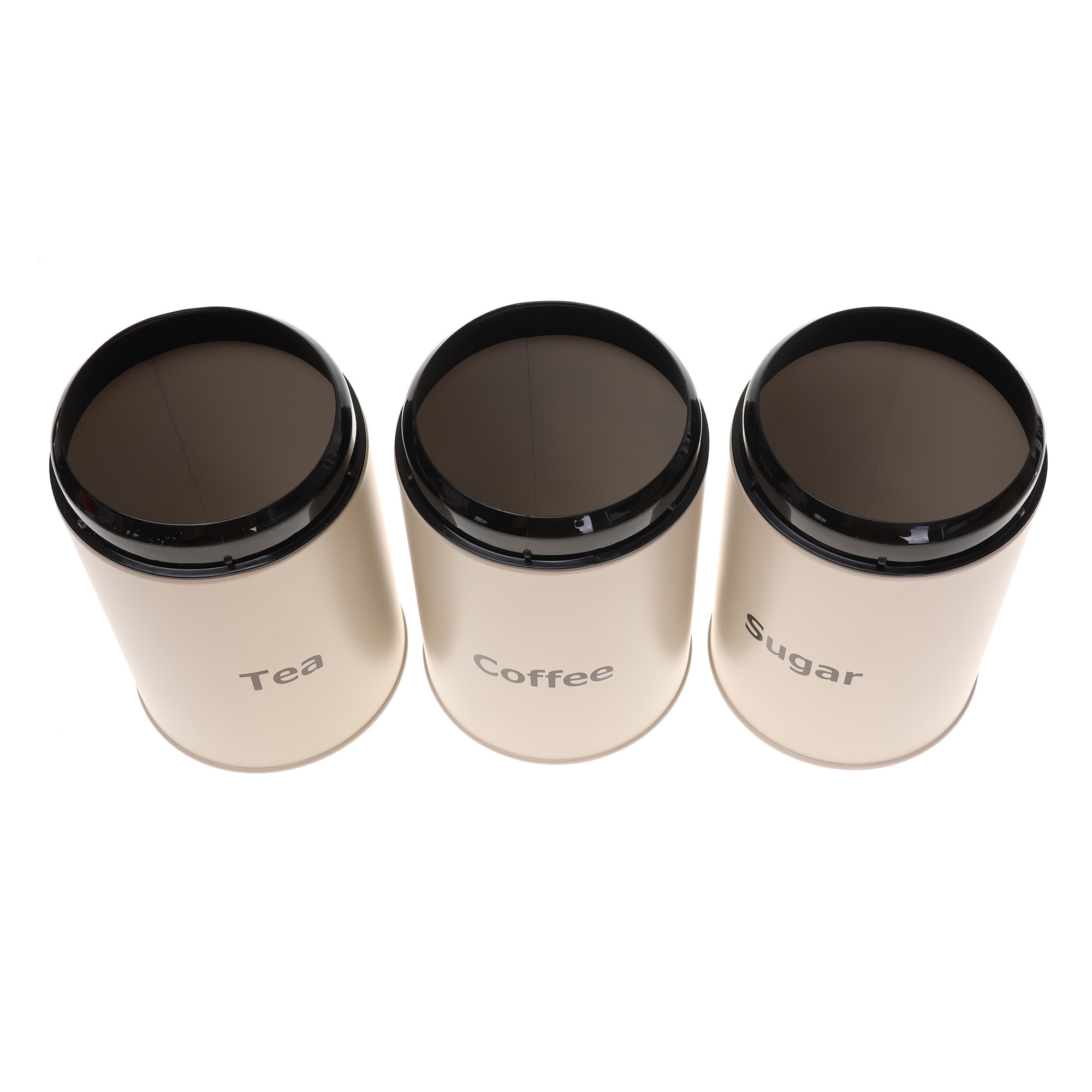 – Na pojemnikach czarny napisy Sugar, Coffee, Tea.