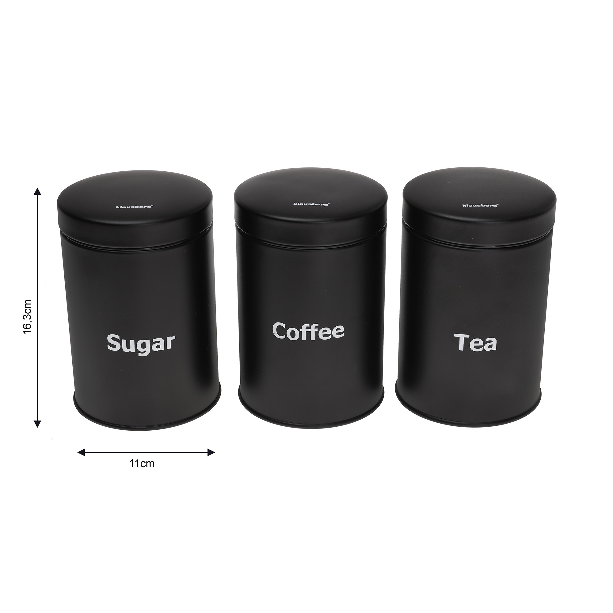 – Na pojemnikach biały napisy Sugar, Coffee, Tea.