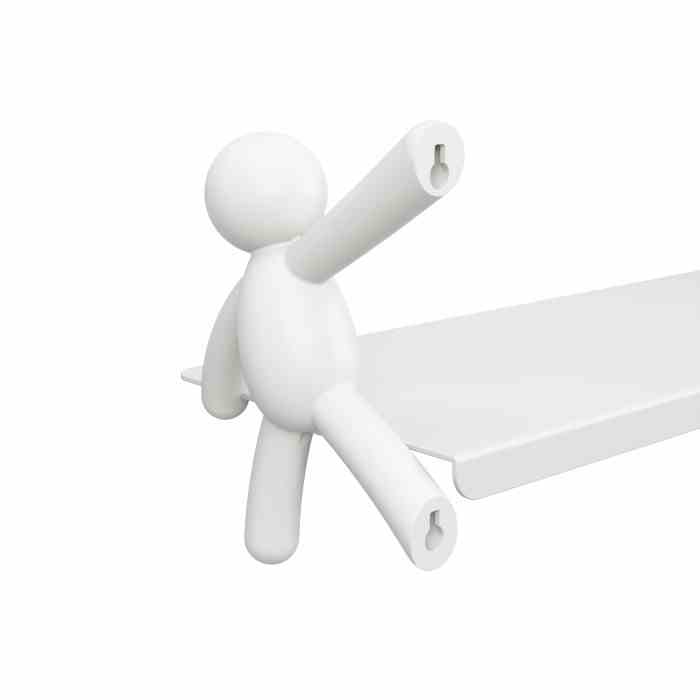 Półka Buddy wyróżnia się figurką Buddy, która daje złudzenie, że postać trzyma półkę z obu stron, wprowadzając do wnętrza element radości i lekkości.