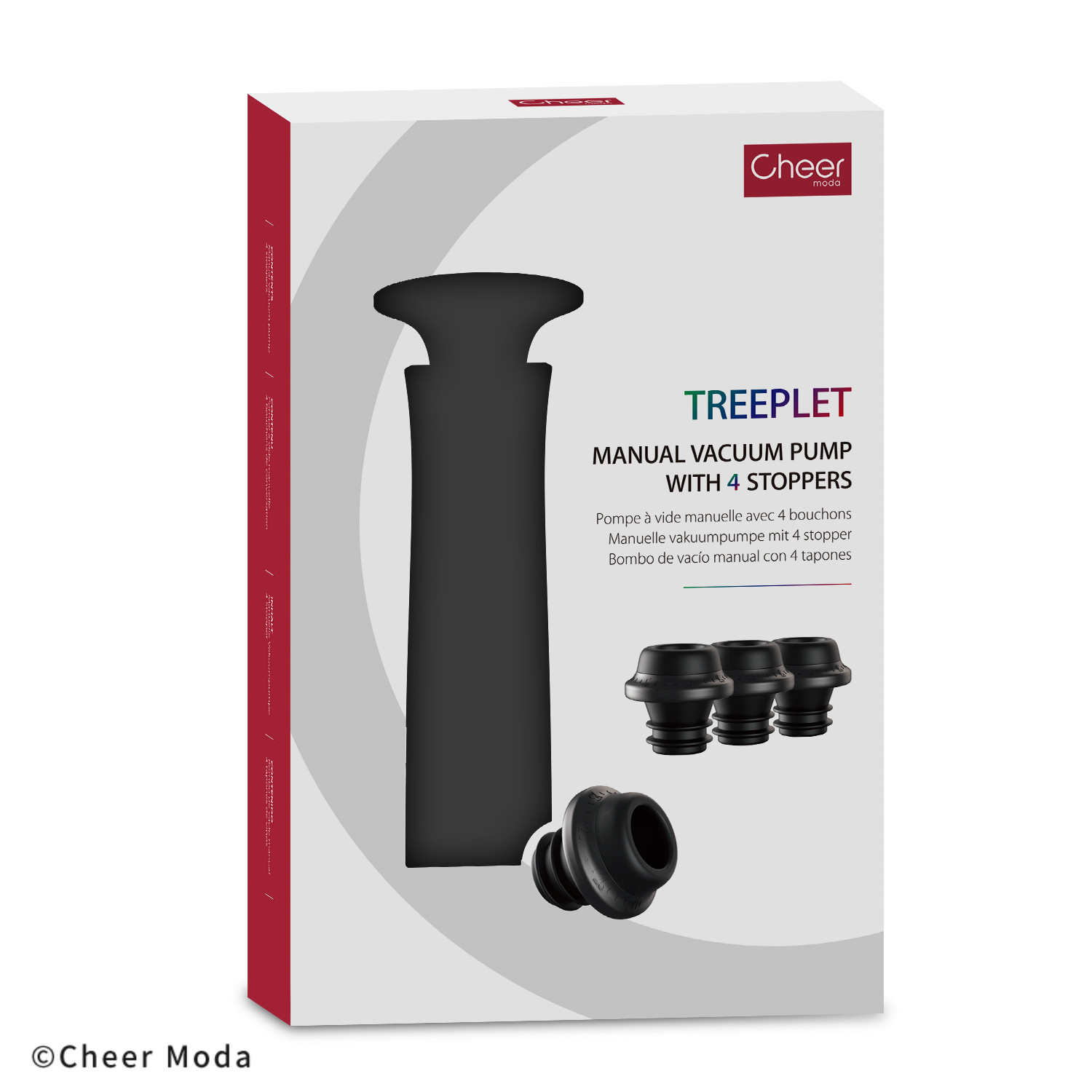 Treeplet to idealny zestaw stworzony do zachowania smaku i świeżości wina po otwarciu butelki. W zestawie z efektywną i łatwą w użyciu pompką próżniową znajdują się 4 korki próżniowe. Po umieszczeniu korka w butelce wystarczy kilka pociągnięć pompki, aby zatrzymać świeżość wina nawet na 7 kolejnych dni. Na korku znajduje się pierścień pozwalający ustawić datę otwarcia butelki. Jeden zestaw, aby zachować świeżość wina w czterech butelkach na raz. Materiał: ABS. Opakowanie: kartonowe pudełko prezentowe.