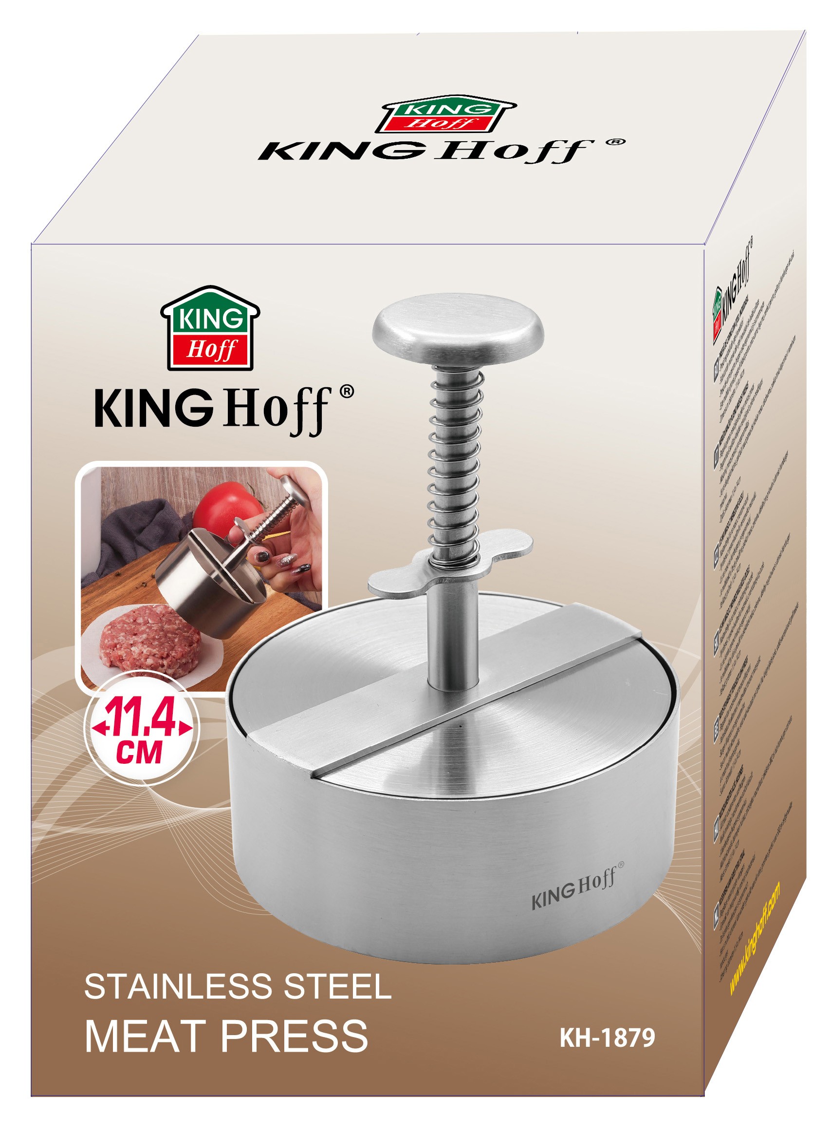 Praska do mięsa KINGHoff KH-1879 to niezastąpione narzędzie dla miłośników domowych hamburgerów i grillowania. Solidna konstrukcja, łatwość obsługi oraz możliwość regulacji wielkości kotleta sprawiają, że jest to praktyczny sprzęt w każdej kuchni, który ułatwia przygotowanie pysznych, równych porcji mięsa lub warzyw.