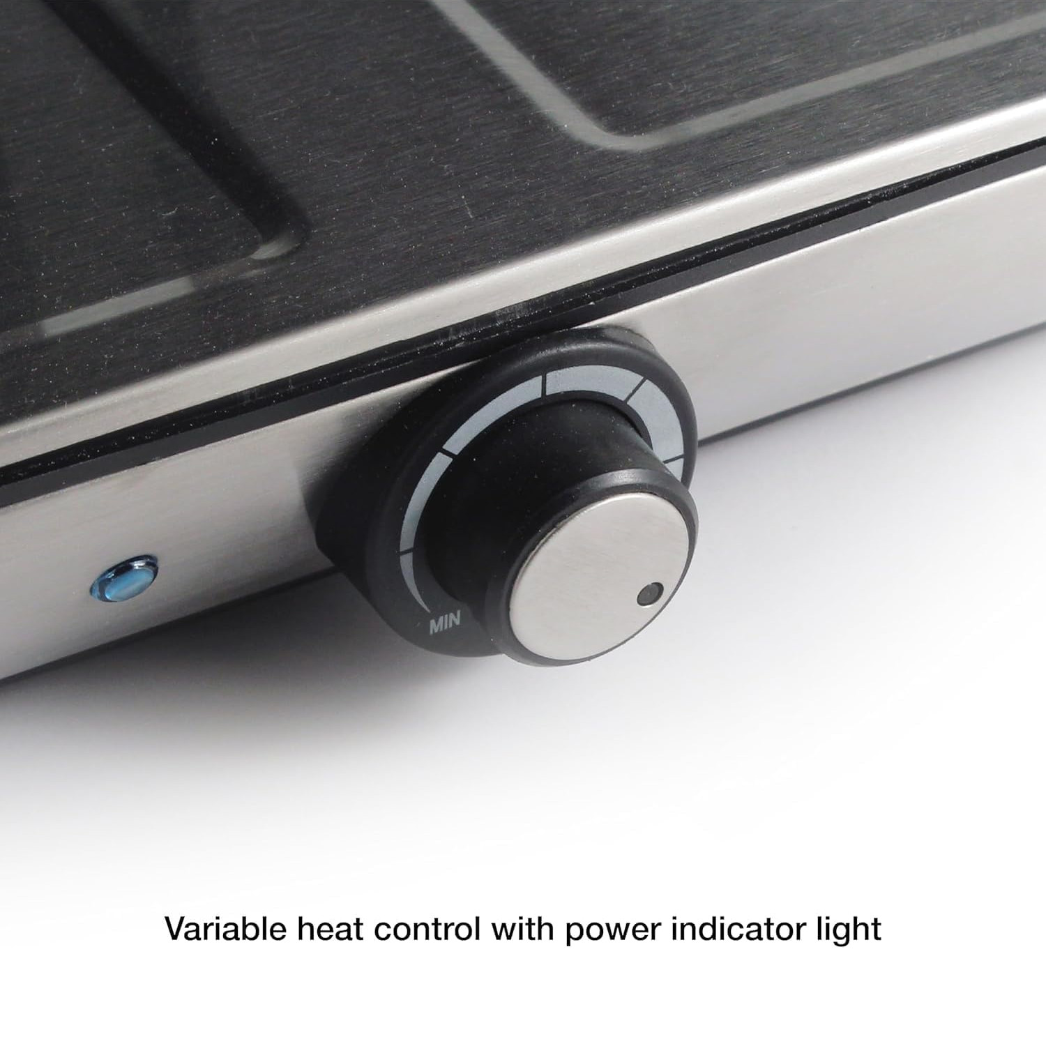 Grill Raclette Party Geneva 8-osobowy z płytą grillową z odlewu aluminium, podstawą ze szczotkowanej stali nierdzewnej. Duża moc grilla (1700 watów / 240 V / 60 Hz) ułatwi podgrzewanie dodatków oraz topienie sera. W zestawie: 8 patelenek do raclette z powłoką zapobiegającą przywieraniu topionych serów, 8 odpornych na ciepło szpatułek do zdejmowania roztopionego sera z patelenek raclette. Parametry urządzenia: -moc: 1700 watów, 220/240 V, 50/60 Hz, -możliwość regulacji temperatury, -dwustronna płyta odlew aluminiowy: powierzchnia gładka i grillowa. Instrukcja: – przed użyciem pierwszym użyciem wytrzyj urządzenie wilgotną ściereczką, umyj ręcznie i osusz płytę grillową, umyj ręcznie naczynia do raclette i szpatułki w ciepłej wodzie z płynem do naczyń i dokładnie osusz. – podłącz wtyczkę i wybierz pożądany zakres temperatury przekręcając włącznik, jeśli używasz płyty, rozgrzej ją przez 8 do 10 minut na najwyższym zakresie temperatury, po czy zmniejsz do pożądanego poziomu. – przed rozpoczęciem grillowania posmaruj olejem płytę, nie używaj sprejów z olejem, może to doprowadzić do pożaru. – używaj szpatuł drewnianych lub plastikowych przeznaczonych do kontaktu z bardzo gorącymi powierzchniami. Nie wolno używać metalowych narzędzi, ponieważ te mogą uszkodzić powłokę. – osusz dokładnie żywność przeznaczoną do smażenia, – zamrożona żywność przez położeniem na płycie powinna być całkowicie rozmrożona, – ziemniaki przed grillowaniem, powinny zostać wstępnie obgotowane, czas przygotowania mięsa zależy od wielkości, małe kawałki mięsa to ok 2-4 minut z każdej strony, większe to nawet 15 minut z każdej strony. Uwaga! Rozgrzane urządzenie jest bardzo gorące! Nie należy pozostawiać włączonego pustego urządzenia! Nie należy na rozgrzane płyty wkładać/wlewać zimnych rzeczy. Zasady czyszczenia zestawu: Przed przystąpieniem do czyszczenia upewnij się, że wtyczka jest wyjęta z gniazdka, a urządzenie całkowicie wystygło. Podstawy grzejnej nie wolno zanurzać w wodzie, czyścimy suchą ściereczką. Do czyszczenia płyty, patelenek oraz szpatuł nie należy używać ostrych zmywaków i agresywnych środków myjących. Ogólne uwagi dotyczące użytkowania: Zestaw przeznaczony jest tylko do użytku domowego. Dzieci nie powinny korzystać z zestawu bez nadzoru dorosłych. Nie polecamy używać zestawu w obecności dzieci młodszych niż 8-letnie. Zestaw nie jest zabawką. Kabel zasilający powinien być w całości rozwinięty jeżeli korzystamy zestawu. Podłączamy wtyczkę tylko do uziemionego gniazdka. Nie wolno pozostawiać zestawu podłączonego do zasilania nawet jeśli jest on nieużywany. Urządzenie nie nadaje się do użycia z włącznikami czasowymi. Zawsze upewnij się, że urządzanie stoi stabilnie na płaskiej powierzchni. Nie przesuwaj, nie przenoś zestawu w trakcie użytkowania. Elementy zestawu rozgrzewają się do wysokiej temperatury, dlatego korzystając z niego należy zachować ostrożność. Dodatkowe uwagi: Urządzenie jest elektryczne zatem nie wolno używać go na zewnątrz, kiedy pada deszcz i w pobliżu zlewu, czy innych naczyń z płynami. Nie dotykaj podstawy grzejnej mokrymi dłońmi. Jeśli dojdzie do zalania urządzenia pamiętaj , aby najpierw wciągnąć wtyczkę z gniazdka. Nie podłączaj urządzenia jeśli jest ono widocznie uszkodzone, upadło lub zostało zgniecione. Przed włączeniem do sieci upewnij się, że kontroler temperatury jest wyłączony. Włączamy go przekręcając zgodnie z ruchem wskazówek zegara – słyszymy cichutkie klik. Odłączając od sieci nigdy nie ciągniemy za kabel a za wtyczkę. Przybliżone wymiary całości: – wysokość: 11cm, – długość: 51cm, – szerokość: 24cm. Przybliżone wymiary płyty: – wysokość: 1,7cm, – długość: 47cm, – szerokość: 24cm. Przybliżone wymiary szpatuły: – długość: 13,5cm, – szerokość: 4,8cm. Przybliżone wymiary patelenki: – długość z rączką: 22,5cm, wymiary patelenki: 9cm x 9cmx 1cm. Przybliżone wymiary brutto: – wysokość: 29cm, – długość: 53cm, – szerokość: 17cm. Przybliżona waga brutto: 3,996kg. Opakowanie: kartonowe pudełko prezentowe.