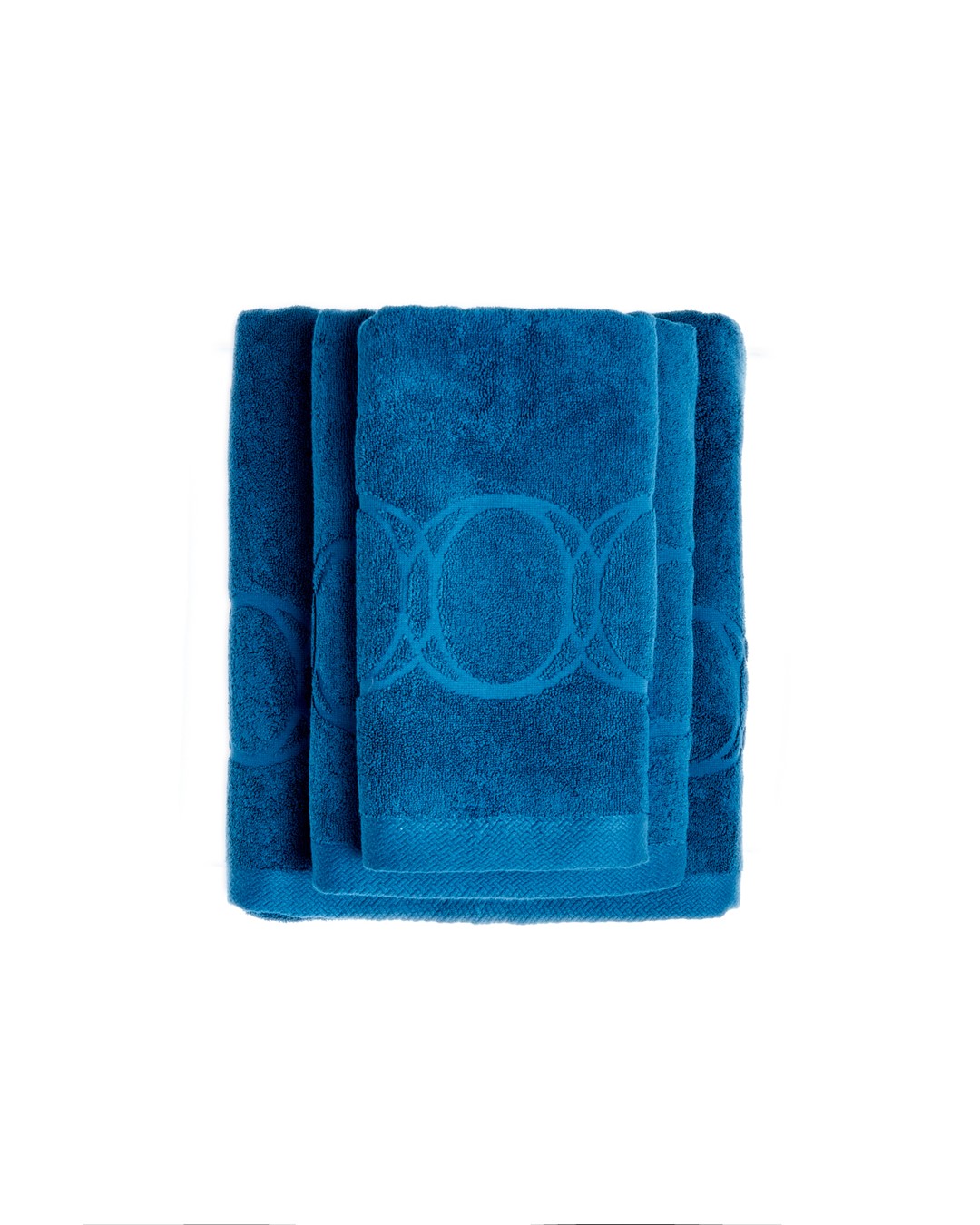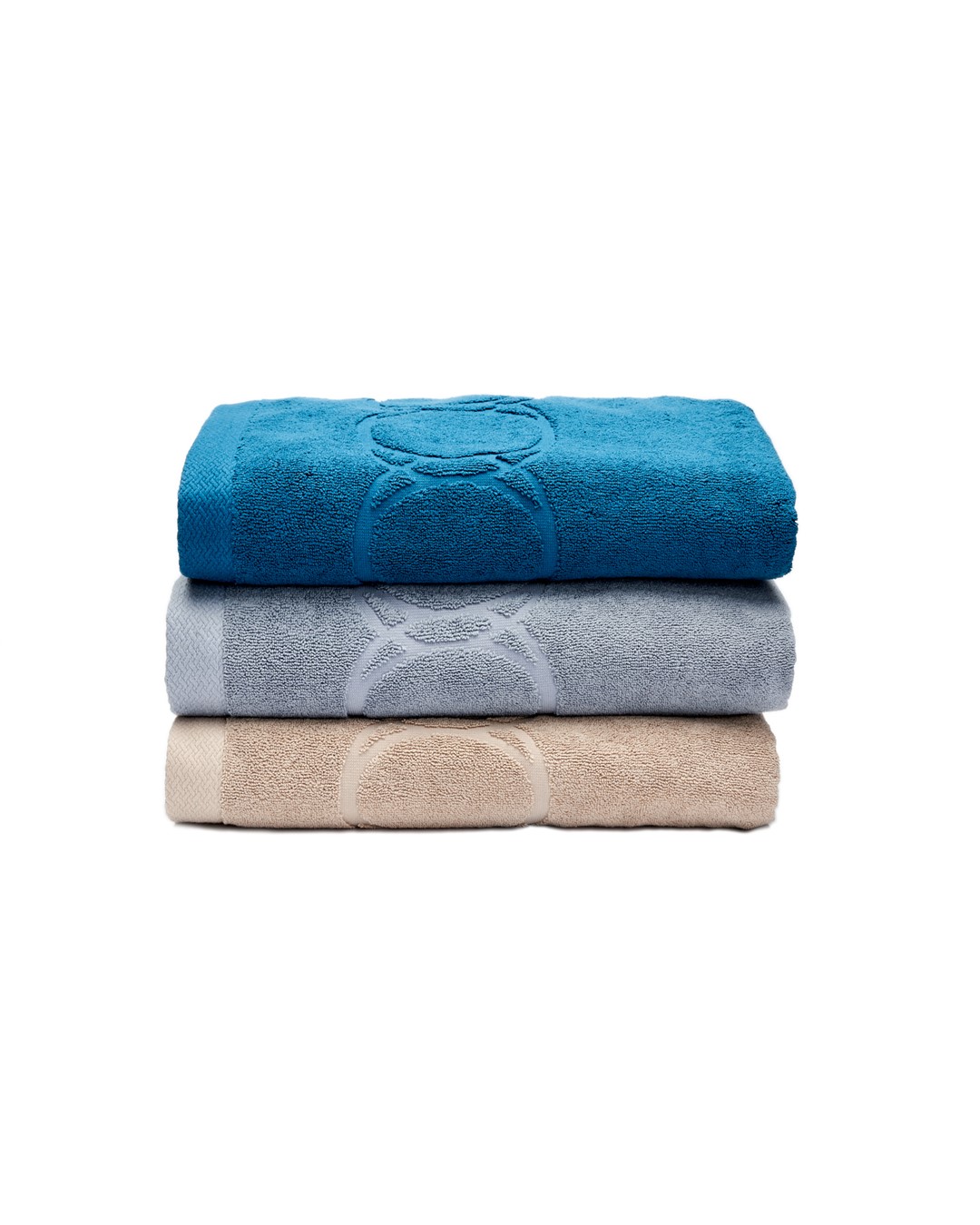 Duży ręcznik kąpielowy Monogram Opus z kolorowej organicznej bawełny frotte, o splocie intrecciato, z wytłoczonym wzorem oraz ozdobną lamówką. Bawełna podwójnie czesana, wstępnie prana. Ręcznik posiada wszytą pętelkę do zawieszania w tym samym kolorze, podwójne przeszycia i zamknięte rogi.
