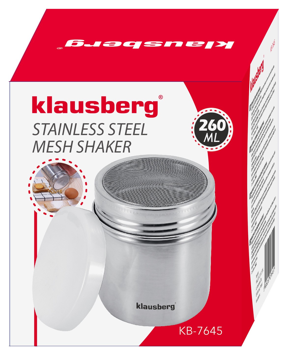 Odkryj perfekcyjne połączenie stylu i funkcjonalności w jednym eleganckim pojemniku, który stanie się nieodzownym elementem Twojej kuchni. Shaker Klausberg to wszechstronne rozwiązanie do precyzyjnego i równomiernego posypywania cukru pudru, kakao, czekolady oraz innych drobno zmielonych produktów spożywczych. Dzięki niemu każde dekorowanie potraw stanie się szybkie, łatwe i efektowne.