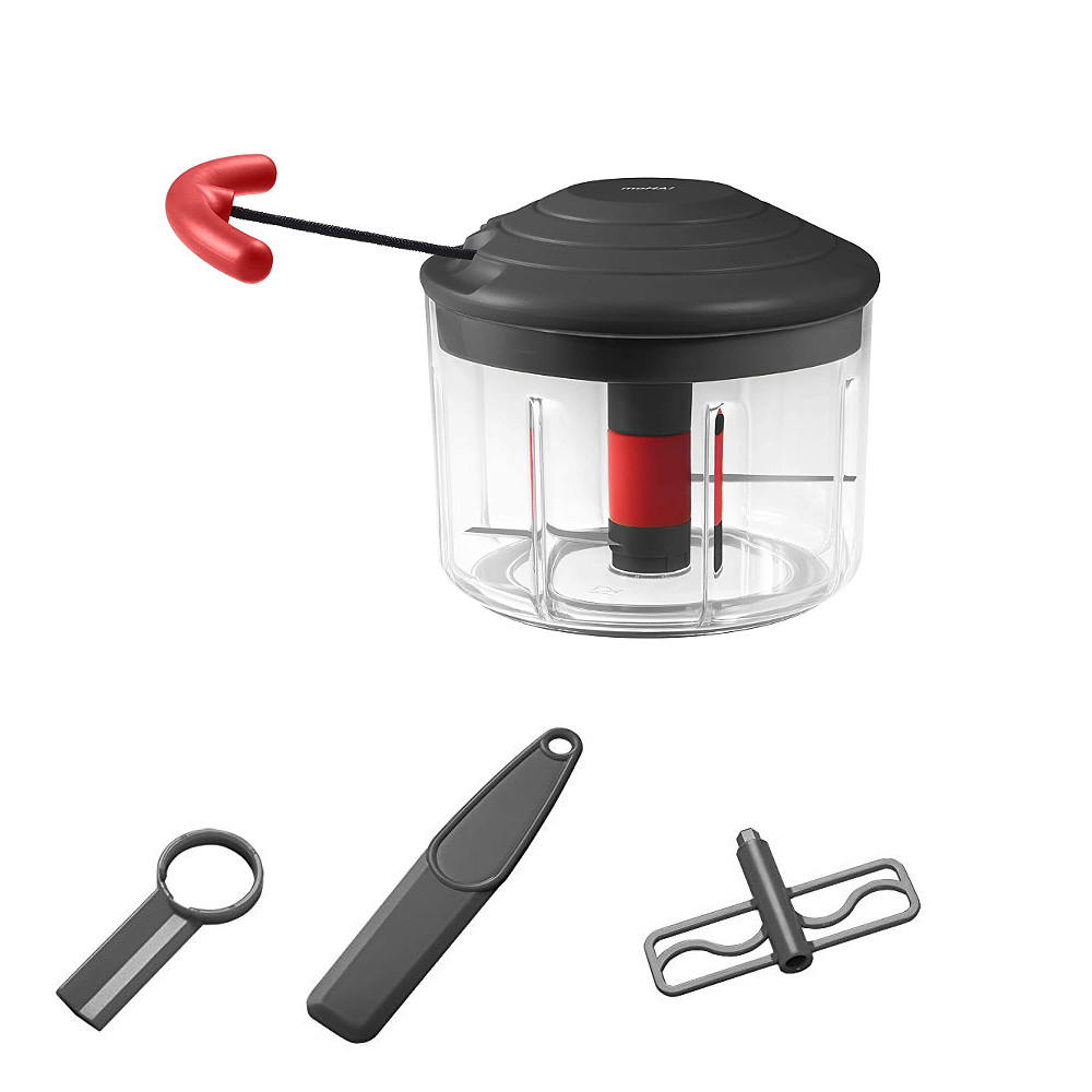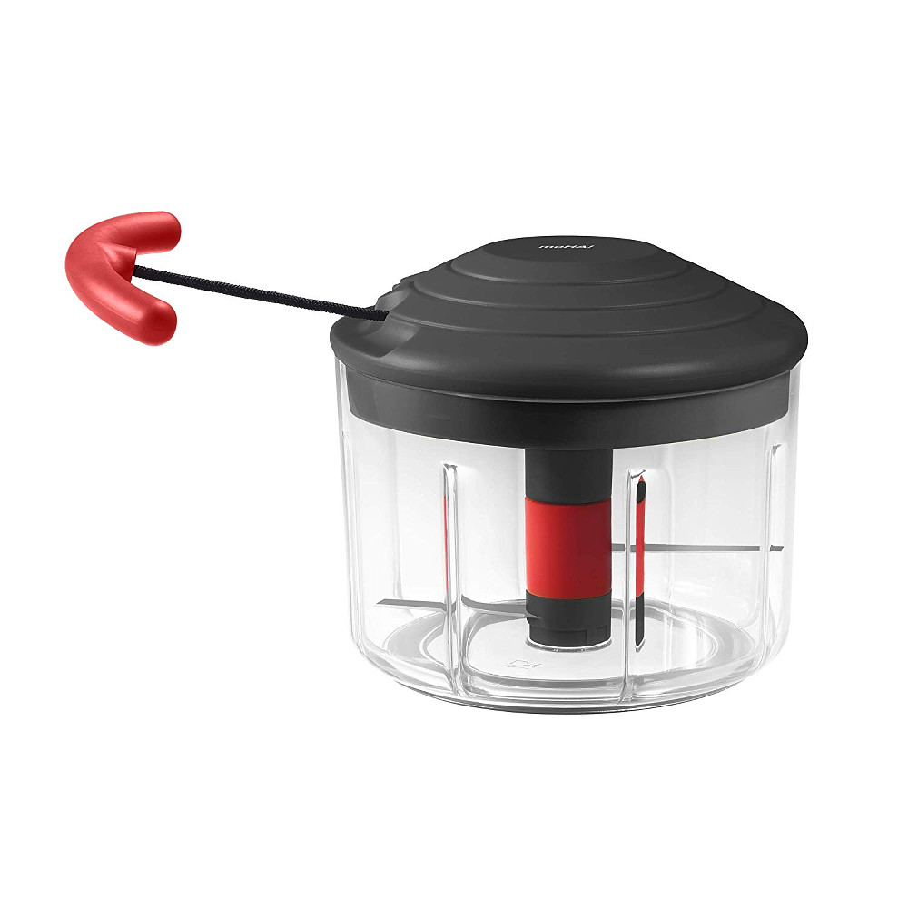 Speedy Max nie tylko sieka, ale również kroi i szatkuje oraz miksuje. To spora różnica w porównaniu do innych urządzeń tego typu. A to dzięki możliwości wyboru grubości krojenia – od dużych kawałków, przez średnie, aż po bardzo drobne. Wystarczy 5 do 20 pociągnięć linką, żeby pokroić produkty na taki stopień, jaki jest Ci akurat potrzebny.