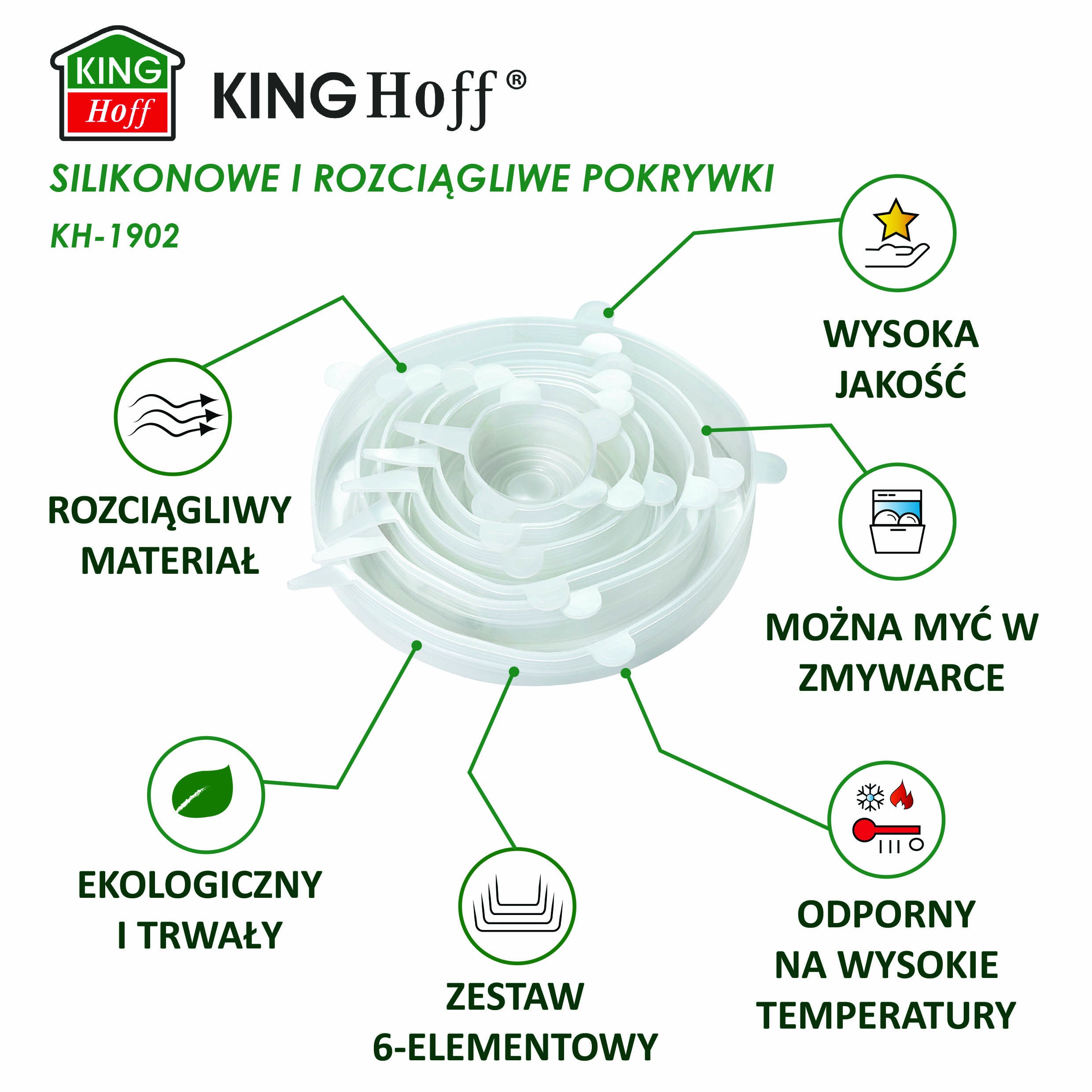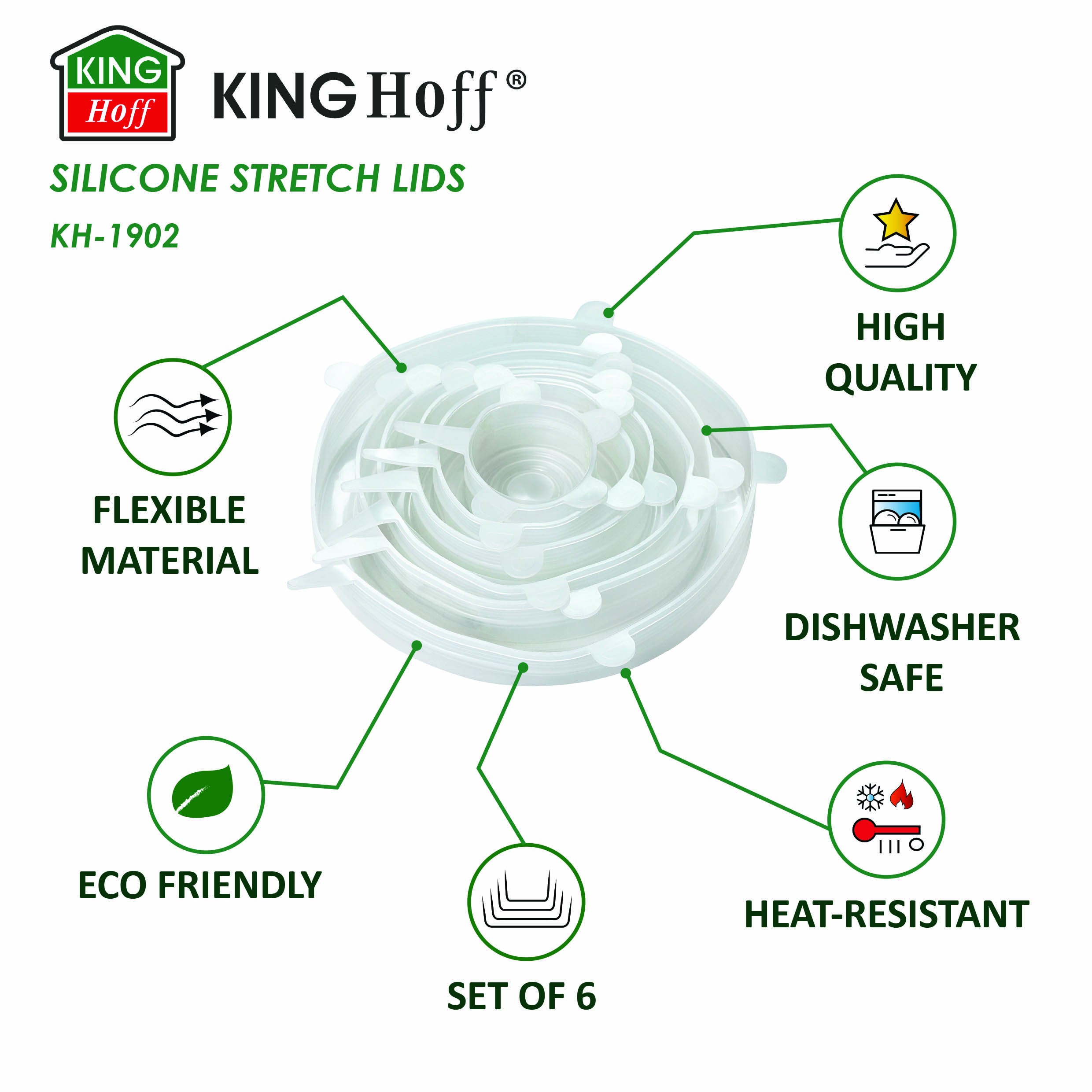 Zestaw silikonowych pokrywek KINGHoff KH-1902 to praktyczne i ekologiczne rozwiązanie do każdej kuchni. Idealne do codziennego użytku – dla rodzin, studentów, miłośników gotowania i osób ceniących porządek.