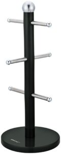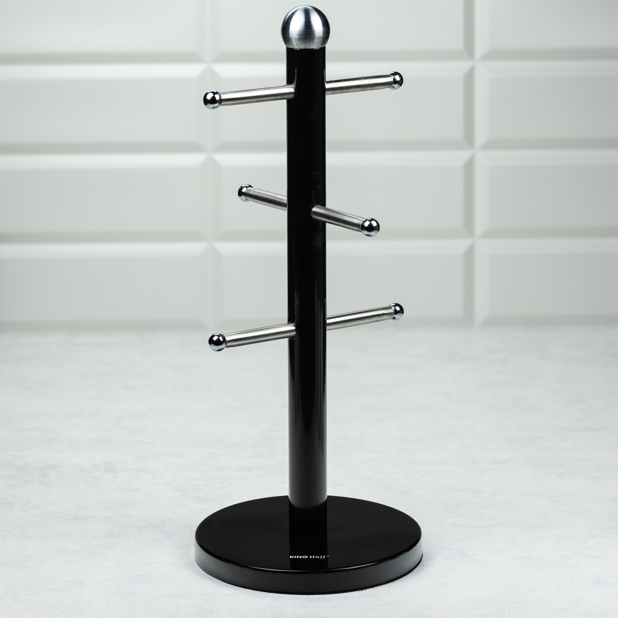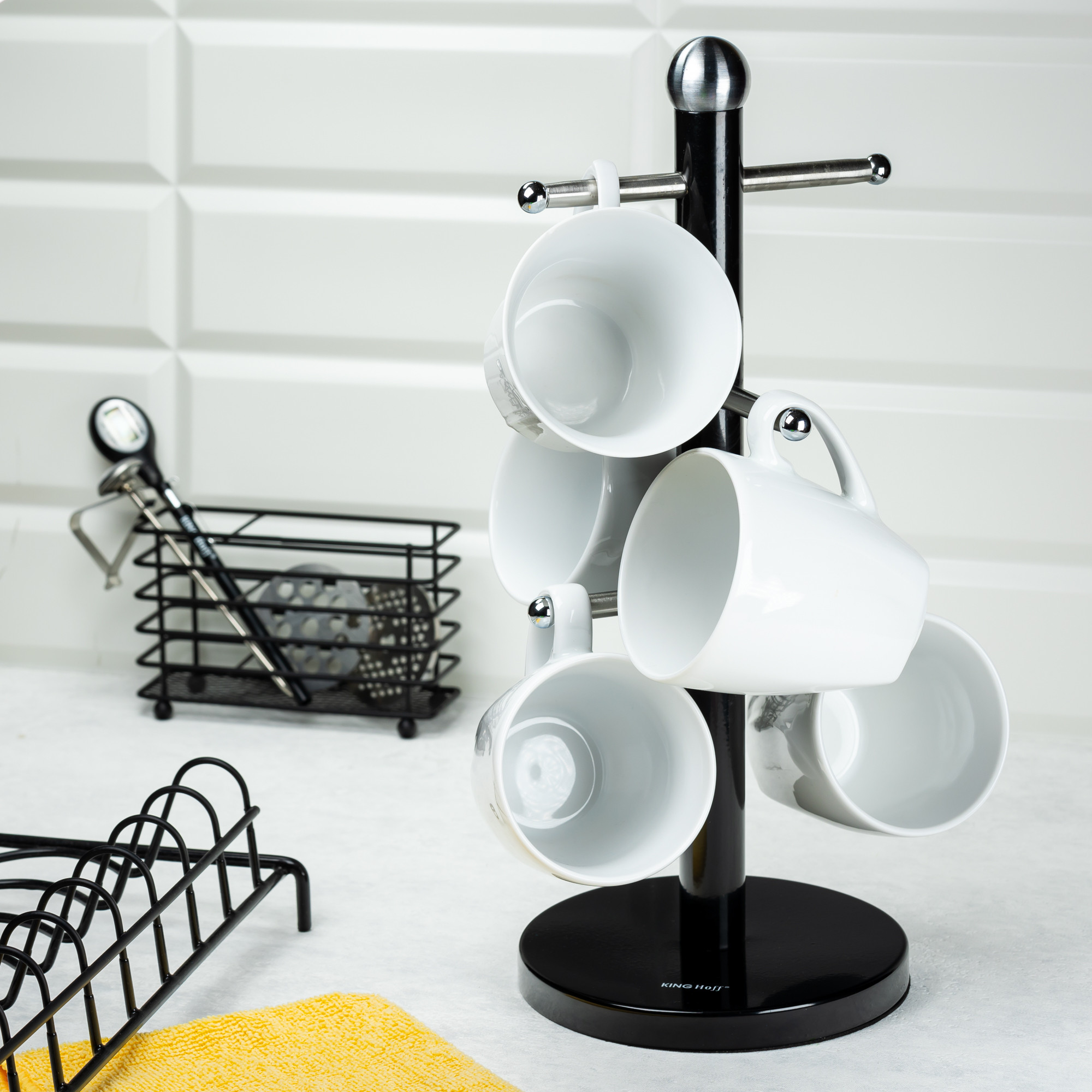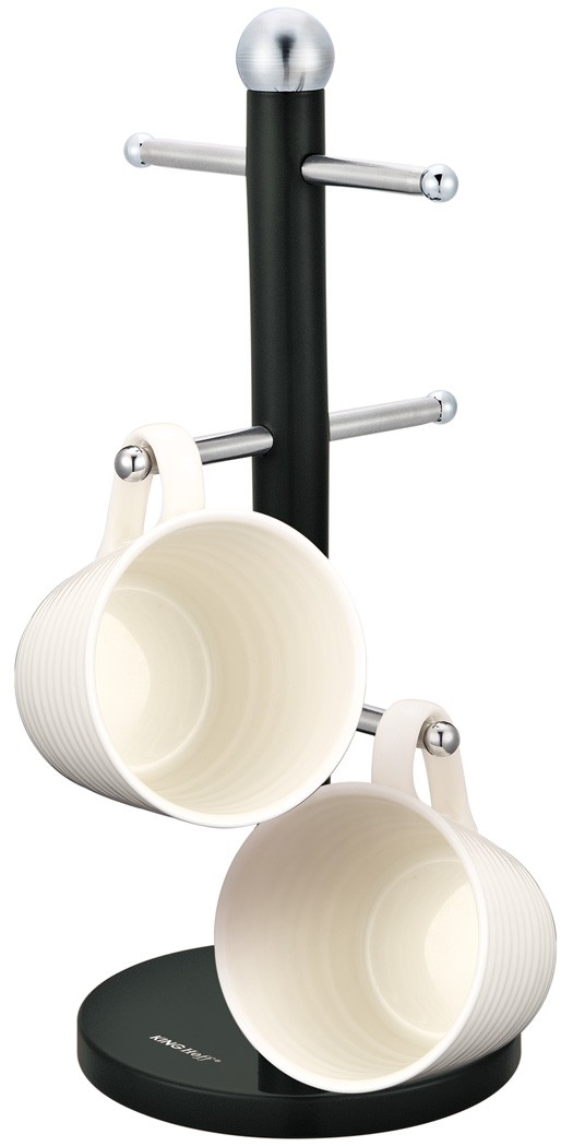 Stojak na 6 kubków wykonany jest ze stali pokrytej proszkową farbą, dzięki której odporny jest na zarysowania. Posiada solidną konstrukcję i masywną podstawę dzięki czemu stojak na filiżanki jest stabilny.