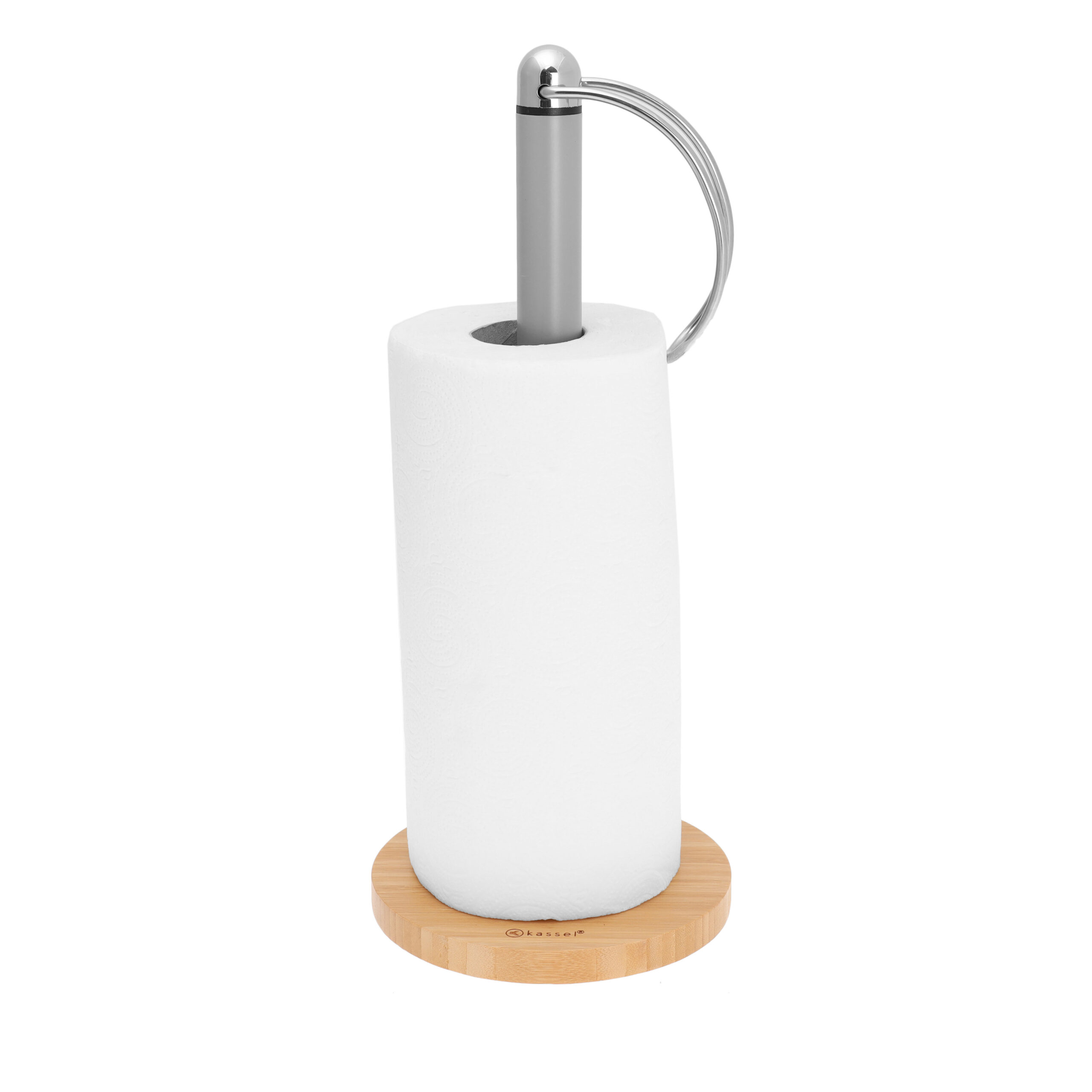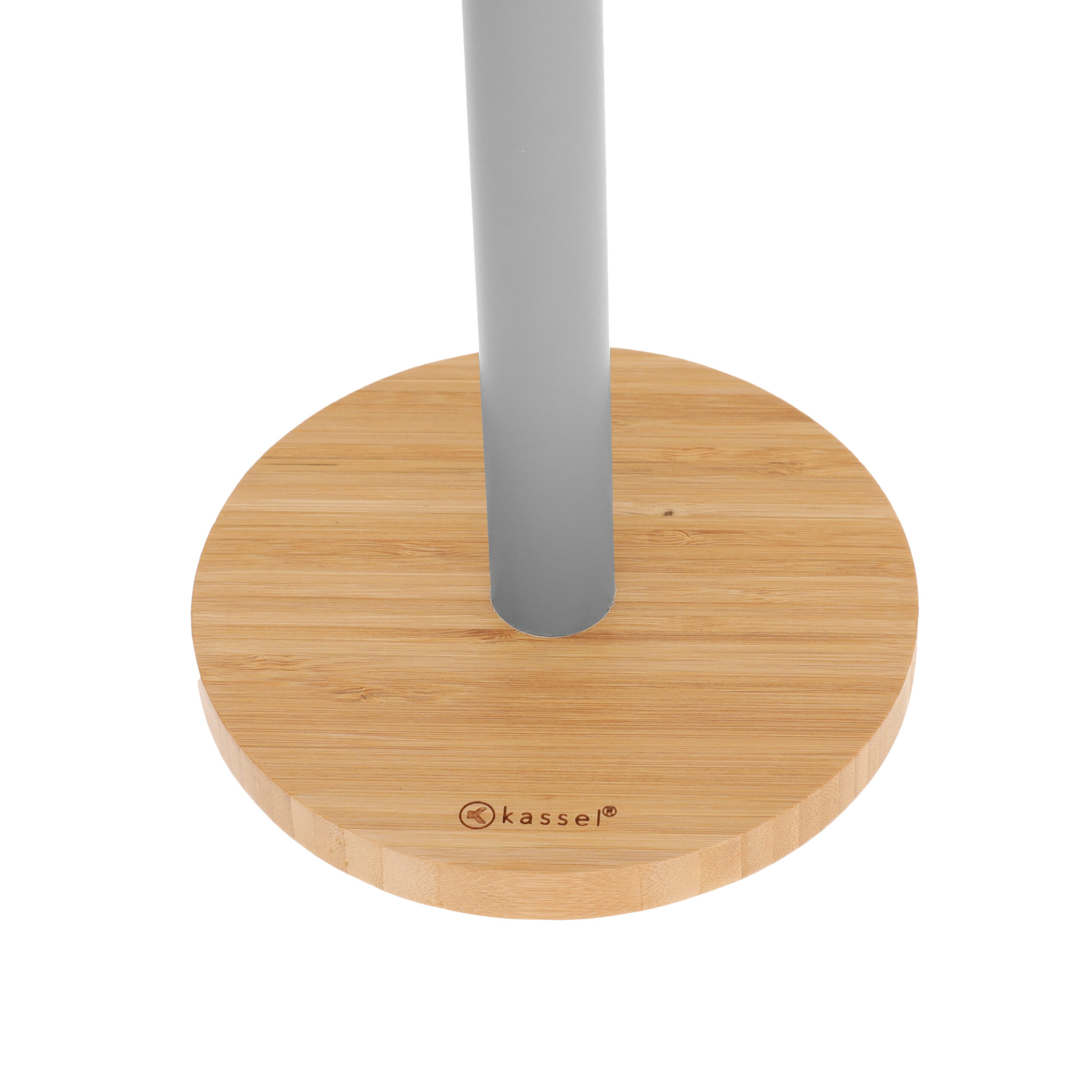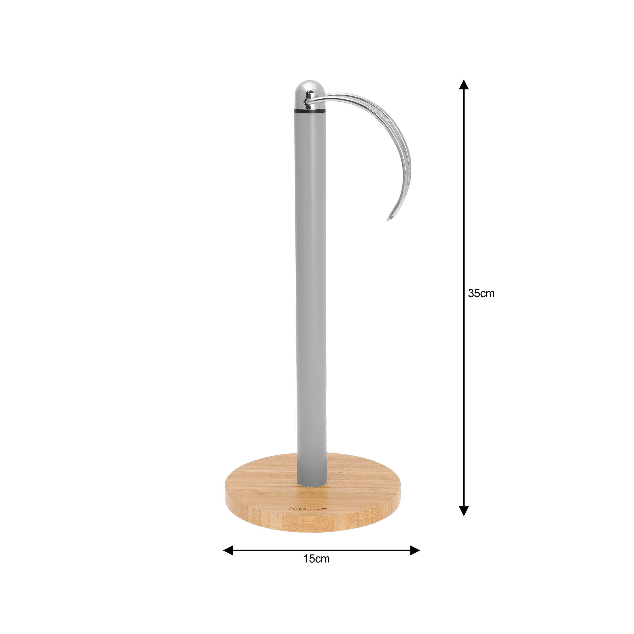Stojak na ręcznik papierowy Kassel 93610 wykonany jest z lakierowanej stali w kolorze szarym oraz naturalnego drewna bambusowego, co gwarantuje trwałość i nowoczesny wygląd. Solidna i stabilna konstrukcja zapewnia wygodne rozwijanie ręczników papierowych, które będą zawsze pod ręką i łatwo dostępne. Stojak jest kompatybilny ze wszystkimi standardowymi rolkami papieru.