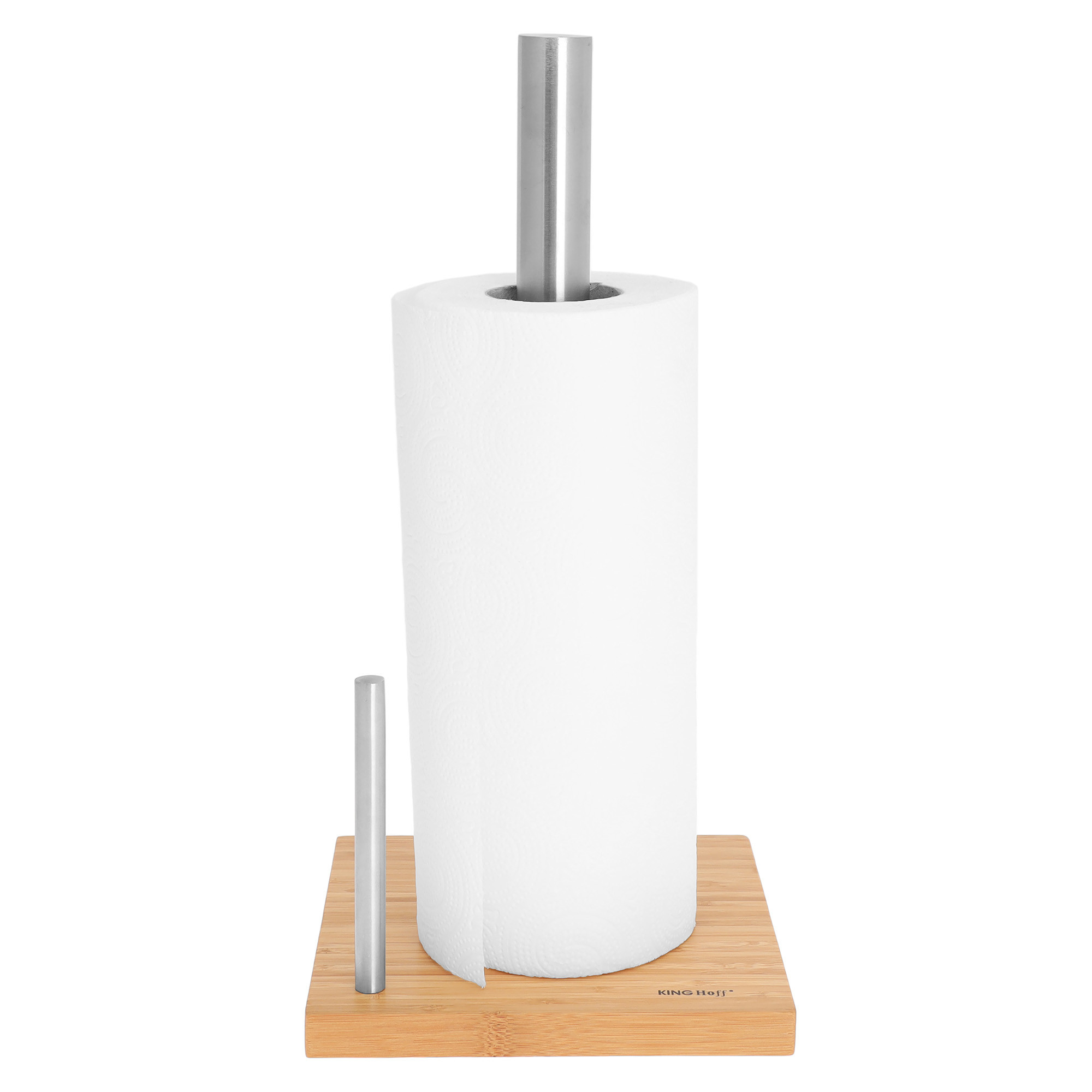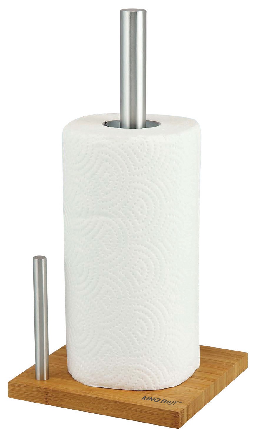 Stojak na ręcznik papierowy Kinghoff łączy trwałość stali nierdzewnej z naturalnym urokiem drewna bambusowego. Solidna konstrukcja z satynową stalową powierzchnią i stabilną podstawą z bambusa gwarantuje wygodę i estetykę użytkowania. Ten praktyczny stojak to elegancki dodatek do każdej kuchni, który utrzyma ręcznik papierowy zawsze pod ręką.