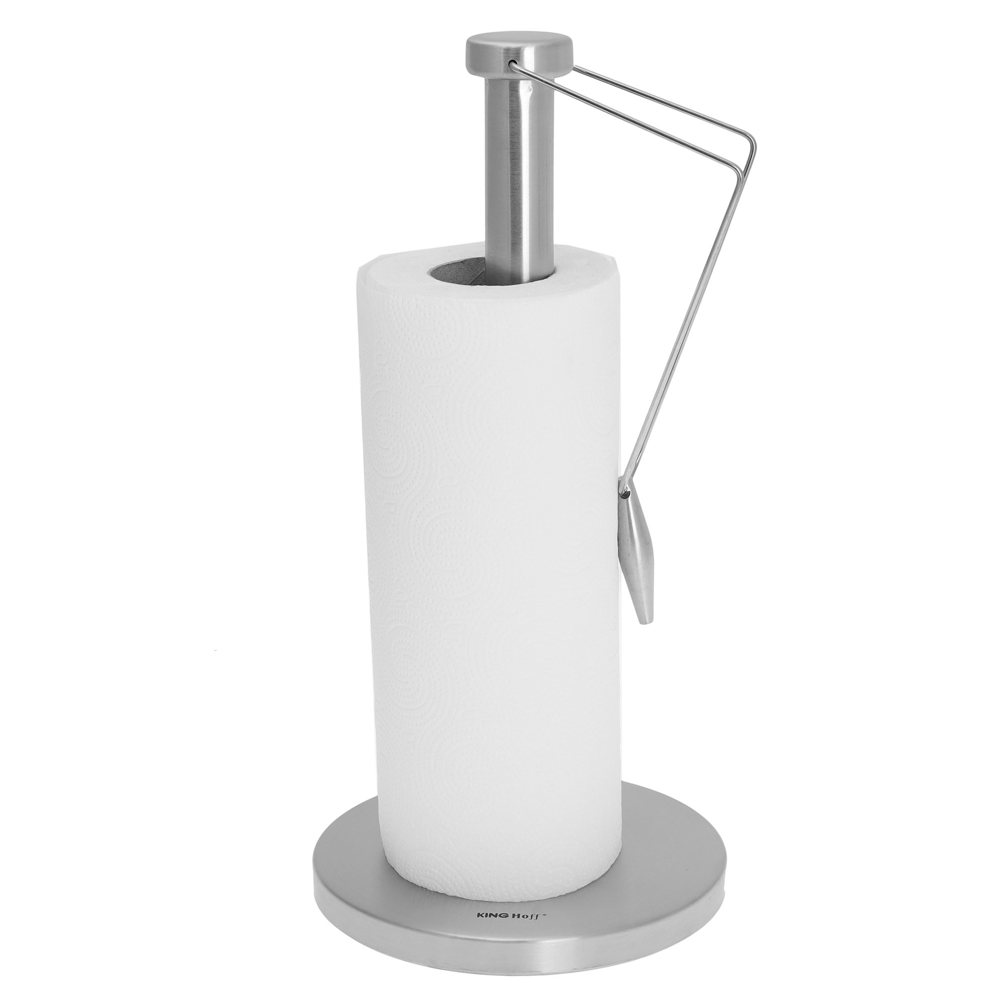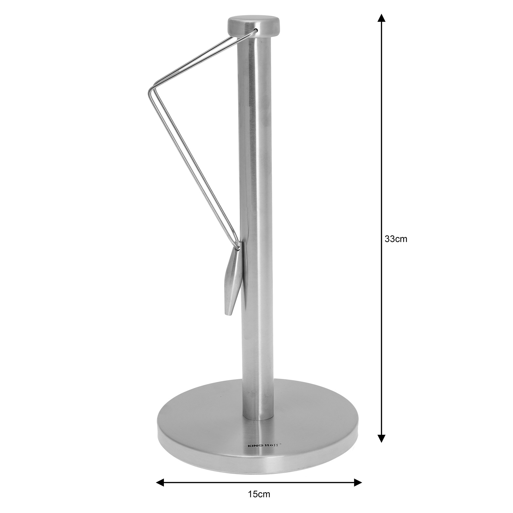 Stojak na ręcznik papierowy Kinghoff to praktyczne rozwiązanie do każdej kuchni. Wykonany z wysokiej jakości stali nierdzewnej o satynowej powierzchni, łączy trwałość z eleganckim wyglądem. Stabilna podstawa z obciążeniem i antypoślizgowa mata zapewniają bezpieczeństwo użytkowania. Wygodny stoper skutecznie zapobiega samorozwijaniu się ręcznika, co zwiększa komfort codziennego korzystania.