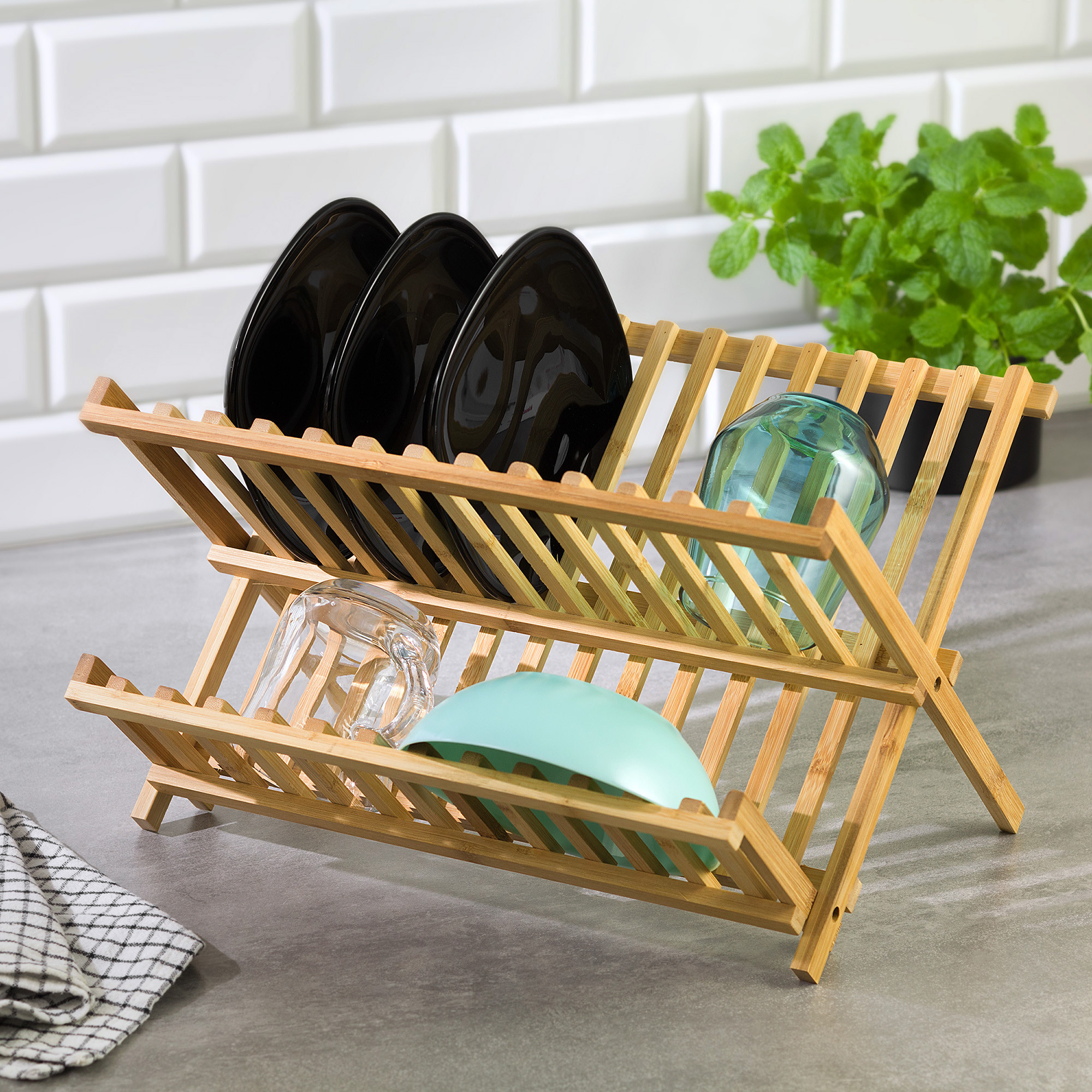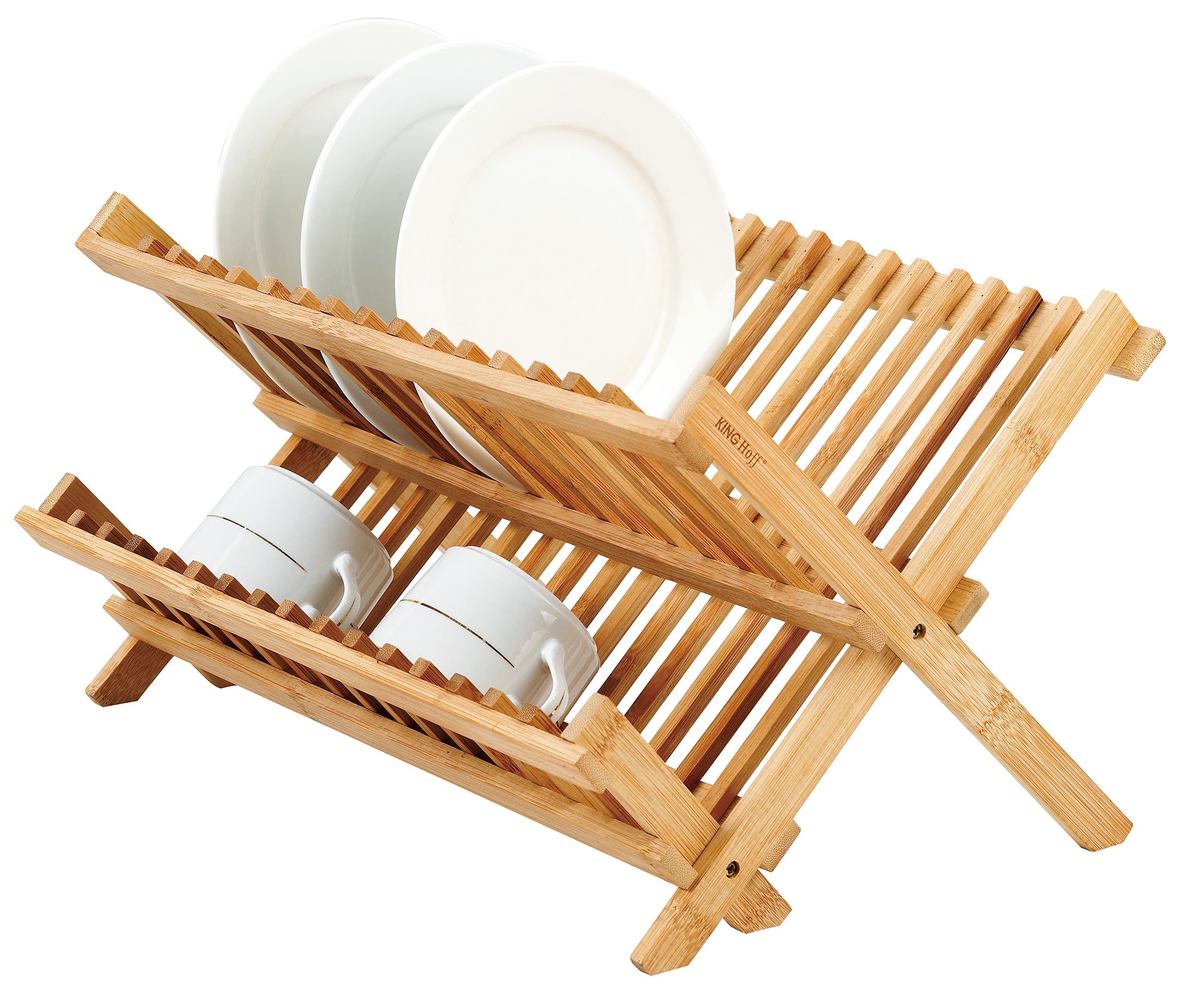 Suszarka do naczyń bambusowa Kinghoff – składana, dwupoziomowa
