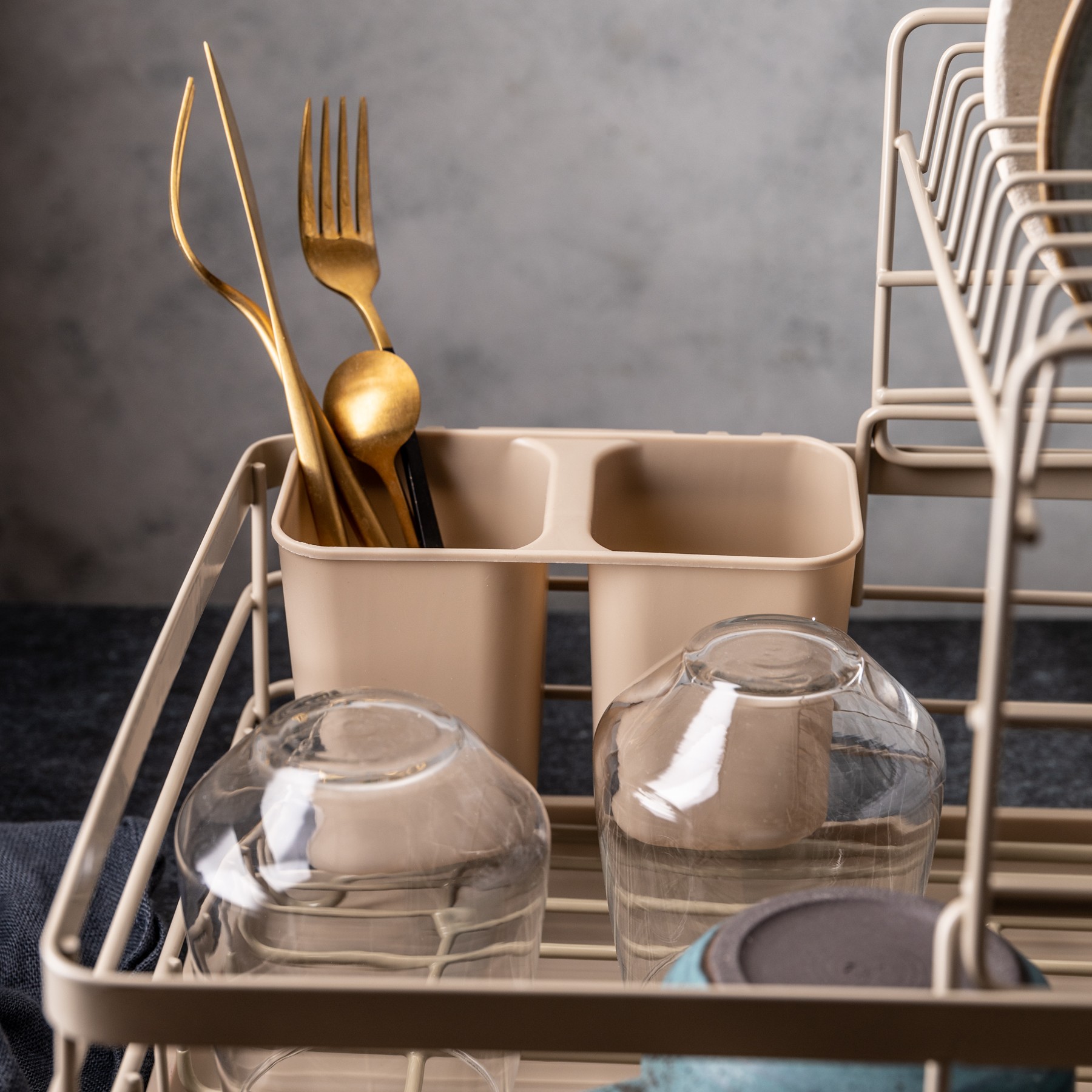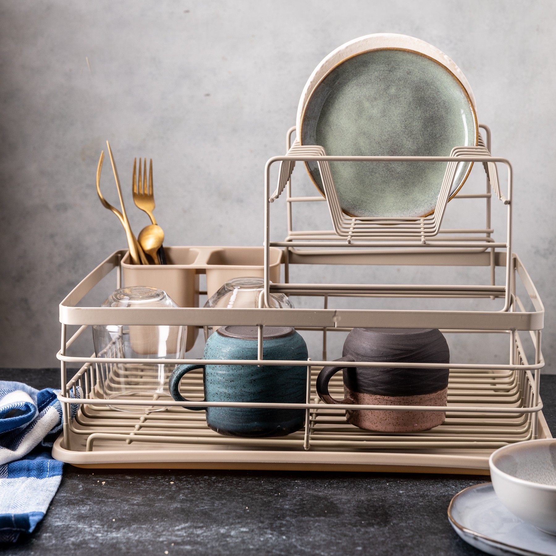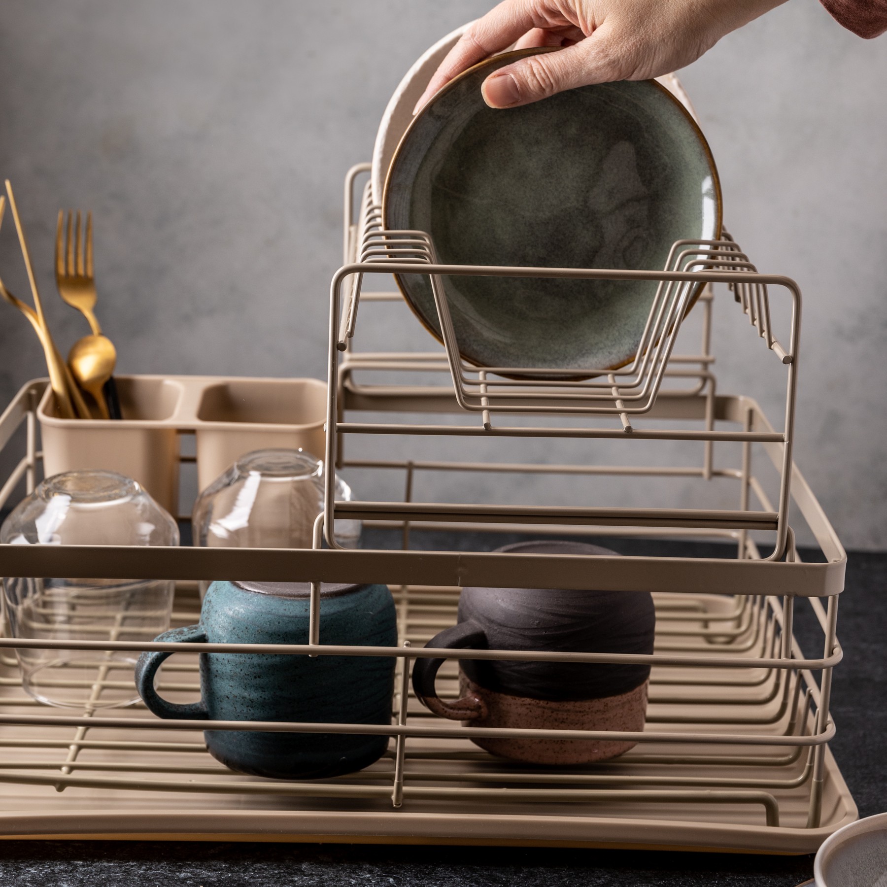 Dwupoziomowa konstrukcja – więcej miejsca na suszenie naczyń przy tej samej powierzchni.
