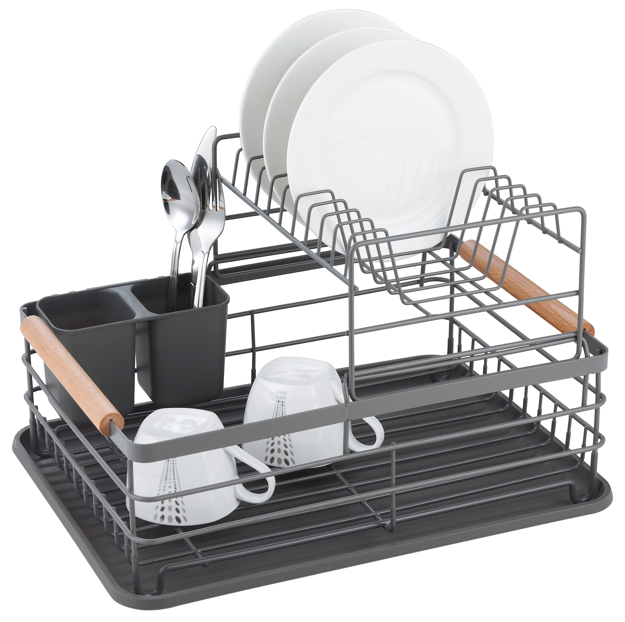 Odłączany plastikowy ociekacz na sztućce z dwoma przegródkami ułatwia segregację sztućców.