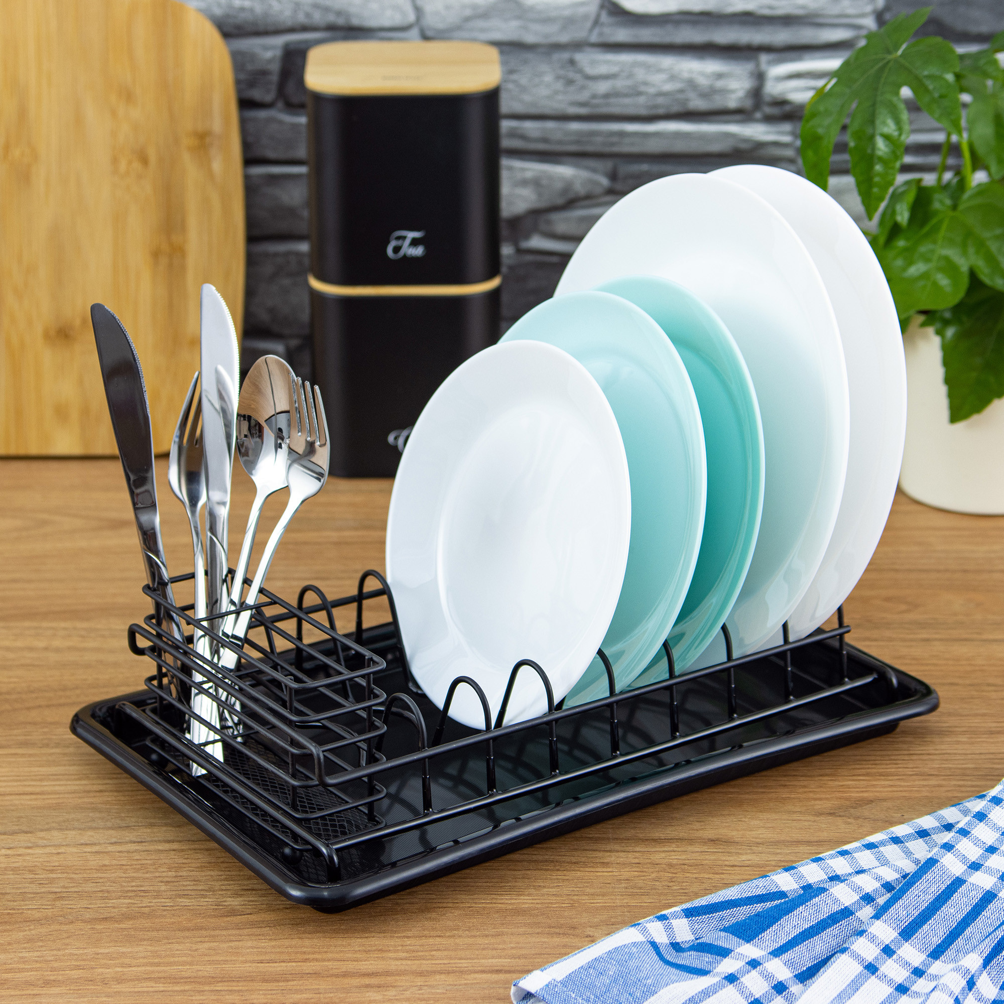 Kompaktowa suszarka do naczyń Kinghoff to idealne rozwiązanie do niewielkich kuchni, w których liczy się każdy centymetr przestrzeni. Wykonana z trwałej stali malowanej proszkowo, wyróżnia się minimalistycznym wyglądem i wysoką funkcjonalnością. Miękka powłoka drutu chroni naczynia przed zarysowaniami, a niewielki ociekacz z rowkami pozwala na stabilne ustawienie talerzy. Całość uzupełnia tacka odprowadzająca wodę oraz praktyczny pojemnik na sztućce.