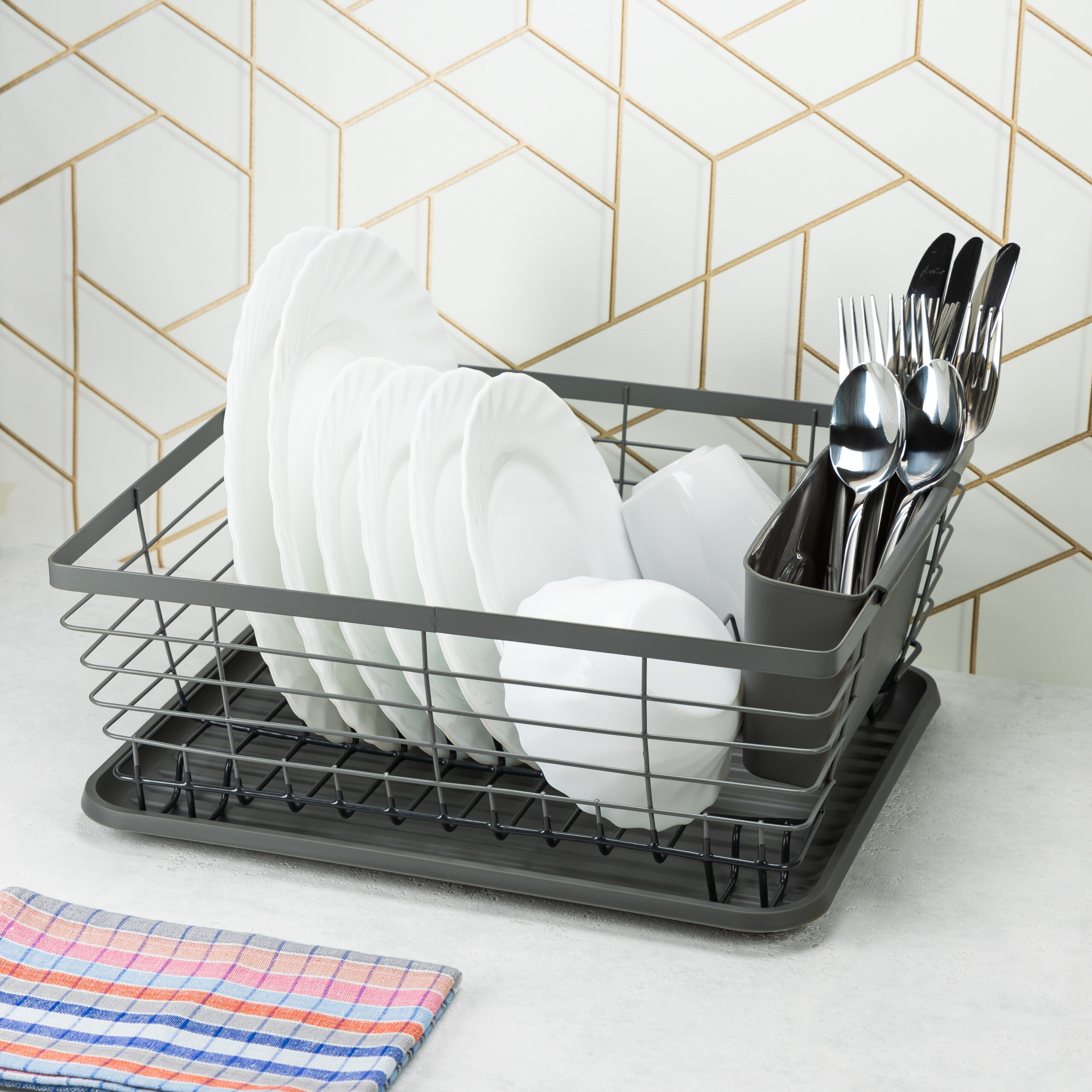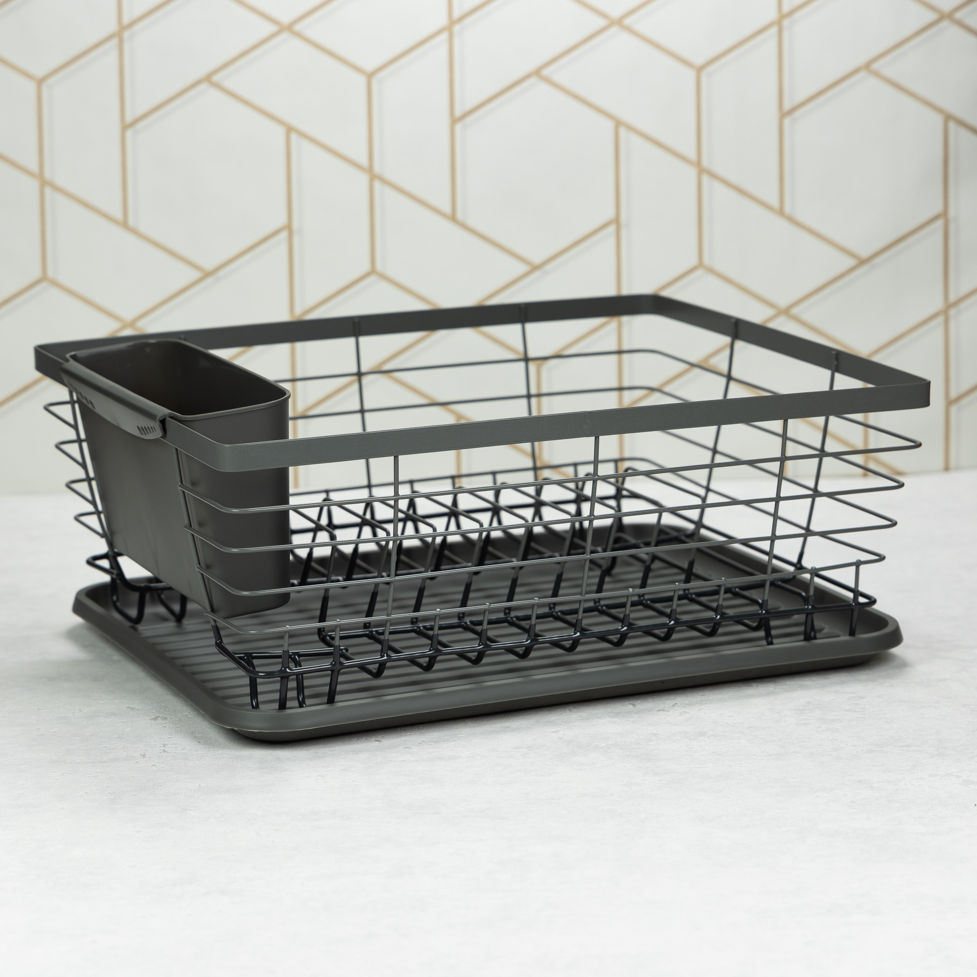 Szary jednopoziomowy ociekacz do naczyń Kinghoff to praktyczne i trwałe akcesorium, które ułatwia bezpieczne suszenie naczyń w każdej kuchni. Wykonany z wysokiej jakości, powlekanej proszkowo metalu, wyposażony jest w kolorową matę z miękką powłoką, chroniącą naczynia przed zarysowaniami i zapewniającą stabilność. Ociekacz posiada rowki umożliwiające ustawienie maksymalnej liczby talerzy oraz tackę zapobiegającą zamoczeniu blatu. Odłączany pojemnik na sztućce pomaga utrzymać porządek. Produkt jest łatwy do czyszczenia i wymaga mycia ręcznego z natychmiastowym osuszeniem.