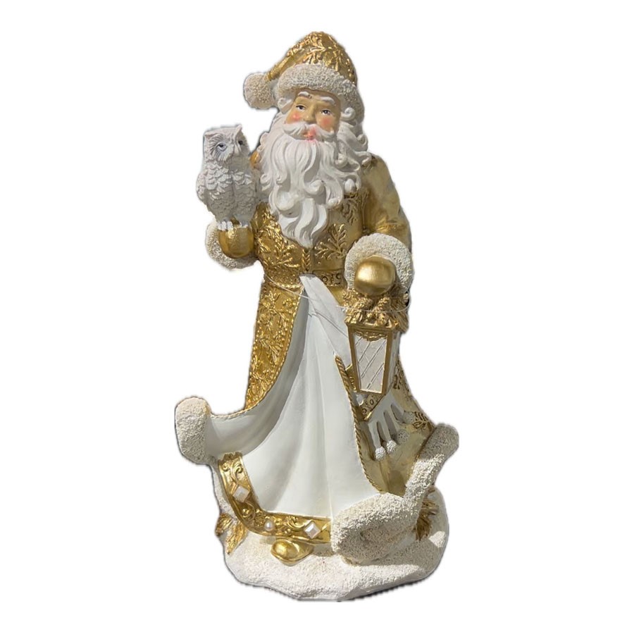 Świąteczna dekoracyjna figura przedstawiająca Świętego Mikołaja trzymającego sowę Merry Moments,