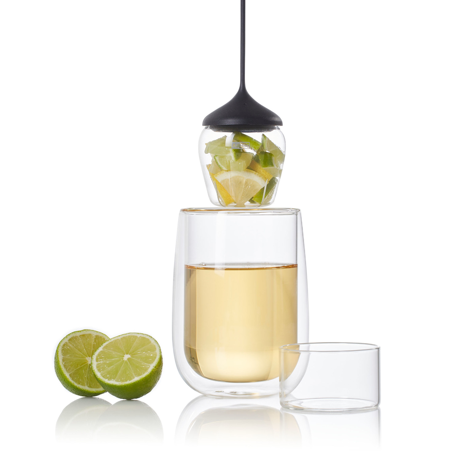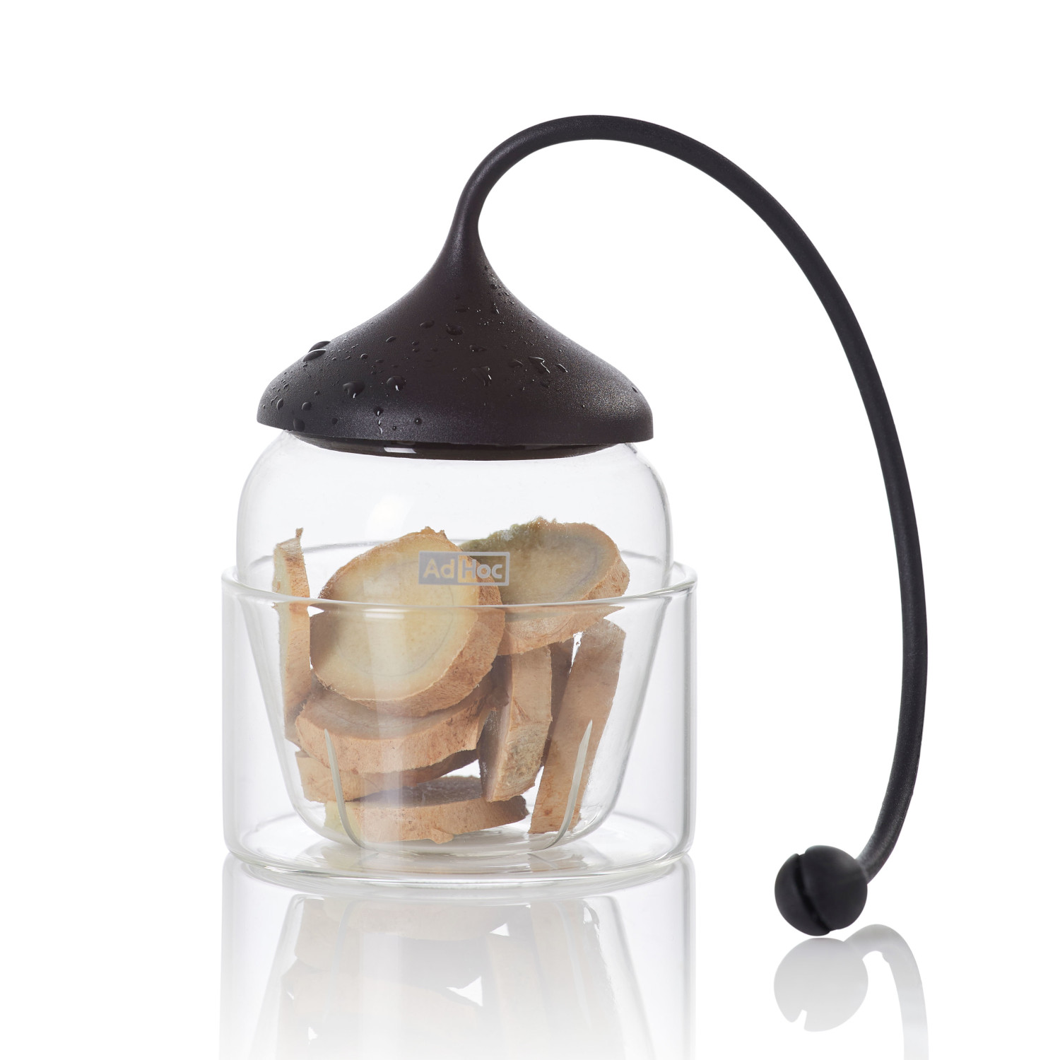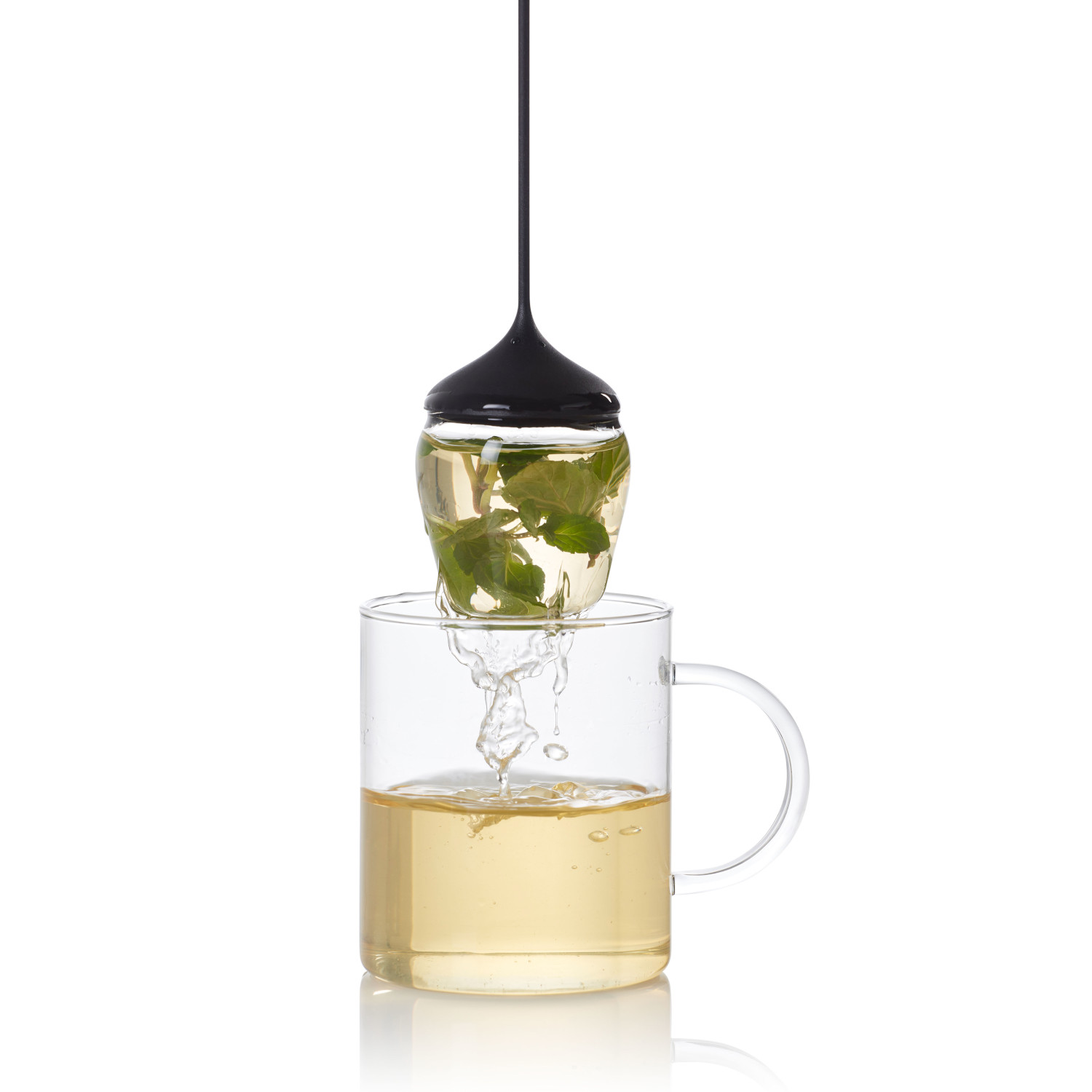 Zaparzacz został wykonany z odpornego na ciepło szkła borokrzemowego, które nie zmienia smaku naparu. Pojemność zaparzacza pozwala na optymalne rozwinięcie się nawet dużych liści herbaty oraz innych składników jak imbir czy cytryna. Za rozwinięcie bogatego aromatu naparu odpowiedzialne są podłużne nacięcia w pojemniku zaparzacza, który zamykany jest silikonowym kapturkiem ze smyczą o końcówce umożliwiającej umocowanie jej do brzegu naczynia. Aby napełnić, wystarczy ścisnąć silikonowy kapturek i go zdjąć. Pojemnik zaparzacza ma płaskie dno, dzięki czemu można go postawić na dnie naczynia. Całości dopełnia dołączona do zestawu szklana podstawka, służąca także jako miejsce do osuszania zaparzacza. Można myć w zmywarce. Produkt został zaprojektowany przez Rolanda Kreitera. Uwaga: Przy otwieraniu zaparzacza nie należy ciągnąć za silikonową smycz! Materiały: szkło, silikon. Opakowanie: kartonowe pudełko prezentowe.