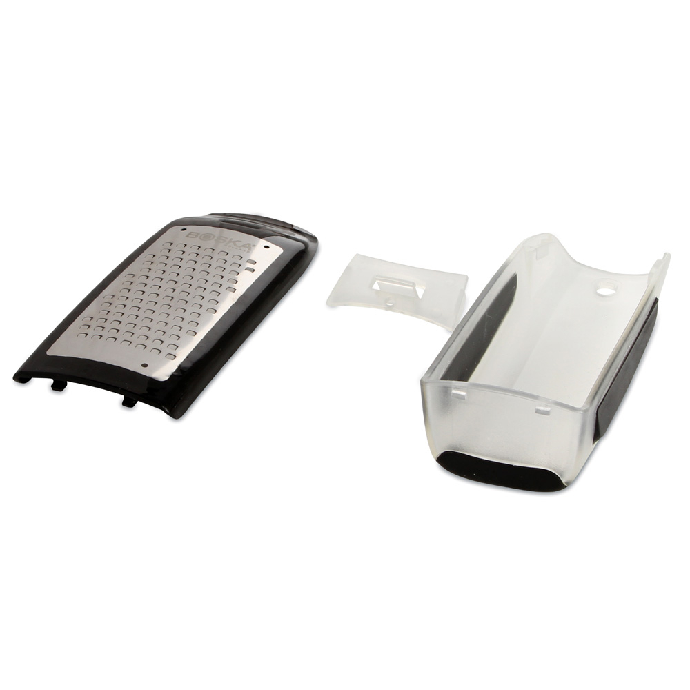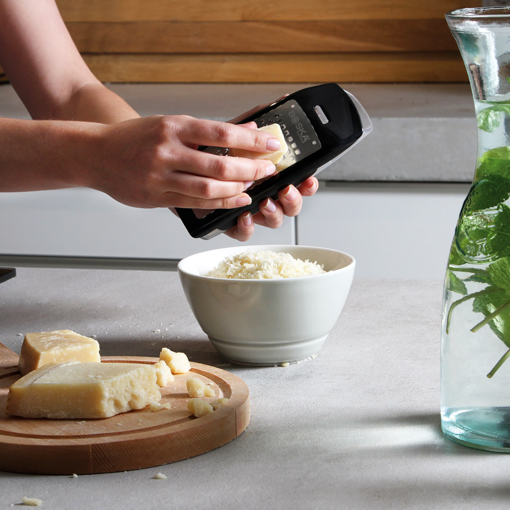 Tarka Easy Grater z linii Explore Collection doskonale nadaje się do tarcia półtwardych i twardych serów. Składa się z tarki ze stali nierdzewnej oraz wyjmowanego, plastikowego pojemnika do przechowywania rozdrobnionego sera. Kiedy nie trzesz sera możesz ją wykorzystać do starcia marchewki czy też ogórka.