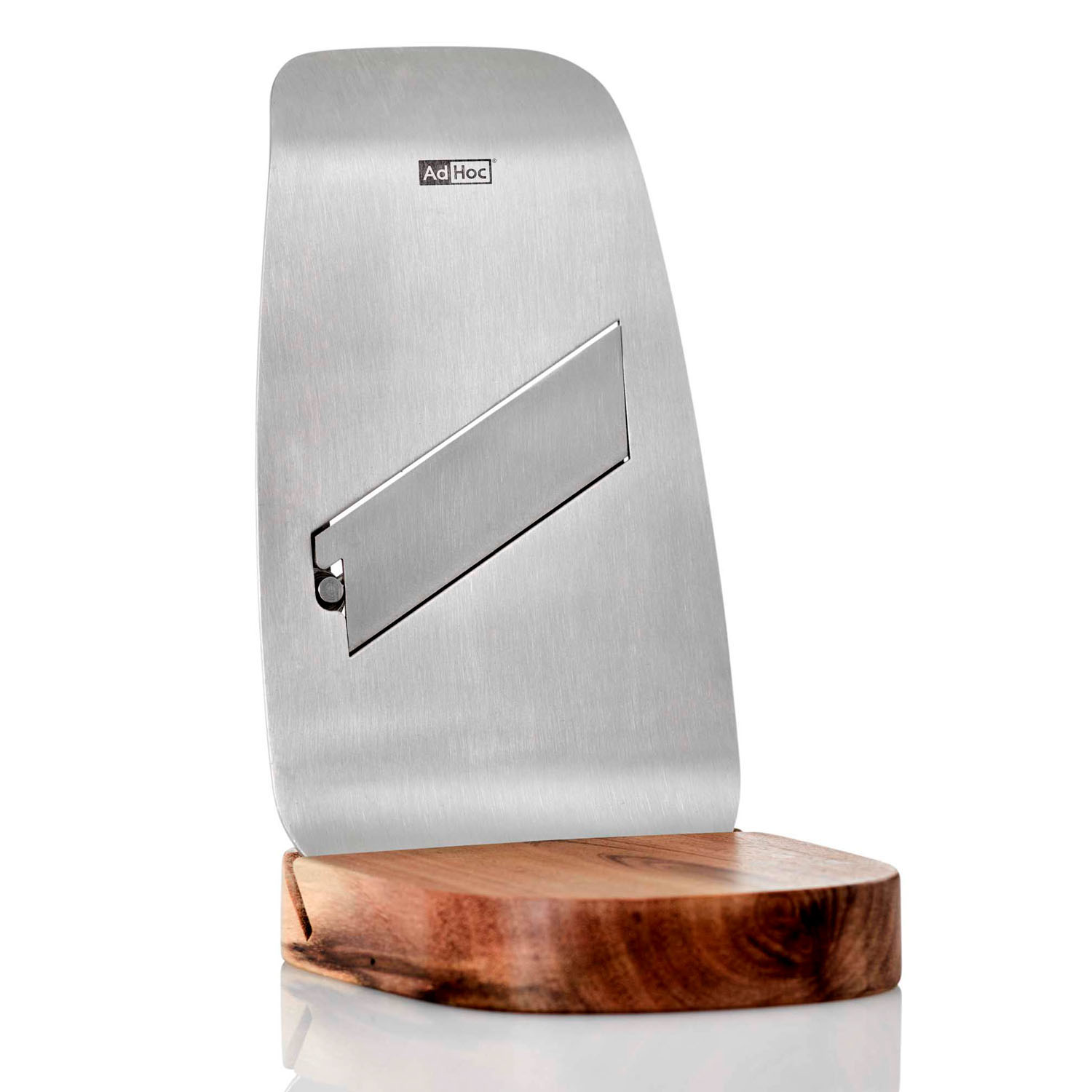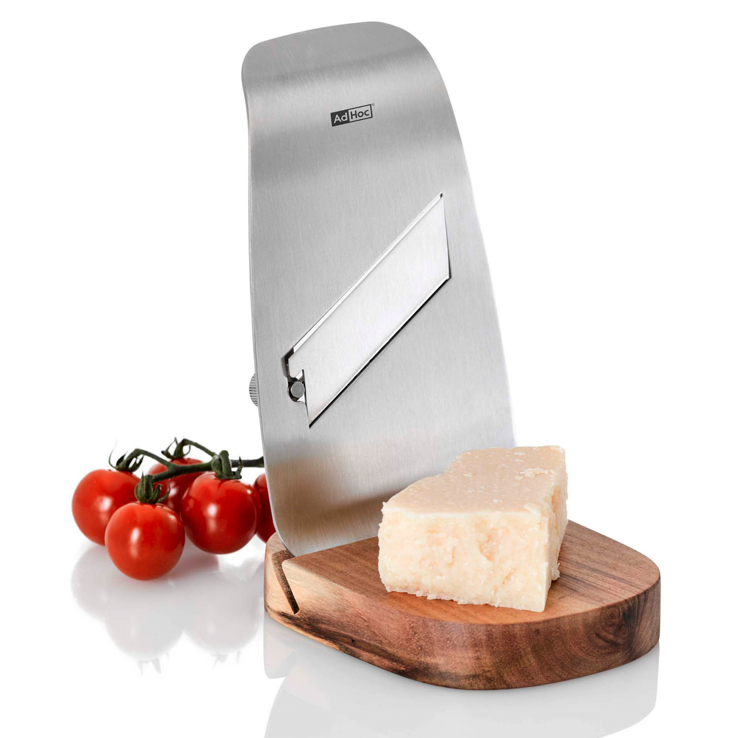 Stworzona do cięcia niezwykle cienkich plastrów trufli lub twardego sera. Jej ostre jak brzytwa, w pełni regulowane ostrze, pozwala ciąć ekstremalnie szybko i cienko. Jej ergonomiczny kształt zapewnia wygodne dopasowanie do dłoni. Elegancka drewniana podstawka służy jako miejsce przechowywania tarki oraz jako deseczka do odłożenia sera lub trufli. Nie należy myć w zmywarce. Produkt został zaprojektowany przez AdHoc Design Team. Materiał: stal nierdzewna, drewno akacjowe. Wymiary tarki: szerokość – 9,3cm, wysokość – 17cm. Wymiary z podstawą: szerokość – 9,5cm, wysokość – 16,5cm.