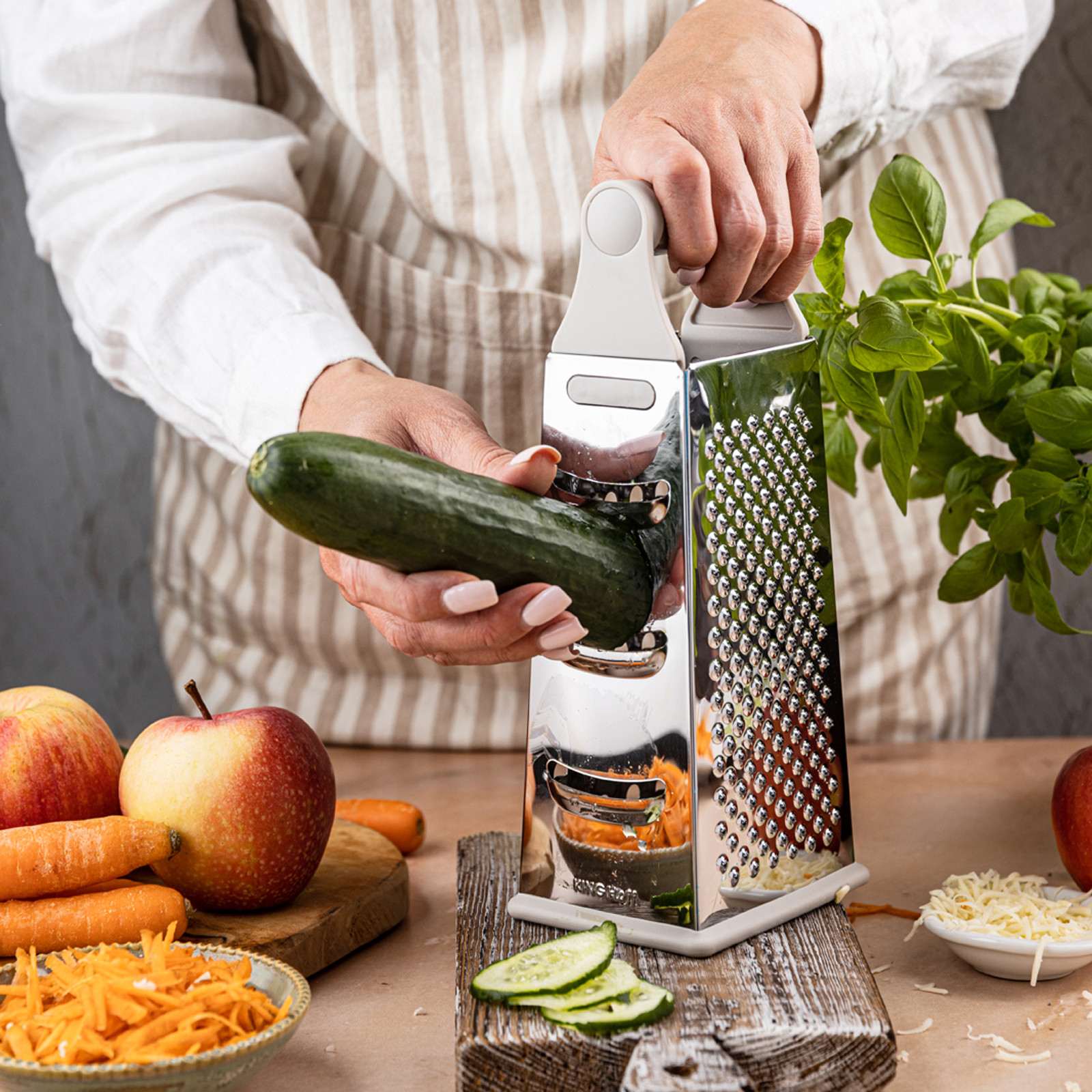Tarka KINGHoff KH-1989 to wszechstronne akcesorium, które sprawdzi się w każdej kuchni. Dzięki czterem różnym powierzchniom ścierającym możesz szybko przygotować warzywa, owoce czy sery w idealnej formie do gotowania i serwowania. Solidna konstrukcja ze stali nierdzewnej i wygodny uchwyt gwarantują komfort codziennego użytkowania.