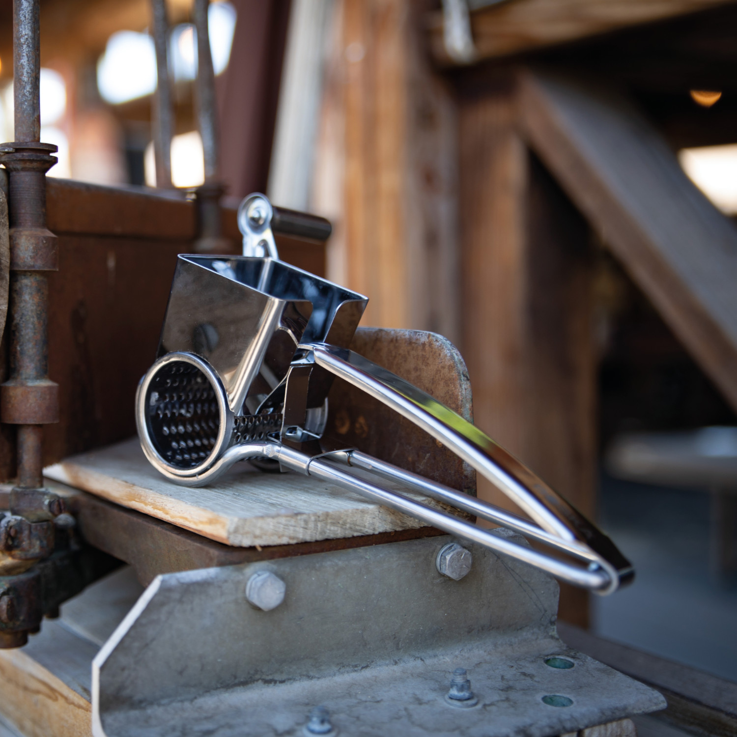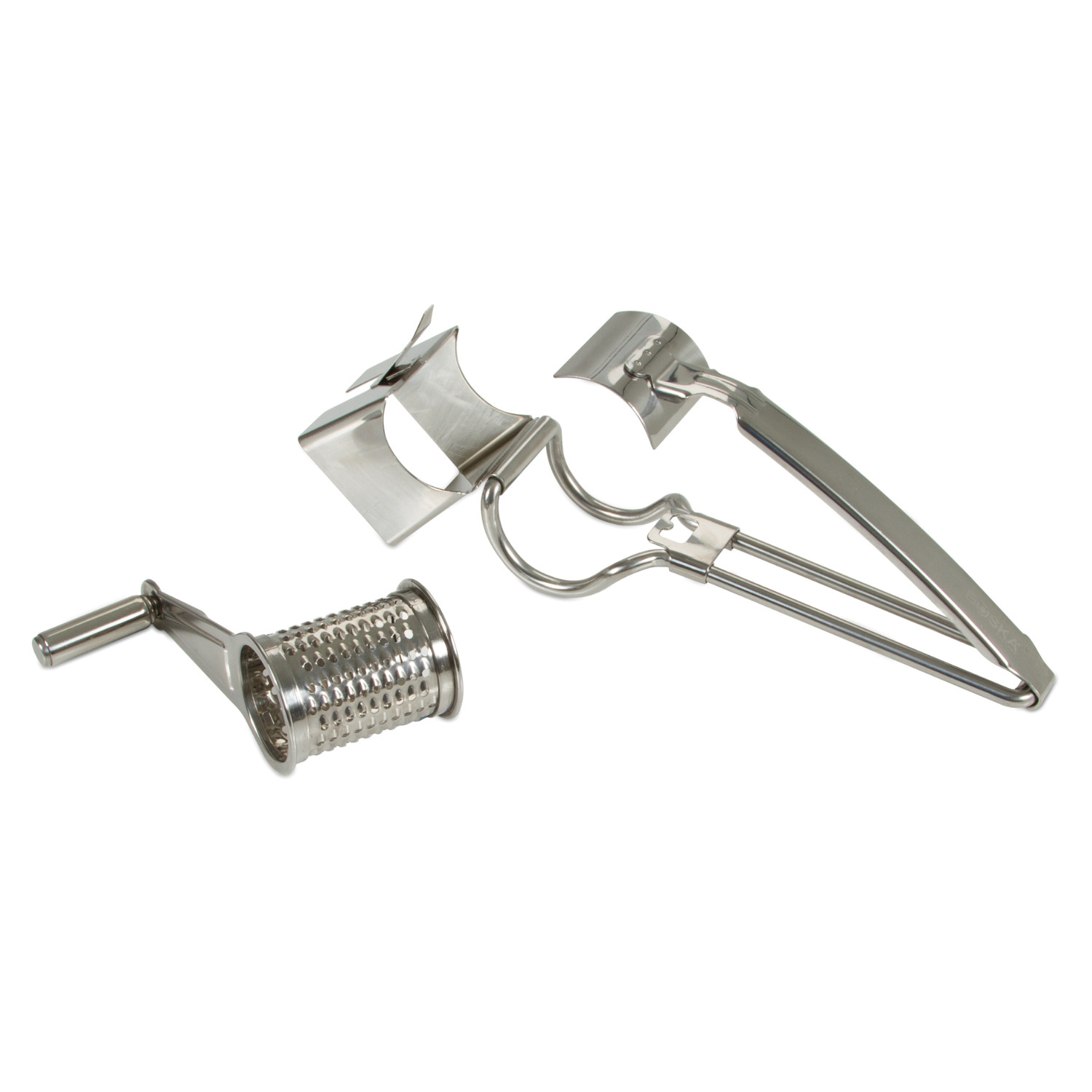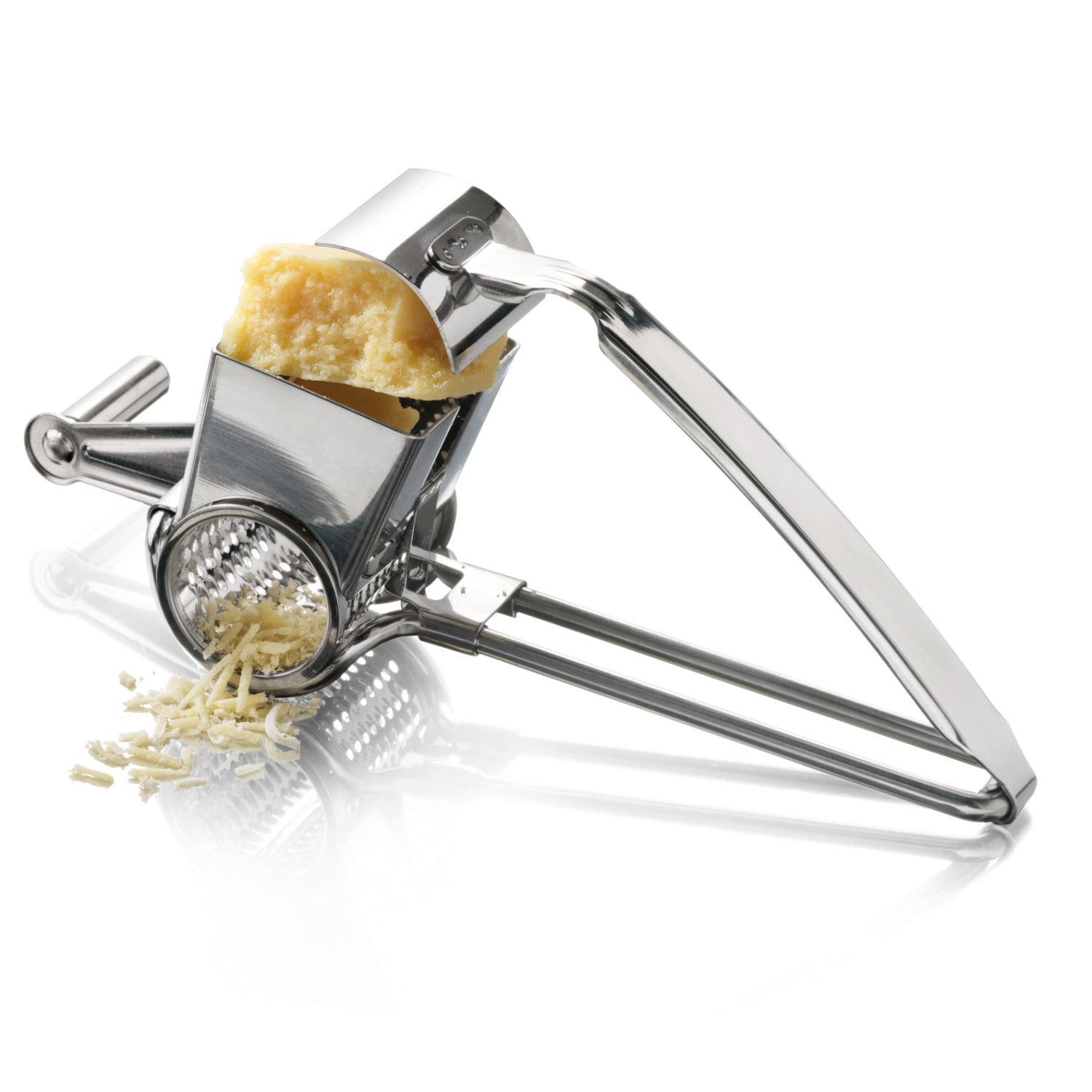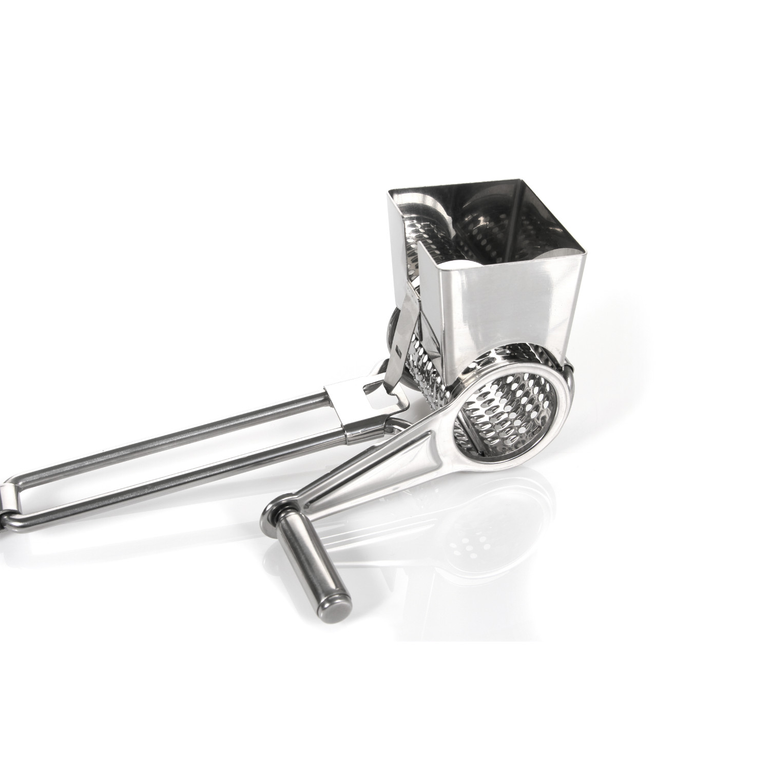 Tarka obrotowa Romano – stalowa! Bezpieczna i poręczna stalowa tarka obrotowa do sera twardego i półtwardego. Jesteś leworęczny z łatwością dopasujesz ją do siebie, wystarczy tylko przełożyć! W tym celu należy zluzować trącą część tarki z korbką przez lekkie odciągnięcie zaczepu mocującego znajdującego się na spodzie rączki. Zaleca się myć ręcznie. Materiał: stal, pierścień tworzywo.