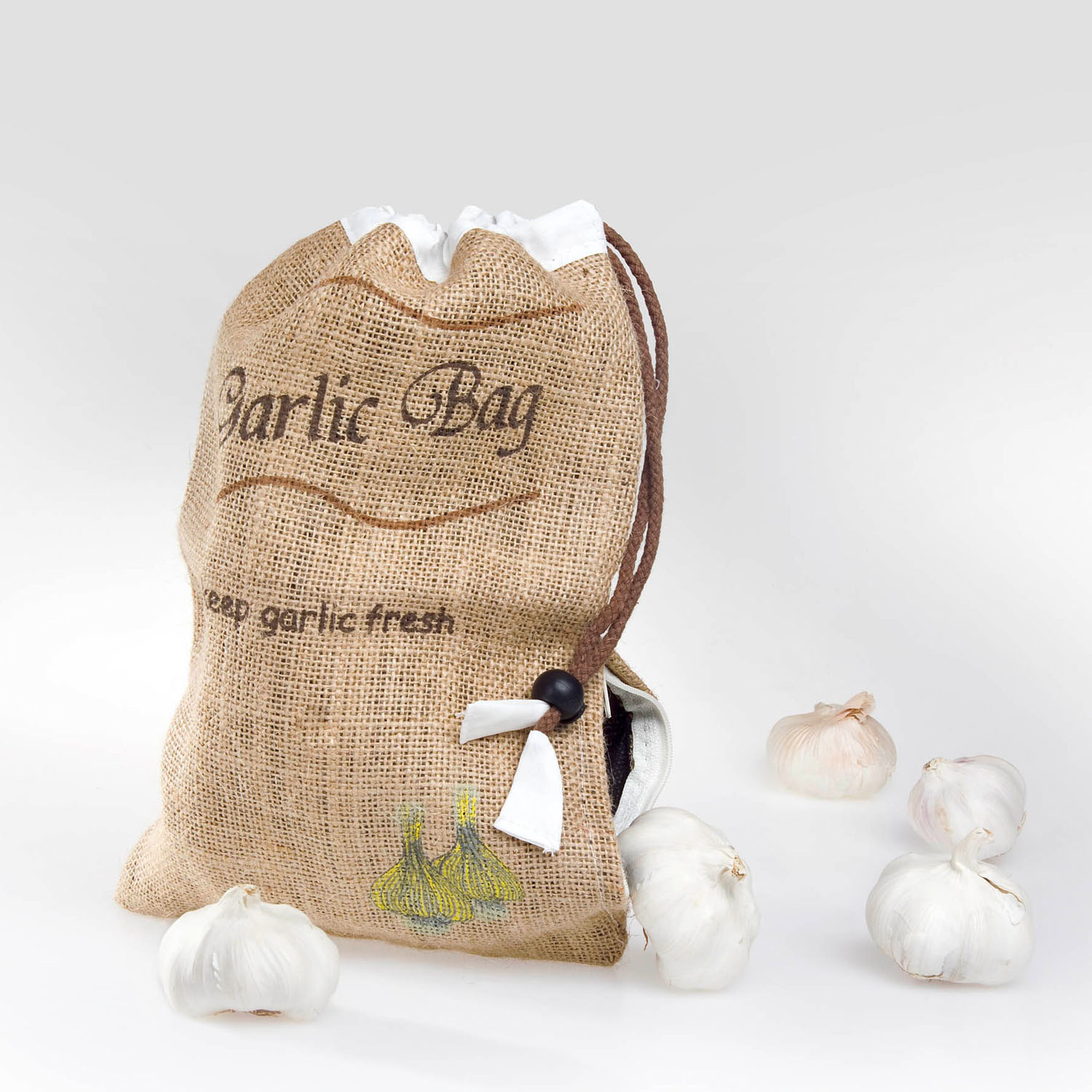 Przewiewna torba do przechowywania czosnku, która chroni przed światłem. Została wykonana z lnu, jej wnętrze jest zaś pokryte przepuszczającą powietrze włókniną. Wyposażona jest w sznurek do ściągania na górze oraz w suwak błyskawiczny na boku u spodu, umożliwiający wyjmowanie warzyw.