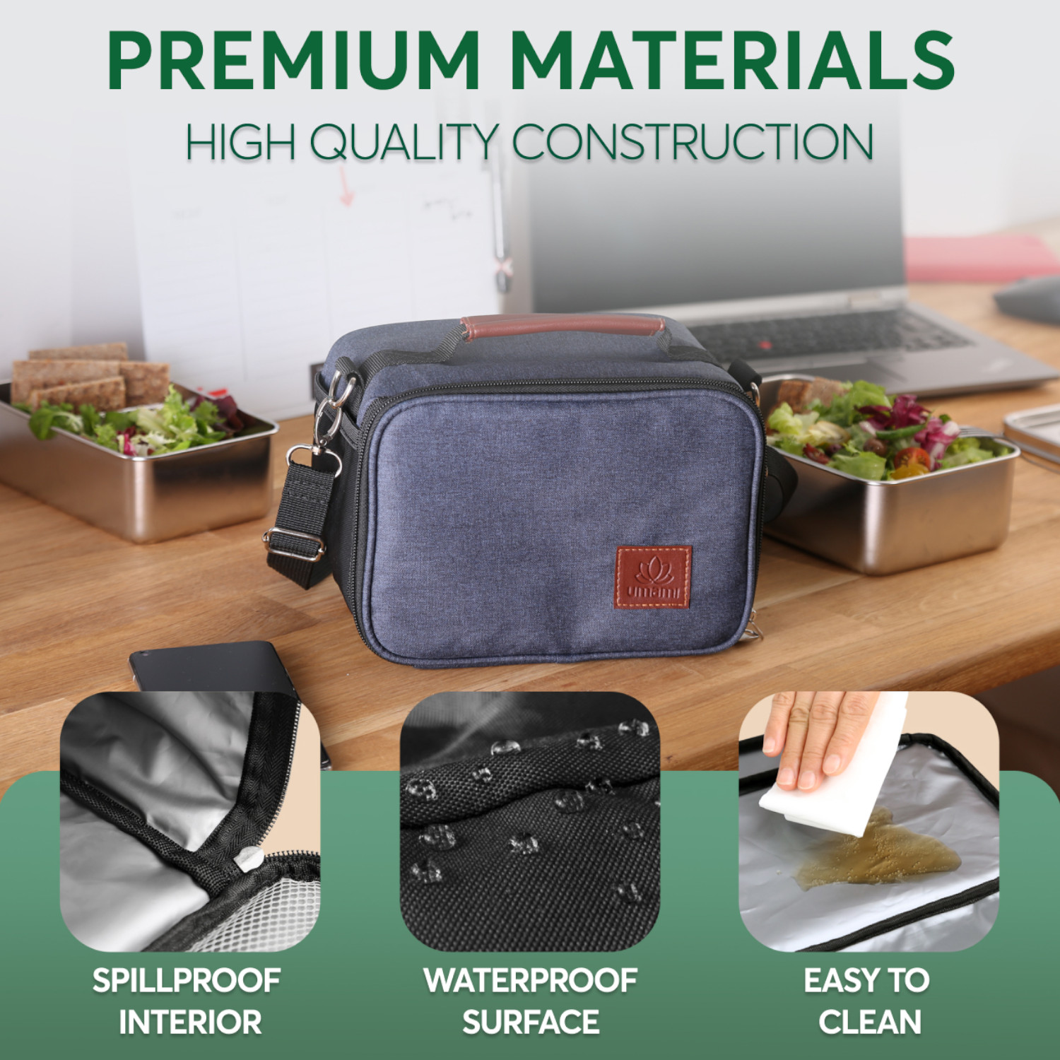 Trwała i praktyczna torba na lanchboxy marki UMAMI to eleganckie i wygodne rozwiązanie transportu pojemników. Poręczna izolowana torba na lunch dla kobiet i mężczyzn pomoże zachować na dłużej Twoje jedzenie świeże lub gorące! Torba na lunch Umami jest wykonana z wysokiej jakości materiałów, które wytrzymają codzienne użytkowanie i dostosują się do Twojego stylu życia. Bądź zorganizowany i zachowaj świeżość jedzenia przez cały dzień! Torba jest zamykana na suwak, ma 2 kieszenie otwarte na zewnątrz: z boku i z tyłu torby oraz 1 kieszeń z siateczki na pokrywie w wewnątrz. Kieszeń boczna wykonana jest z elastycznego materiału i jest w sam raz na małą butelkę wody. Pasek jest regulowany, maksymalna długość to 124cm. Torbę należy czyścić ręcznie, przecierając wilgotną ściereczką. Przybliżone wymiary: – wysokość: 17cm, – długość: 22cm, – szerokość: 13cm, – długość paska: 124cm. Przybliżone wymiary brutto: – wysokość: 17cm, – długość: 25cm, – szerokość: 8cm. Przybliżona waga brutto: 0,281kg. Opakowanie: kartonowe eko pudełko.
