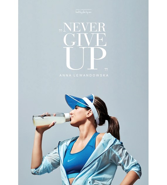– kontrastowa grafika z motywującym hasłem „Never Give up!”,