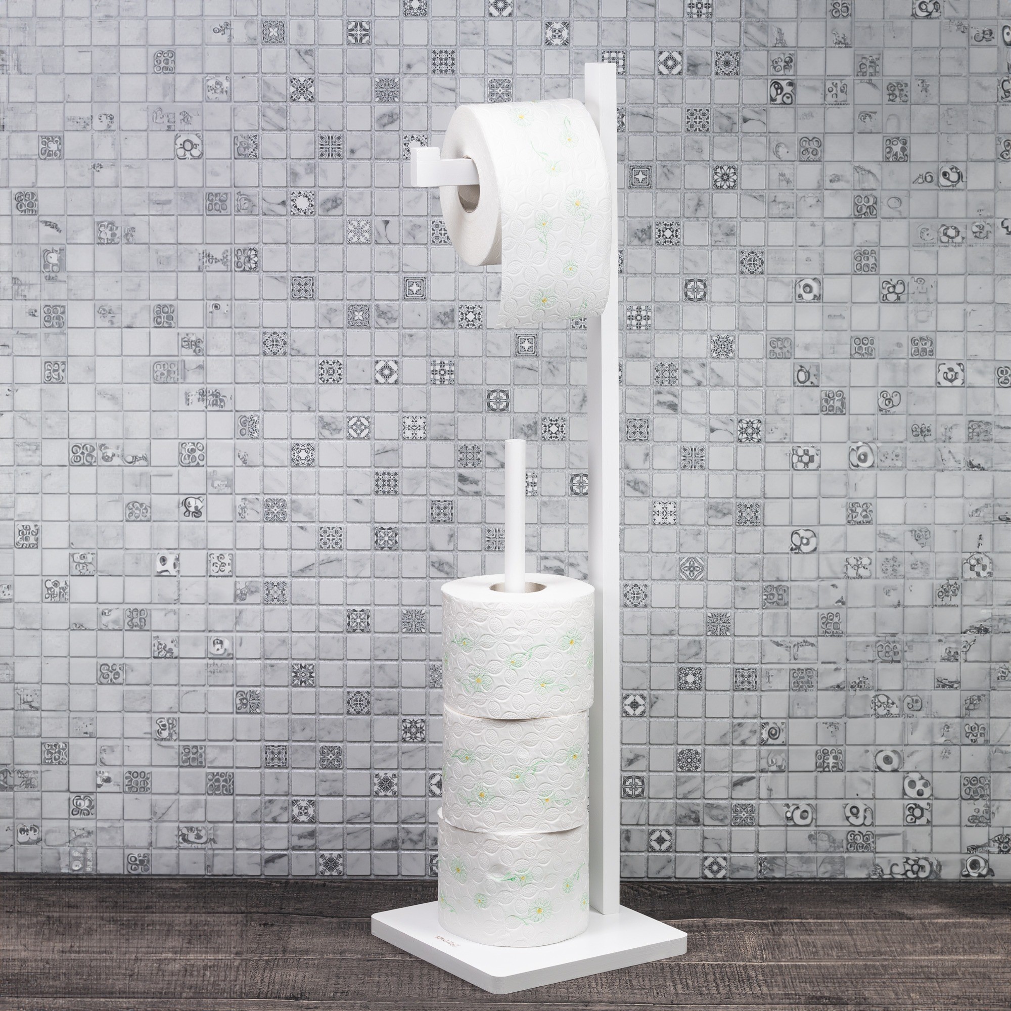 Dzięki solidnej konstrukcji z bambusa, stojak jest wyjątkowo trwały i stabilny. Jego kompaktowe wymiary (około 19x19x71 cm) pozwalają zaoszczędzić miejsce, a pojemność na aż 5 rolek papieru toaletowego sprawia, że nigdy nie zabraknie zapasu w Twojej łazience.