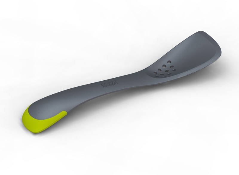 Jedno urządzenie pozwala na przewracanie mies czy racuchów, krojenie miękkich mies i ryb, rozsmarowywanie kremów, odcedzanie niewielkich porcji np.warzyw i nakładanie ich. Poręczne i ładnie wyglądające narzędzie jest wykonane z materiału odpornego na temperaturę do 200 stopni C.