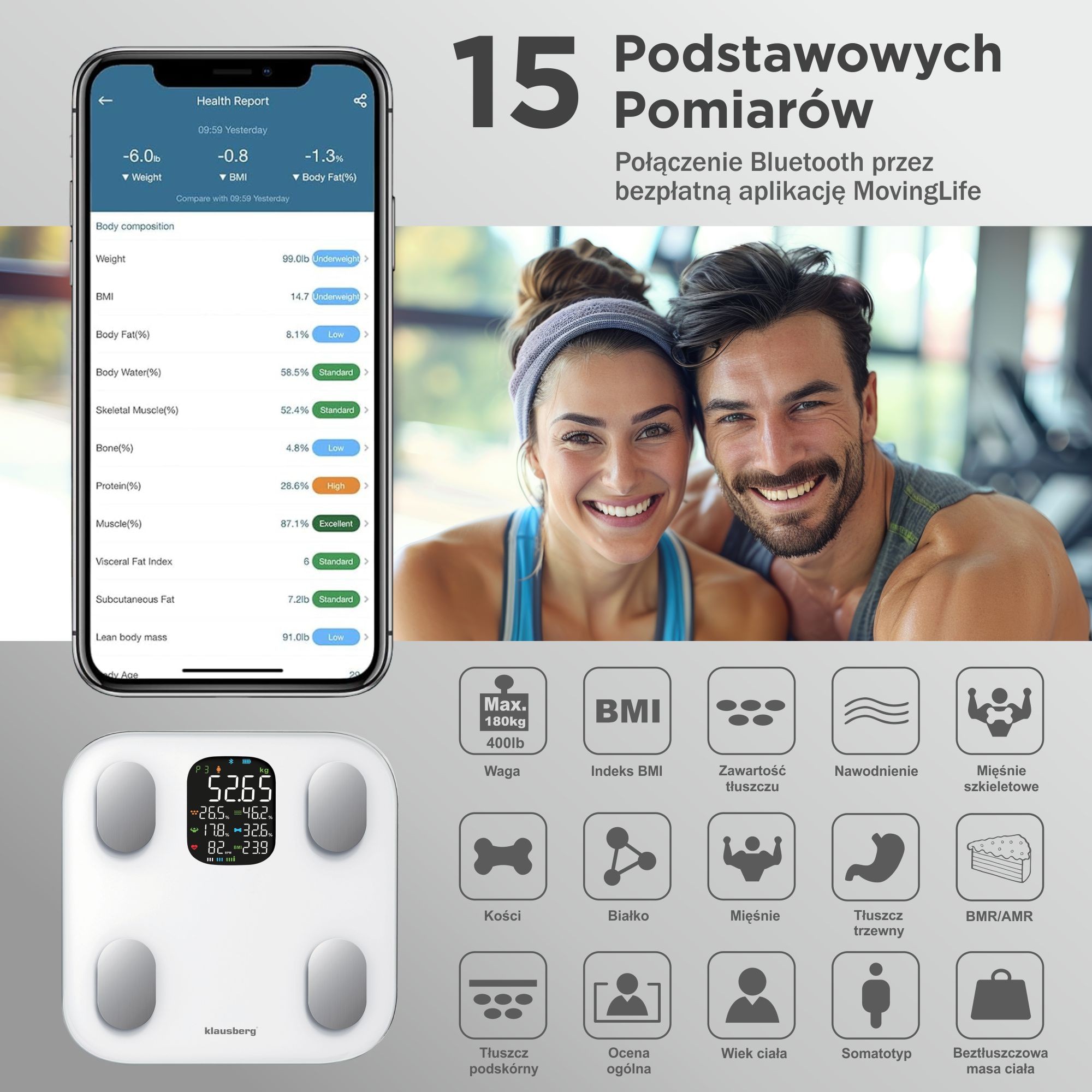 Zaufaj marce KLAUSBERG i ciesz się produktami najwyższej jakości, które wspierają Twoje zdrowie i dobre samopoczucie. Wybierz KB-7855 – wagę, która dostarczy Ci kompleksowych informacji o Twoim ciele i pomoże osiągnąć wyznaczone cele zdrowotne.
