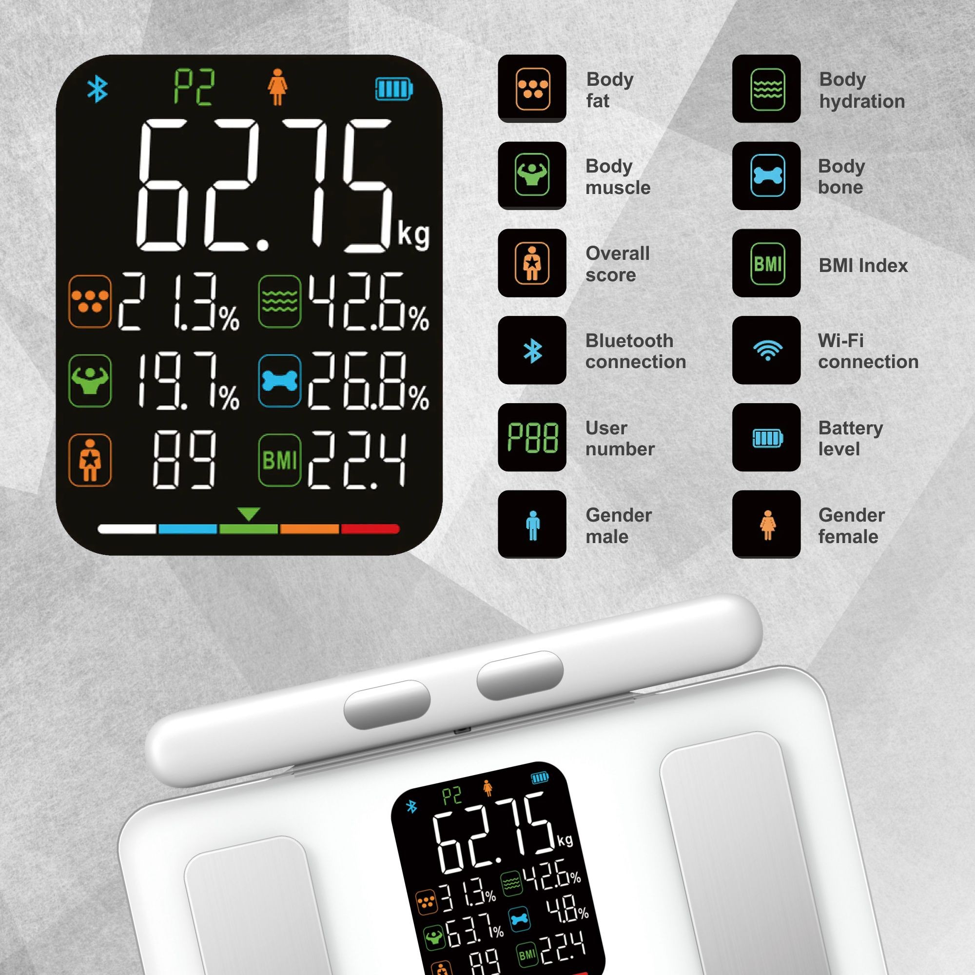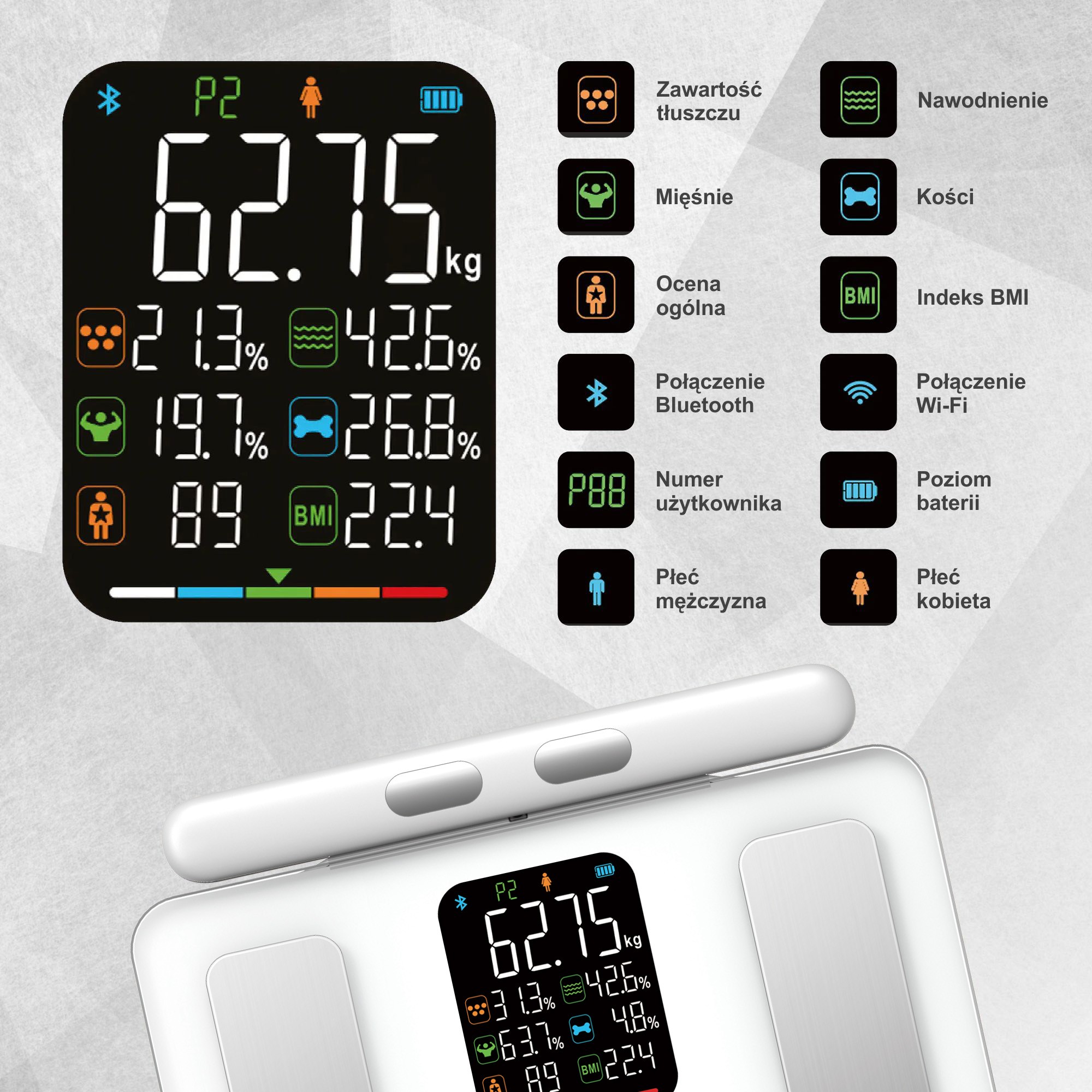 Odkryj nowy wymiar codziennego monitorowania zdrowia dzięki nowoczesnej wadze łazienkowej KLAUSBERG KB-7857. Ta inteligentna waga oferuje nie tylko pomiar masy ciała, ale także kompleksową analizę składu ciała, zapewniając precyzyjne dane, które pozwolą Ci lepiej dbać o swoje zdrowie. Dzięki innowacyjnym funkcjom i stylowemu designowi produkt ten łączy w sobie nowoczesną technologię z praktycznością, stając się nieodłącznym elementem codziennej rutyny.