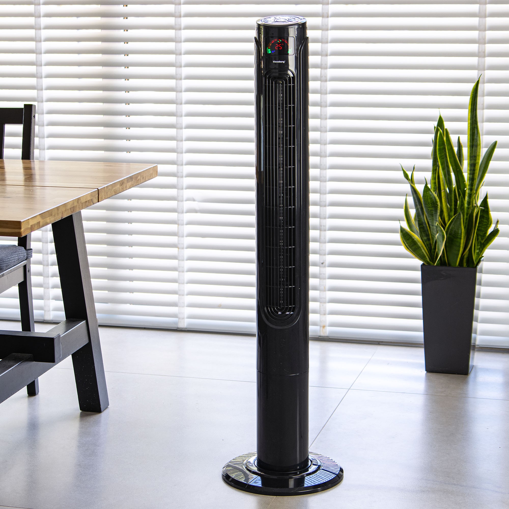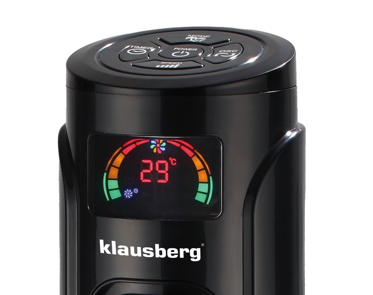 Wentylator kolumnowy o wysokości 120 cm marki KLAUSBERG to stylowe i funkcjonalne urządzenie, które przynosi ulgę w upalne dni. Dzięki nowoczesnemu designowi oraz praktycznym funkcjom idealnie sprawdzi się w każdym nowoczesnym wnętrzu – zarówno w domu, jak i biurze.