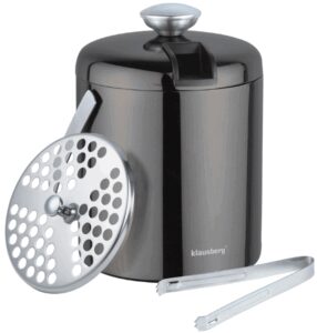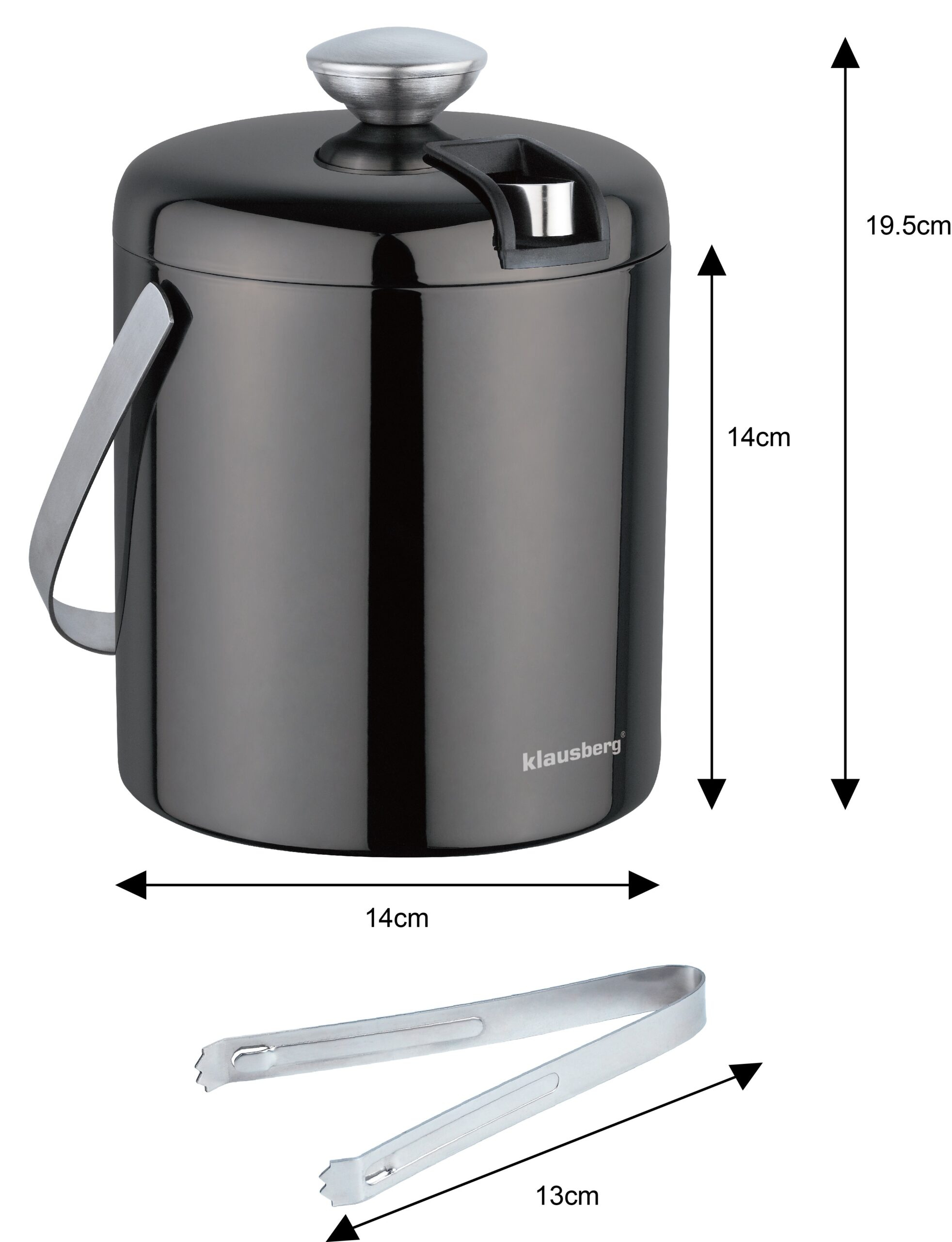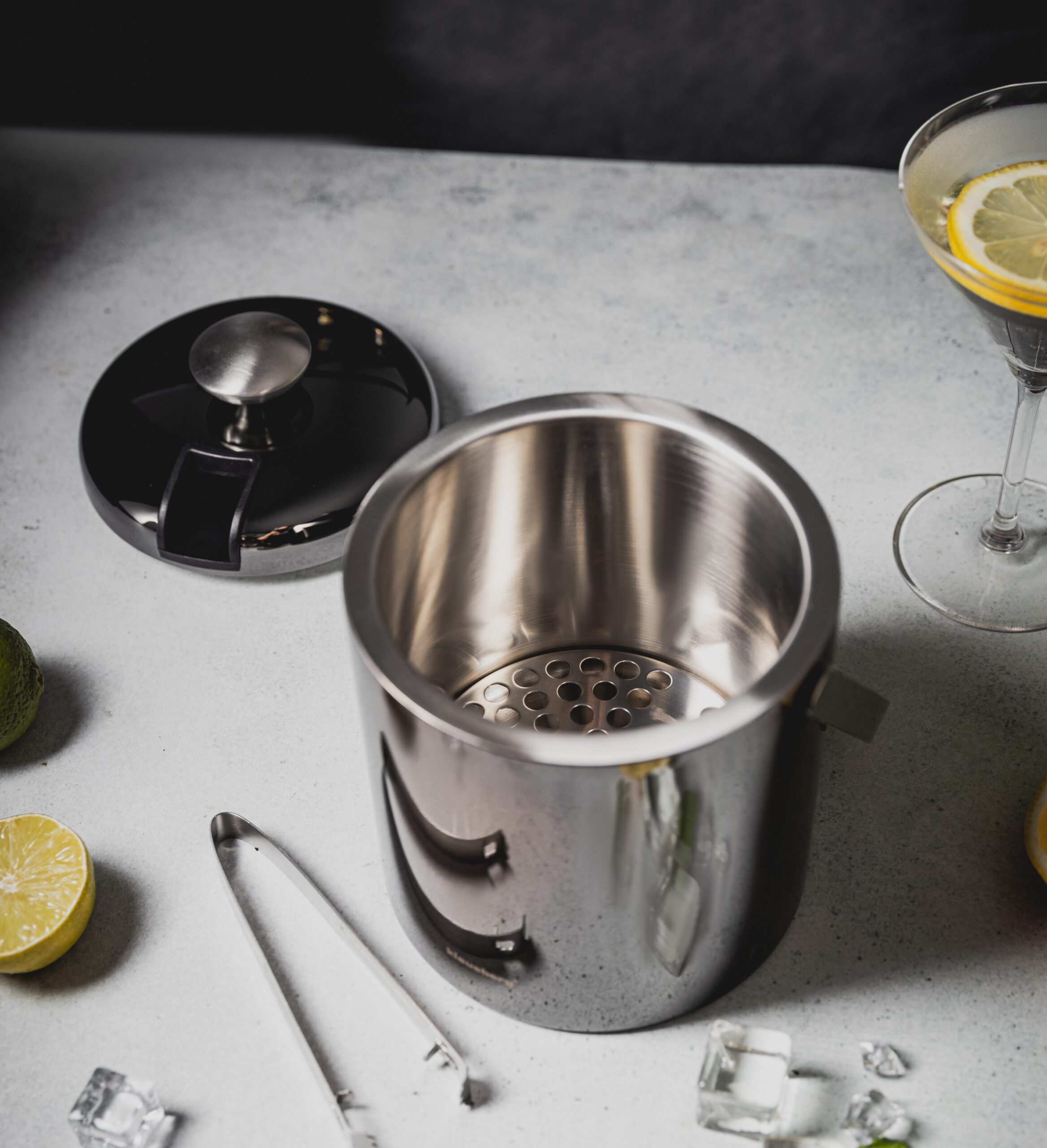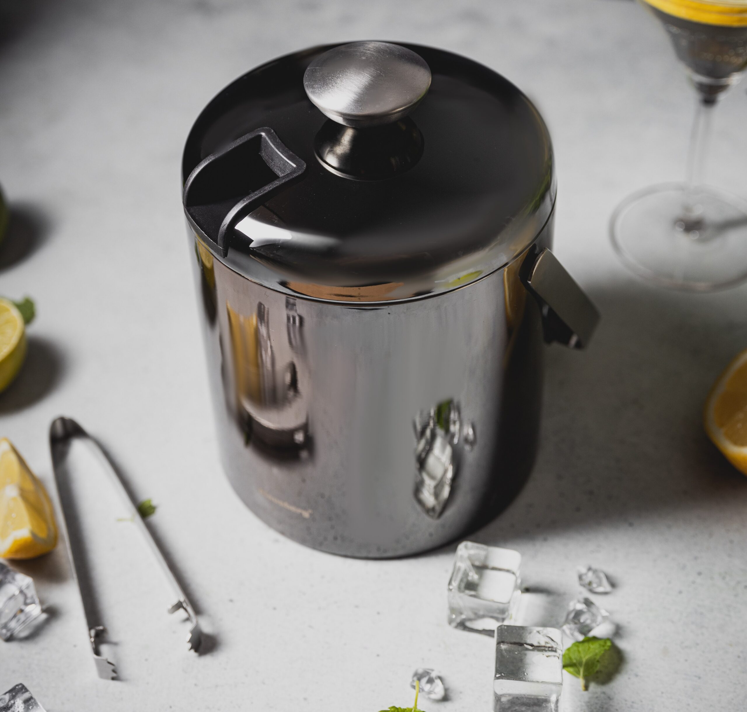 Wiaderko do lodu w kolorze czarnym to elegancka i funkcjonalna część każdego zestawu barmańskiego. Wykonane z wysokiej jakości stali nierdzewnej, gwarantuje trwałość oraz zachowanie estetyki przez długi czas. Czarny kolor dodaje mu wyjątkowego charakteru i klasy. Delikatne refleksy świetlne podkreślają jego elegancję, a praktyczne szczypce do lodu dopełniają całość.