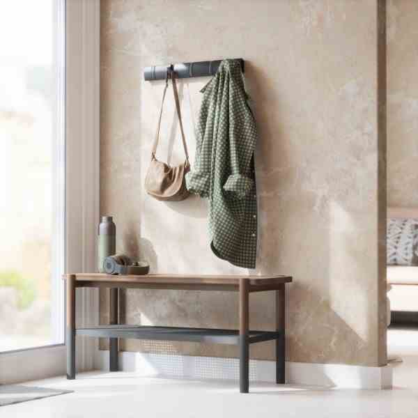 Flip może pomieścić zaskakująco dużą liczbę przedmiotów, co czyni go idealnym miejscem do wieszania płaszczy, szalików, torebek i nie tylko dla Ciebie, Twojej rodziny i gości. Dzięki eleganckiemu profilowi ​​i ukrytym elementom montażowym, Flip można bezproblemowo zamontować na praktycznie każdej ścianie i oferuje styl, który świetnie wygląda w każdym przedpokoju, niezależnie od tego, jak duży lub mały jest.